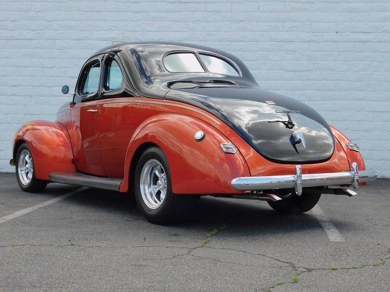 You are looking at a restored custom 1940 Ford Coupe hotrod. This restoration is not recent and has been done sometime around 2005 and comes with receipts of many upgraded parts including suspension upgrades. This quality build not only looks good but drives great with a Chevrolet 350 V8 that is connected to a Turbo Hydro 350 automatic rebuilt transmission. It also features triple Roschester carburetors, headers, camel hump heads, Mallory electronic distributor, custom brass radiator, and an MSD coil under the hood. The interior is in excellent condition and comes in two tone gray velour throughout, including the rear seat cover, and headliner. The Black dash features a custom gauge cluster done very nicely out of billet aluminum filled with VDO gauges, and also features its original steering wheel and a Sun tachometer. Other interior features include a kill switch, and custom pull start ignition. The custom two-tone Sun burnt Orange and Black exterior paint with flames up front is loud and aggressive and suites the hotrod style-build. Other exterior features include original style running boards, dual exhaust, and iconic a split rear window. This 40 sits on polished American Racing 5 spoke wheels that are wrapped in 235/70/15 BFGoodrich Radial T/A tires in the rear and 195/60/15 upfront and are stopped by disc brakes upfront and drum in the rear.
