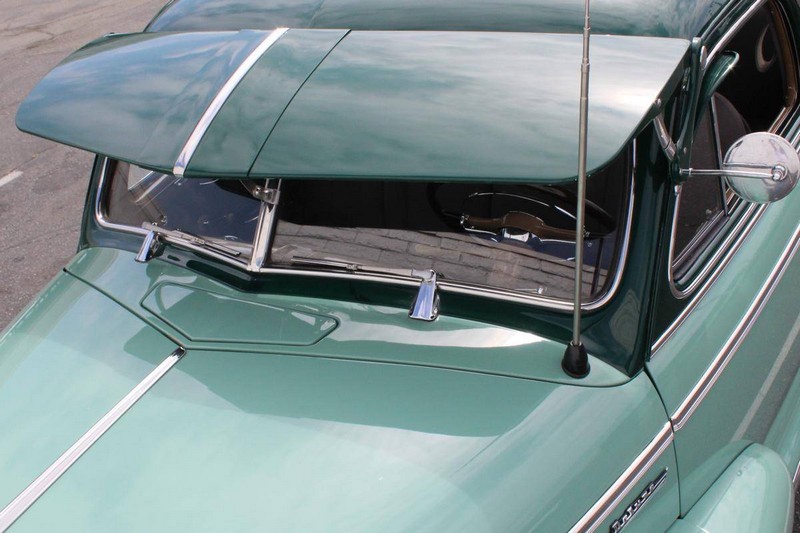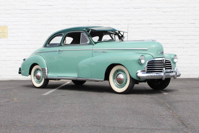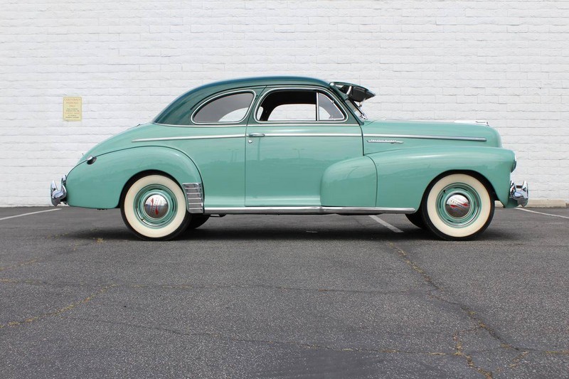 This 1942 Fleetmaster has undergone a comprehensive frame-off restoration. The body was stripped down to bare metal and painted a two-tone combination of Seafoam and Volunteer green, while the interior was completely redone in mohair and features the numerous accessories that were part of the Special Deluxe option package which include a deluxe steering wheel with horn ring, AM radio, heater, and clock, which is specific to the Special Deluxe. Additionally, this Special Deluxe is equipped with an accessory under seat heater as well. The original 216-cubic-inch inline 6-cylinder engine was completely rebuilt to factory specifications and is mated to a 3-speed manual synchromesh transmission, both of which work wonderfully. The 216 straight 6 runs like a top and is extremely quiet while the three-on-the-tree shifts super smoothly. The coupe rides on color-matched steel wheels with chrome trim rings and hubcaps wrapped in wide whitewall tires while other exterior features include an external sunshade and bumper guards. This green-on-green 1942 Fleetmaster is one the last Chevrolets built before production was suspended for wartime and comes with an extensive collection of restoration photos along with documentation of the work required to return the coupe to its original 1942 condition and it has completed just under 1,400 miles since restoration.