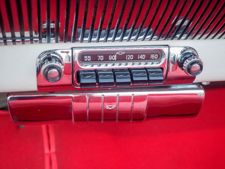 Beautifully restored 1954 Bel Air Convertible: Highly optioned example, Blue Flame 235 inline 6 engine, Powerglide automatic, Power steering, Power brakes, Power front windows, Power bench seat, Power black convertible top, Spotlight, Spare tire and jack, Original style radio, Older whitewall tires.