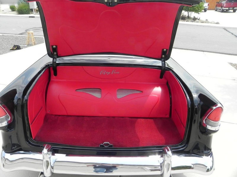 1955 Chevrolet Bel Air hardtop, Rotisisere restored, Powder coated frame, New LT1 crate engine, New 700R Transmission, Narrowed Ford 9″ rear end w/ 4 link and front and rear adjustable coil overs, Aluminum Radiator, CPP Tubular front A-Arms, Headers w/ 3″ exhaust, 4 wheel disc brakes w/ front slotted rotors, Power rack and pinion streering, Tilt steering column w/ custom steering wheel, Power windows, Power antenae, Colorado Custum Aluminum Wheels w/ Bridgestone tires, Custom Interior, Power seats, Digital Dakota guages, Vintage A/C blows cold, Pioneer CD Stereo deck with speaker box in trunk, Custum trunk Interior, Proffessionally built, The Drivetrain and suspension in this car makes it reliable as well as a great riding and cruising car.