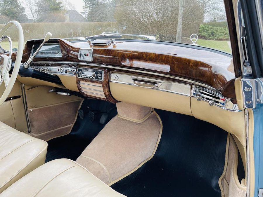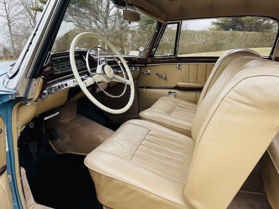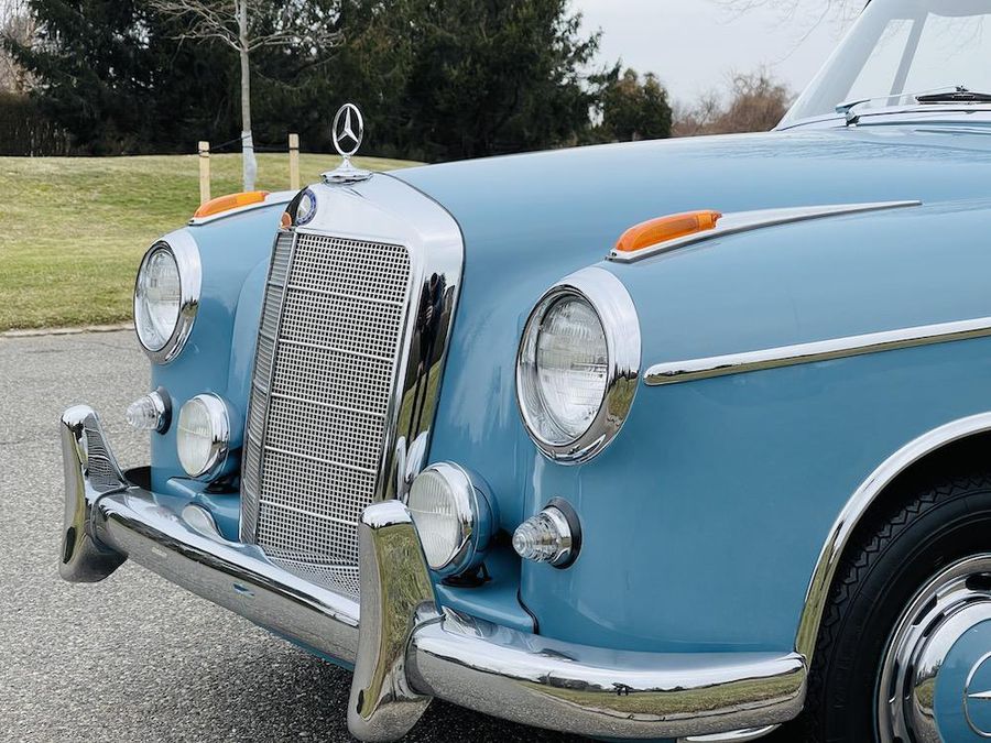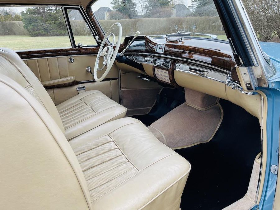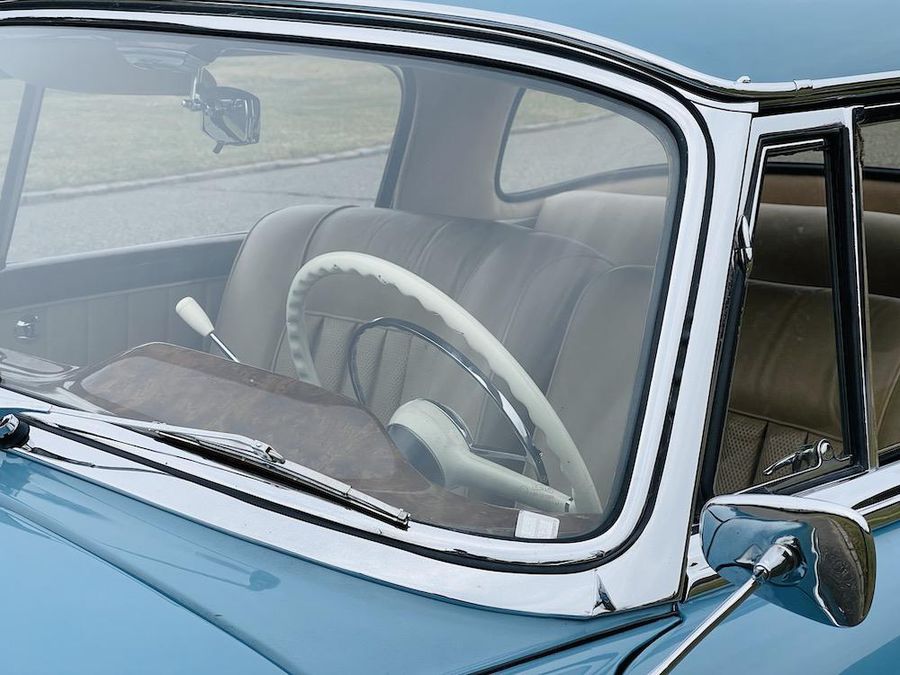 Offered for sale is a 1959 Mercedes Benz 220S Sunroof Coupe. This car retains its original color of Light Blue (DB 334) with natural leather. A remarkable option is the Webasto, sliding sunroof. Included in the sale are meticulous invoices and description of the restoration, original data card, and copious records.