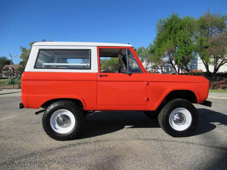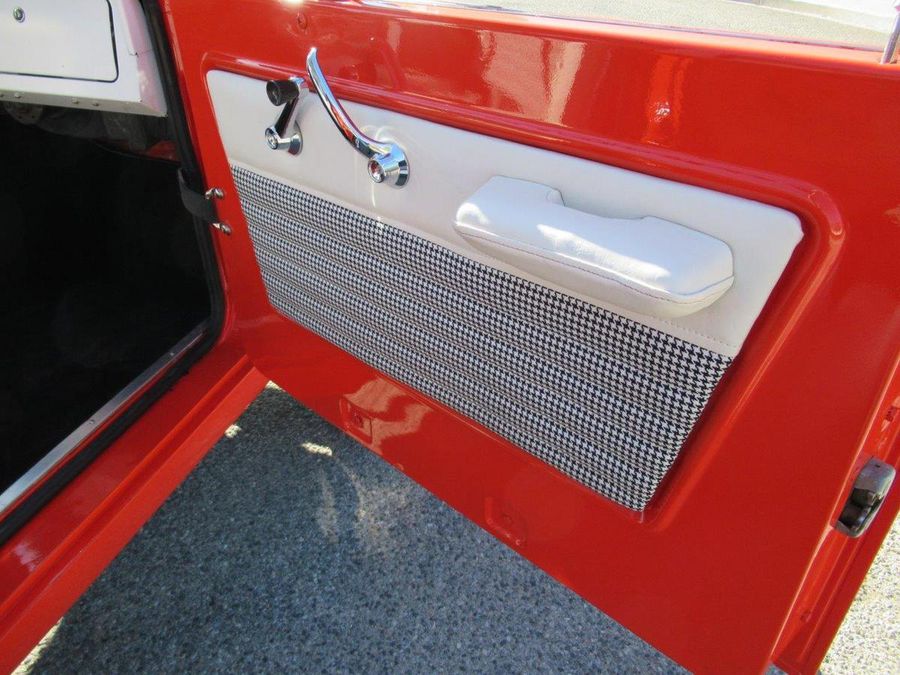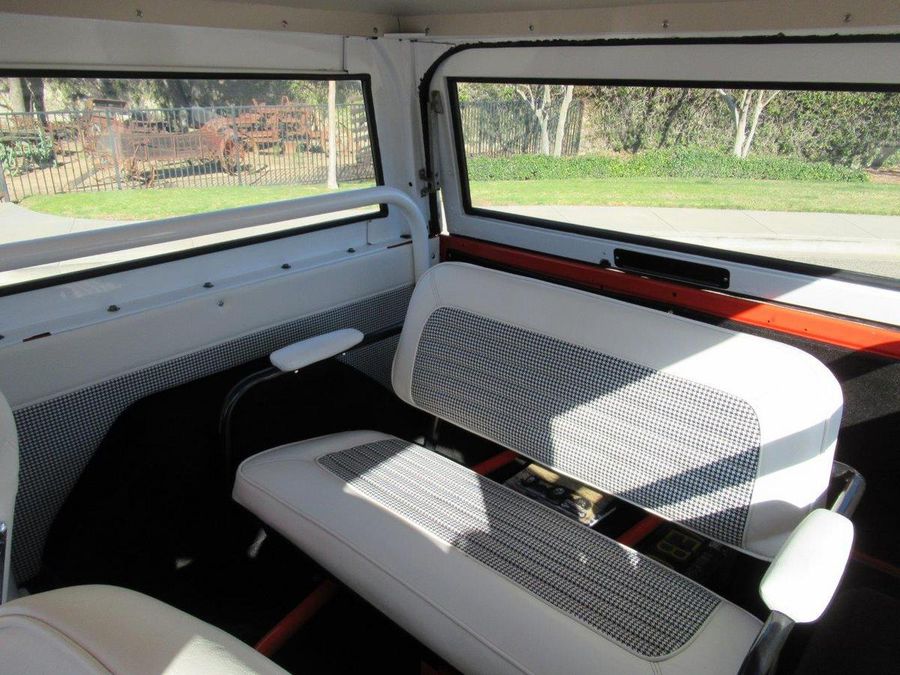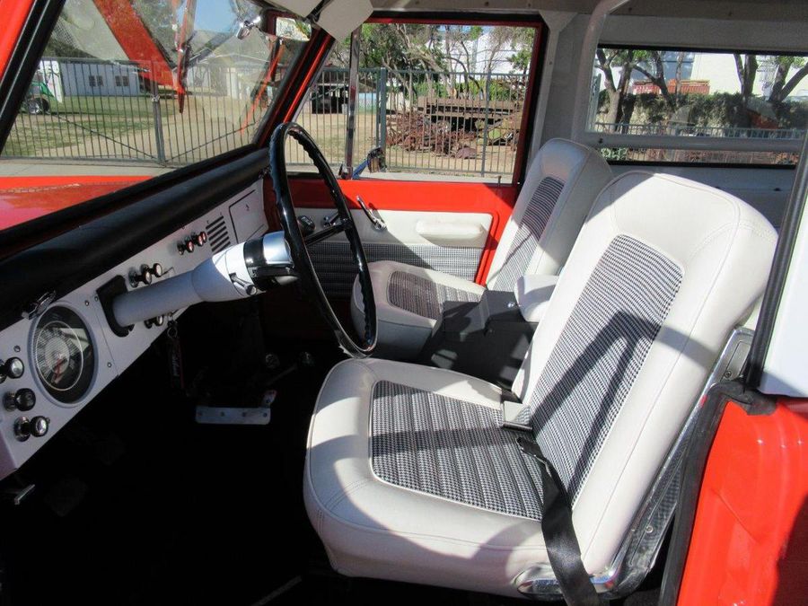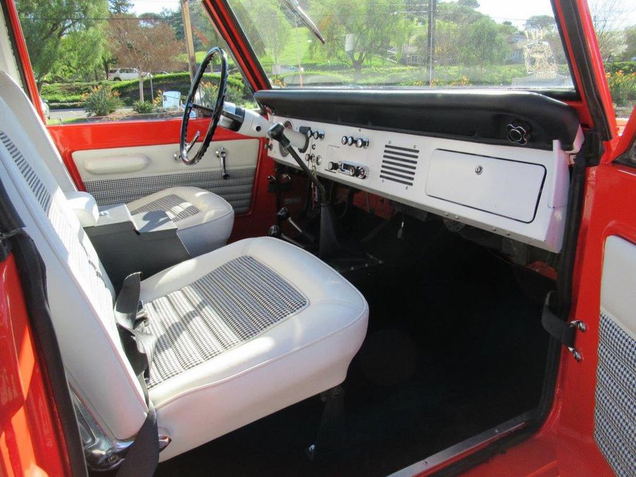 This original black plated Bronco just had a freshening up along with some really cool upgrades. Starting out with the rust free body and chassis and refinished in the original color of Poppy Red with brand new white and black hounds tooth interior, matching rear seat, center console for storage, factory roll bar, original hardtop, new carpet, all new weather stripping and seals, restored gauges, upgraded electric windshield wiper system and Retro in dash stereo system with Bluetooth connectivity. Under the hood sits the matching number refreshed 289 V8 backed by a 5 speed manual gearbox conversion with Centerforce clutch, dual shifter transfer case, upgraded Pertronix ignition, front power disc brakes, all new dual exhaust, shocks, steering stabilizer, bushings, both differentials gone through, new BFG All-Terrain T/A’s and some really cool looking stock style 17 inch steel wheels with hubcaps. and comes with the original license plates, plate frame, documentation, old registrations, original owner warranty card, Marti Report and service records. A rare find with tasteful upgrades for today’s highways!