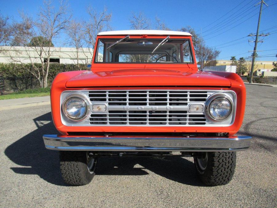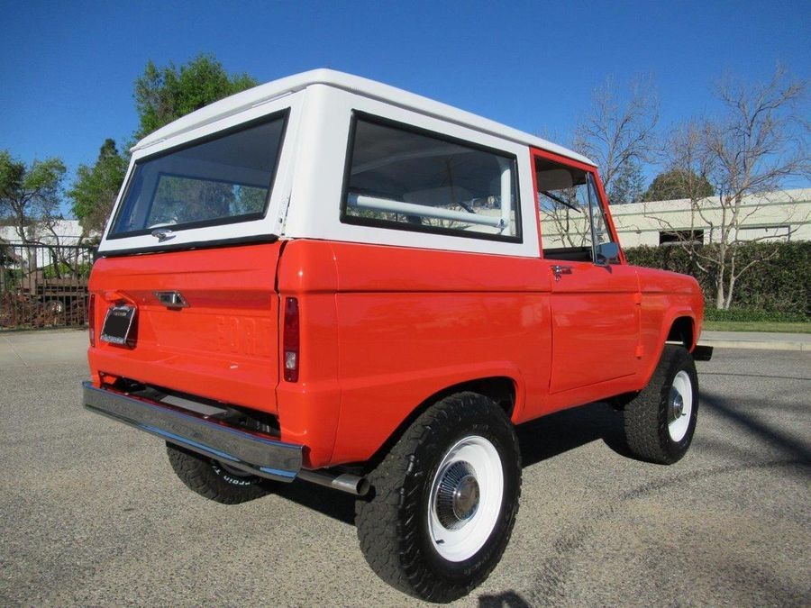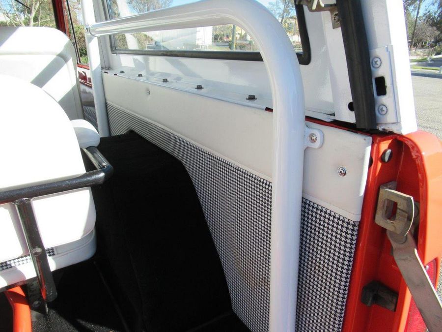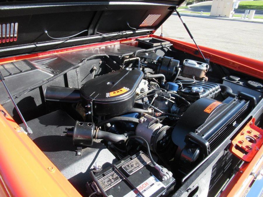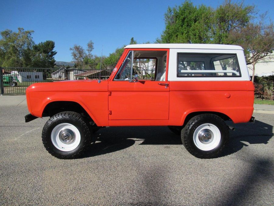 This original black plated Bronco just had a freshening up along with some really cool upgrades. Starting out with the rust free body and chassis and refinished in the original color of Poppy Red with brand new white and black hounds tooth interior, matching rear seat, center console for storage, factory roll bar, original hardtop, new carpet, all new weather stripping and seals, restored gauges, upgraded electric windshield wiper system and Retro in dash stereo system with Bluetooth connectivity. Under the hood sits the matching number refreshed 289 V8 backed by a 5 speed manual gearbox conversion with Centerforce clutch, dual shifter transfer case, upgraded Pertronix ignition, front power disc brakes, all new dual exhaust, shocks, steering stabilizer, bushings, both differentials gone through, new BFG All-Terrain T/A’s and some really cool looking stock style 17 inch steel wheels with hubcaps. and comes with the original license plates, plate frame, documentation, old registrations, original owner warranty card, Marti Report and service records. A rare find with tasteful upgrades for today’s highways!