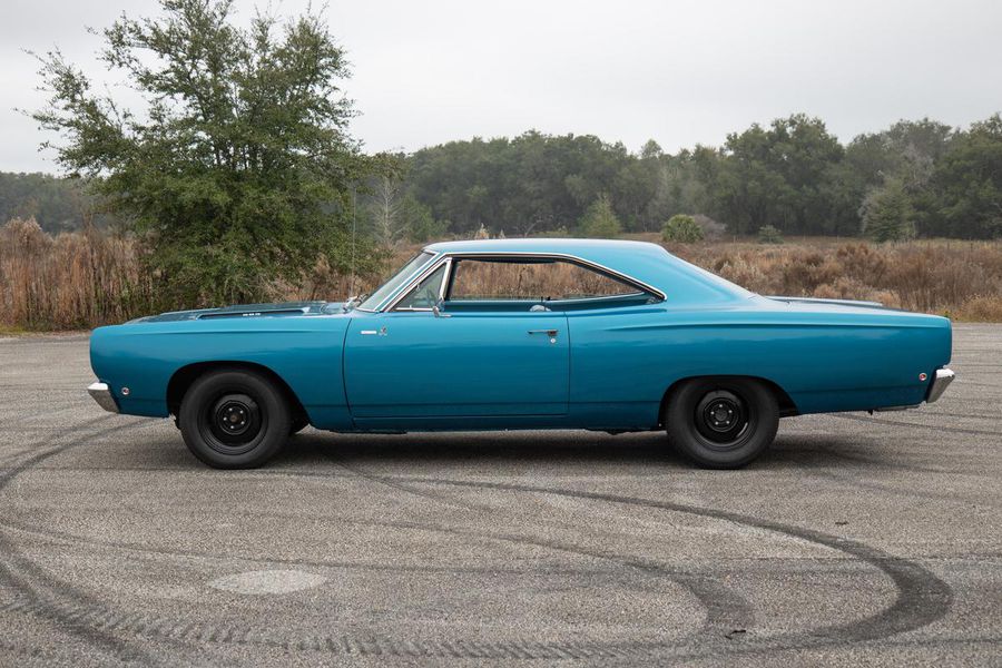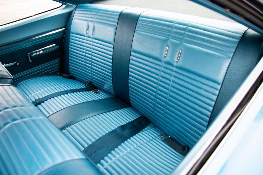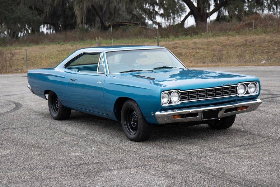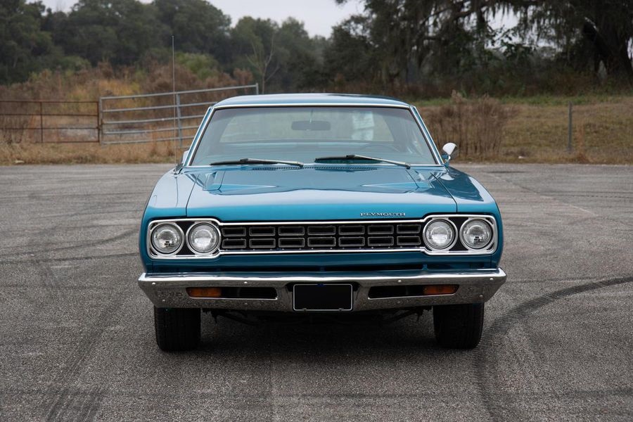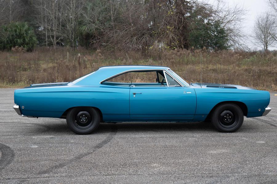 The year 1968 saw the emergence of the “New Mid Size 5” from Plymouth with the complete redesign of the mid size B-body platform. With the newly restyled GTX as the top tier model, Plymouth saw an opportunity at the other end of the spectrum to reach the entry level performance minded buyer with their new for 68′ Road Runner. The Road Runner was to compete with the GTO’s, Fairlane 500’s, and other hot mid size pavement burners but without costing so much as to alienate the younger buyers who craved the performance but weren’t quite well off enough for a GTX. As such, many of these early Road Runners were ordered as a bare bones, no options, street brawlers. The particular Road Runner you see pictured here differs slightly from this recipe as it features factory air conditioning, a rare and expensive optional extra in 1968. The numbers on the odometer are believed to be original and judging from the fact that this car still has it’s original floors and trunk pans, this must have been a southern states ordered car from the beginning, hence the A/C!!! While it sports a fresh repaint of the factory correct and original QQ1 code Frost Blue Metallic paint, the car is otherwise original and unrestored. The patina inside, under hood, and in the chassis is indicative of it’s fifty four years of road use. The engine is the original numbers matching 383CI V-8 with single four barrel carburetor producing 335 horsepower and 425 pound feet of tire shredding torque. All that power flows through a four speed manual transmission with Hurst shifter and on to a Chrysler 8 3/4 rear axle with 3.23 gear ratio and Sure Grip limited slip. Factory heavy duty suspension means this Road Runner corners like its on rail while the baritone track from the dual exhaust is all the sweet sound your heart could desire.