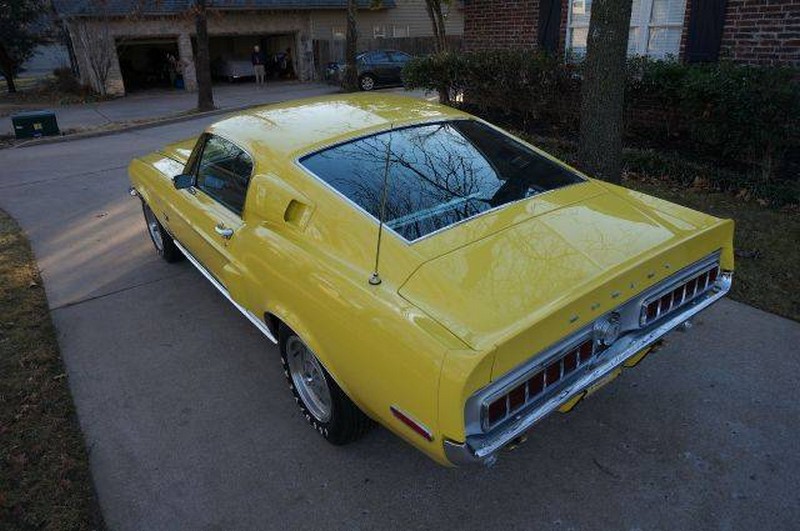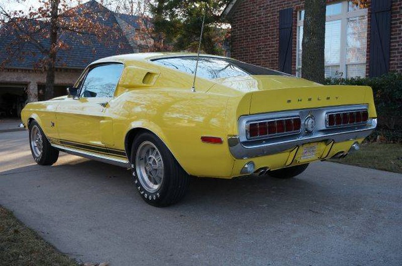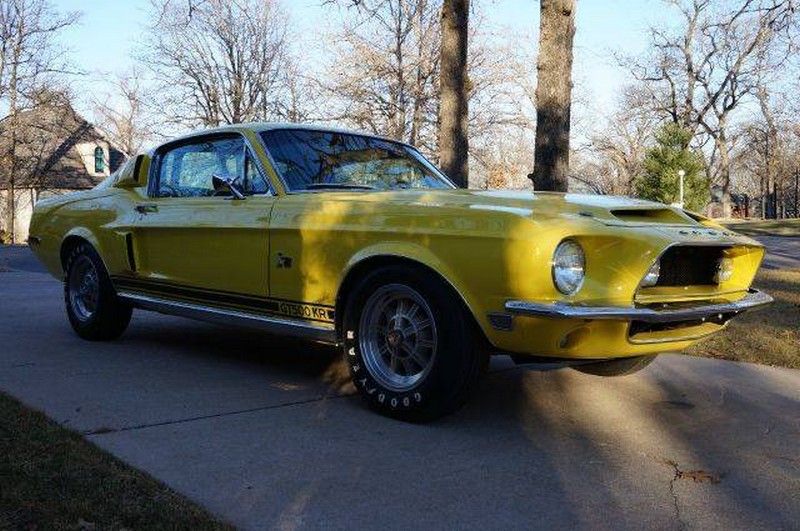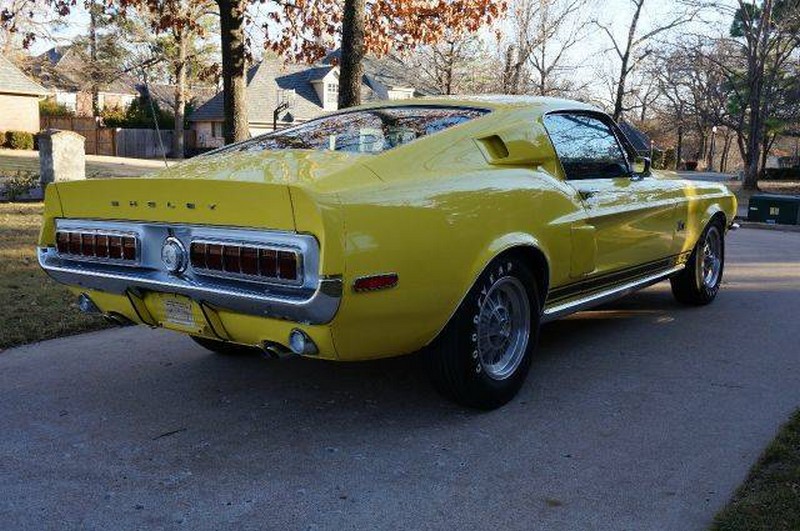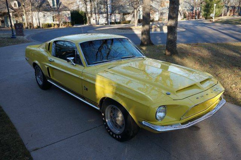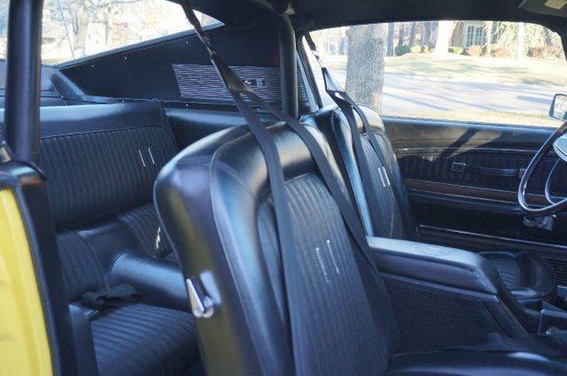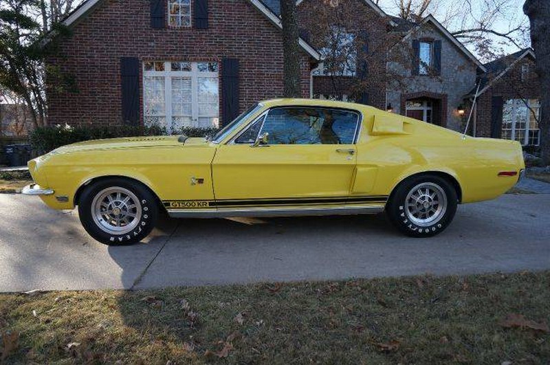 Two updates made late in the 1968 model year contribute to the rarity of this low-mileage 1968 Shelby GT500KR. In April 1968, Ford introduced the 428 Cobra Jet big-block engine, which quickly replaced the 428 Police Interceptor as the standard powerplant for the Shelby GT500. To differentiate the new CJ version from the previous model, Carroll Shelby swooped in and snagged the copyright for “King of the Road,” a name proposed for a Chevrolet muscle car. Thus, all CJ-powered Shelbys were renamed GT500KR. Around the same time, Ford announced six special exterior paints, including a Bright Yellow of only 86 were built. Shelby #4010. Very RARE!