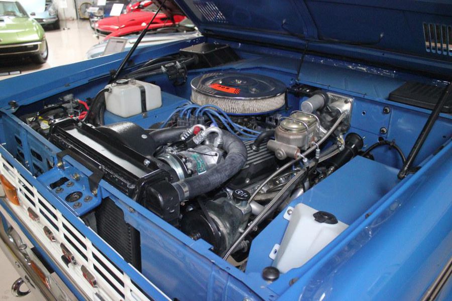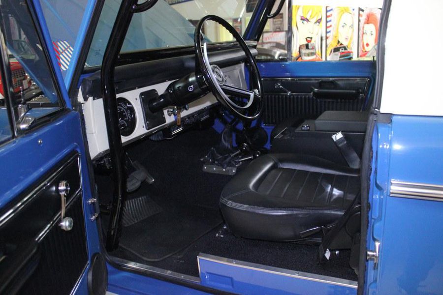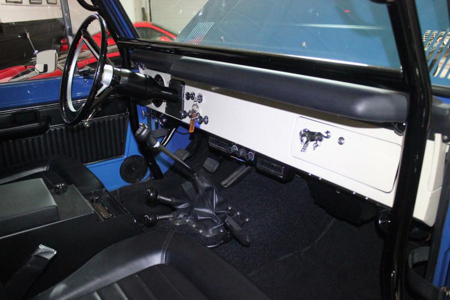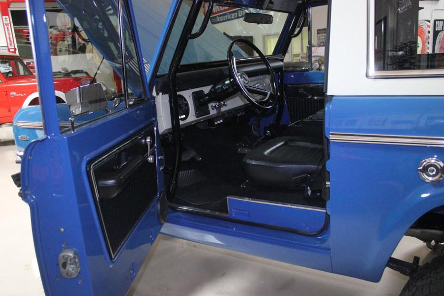 The vehicle has only 400 miles since finished and he wishes someone who may have more time to enjoy it get the opportunity to do so. Virtually every option was included the vehicle has a fully rebuilt 302 V8 with Smooth Shifting 5 Speed, that includes Power Steering, Hydro boost brakes with discs all the way around. A twin stick application was used for 4-wheel drive which offers exciting options if one to ever take it to the trails, sand or beach. The exterior finish is flawless the fenders as you may notice are custom fabricated from a donor set of front fenders to match the curvature, this is highly expensive design to create, and even many of the top builders don’t do this as its cost, time and effort over extend the budget so they just use plastic flares, but not this Bronco this level of perfection is quite unique to say the least. Creature comforts include Air Conditioning and fantastic sound system and the ride is very smooth with its new top of the line Bilstein shocks. The vehicle holds very well on the highway and very tight by utilizing a 6 point braced custom roll cage. Equipped with a wagon top the vehicle can easily become a top less by removing it to enjoy the sunlight and open air. Way too many details to list each and everything is new a modern including a new gauge cluster, locking center console, usb connectors and more.