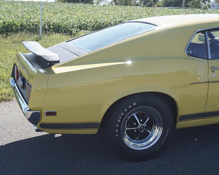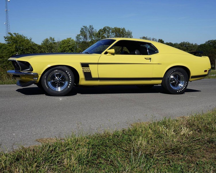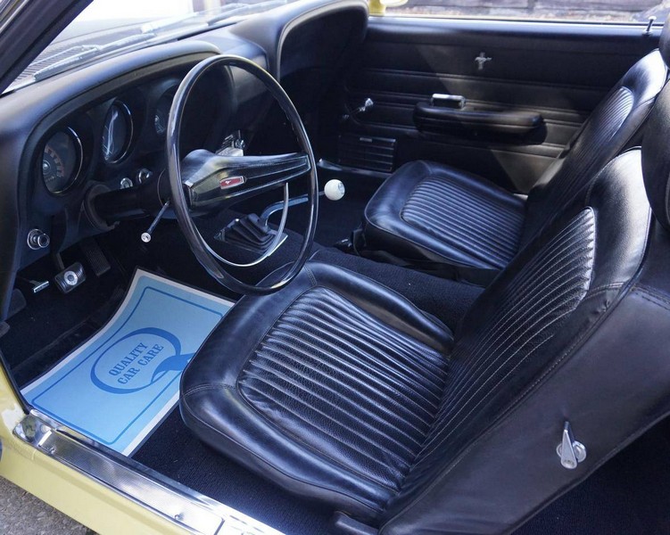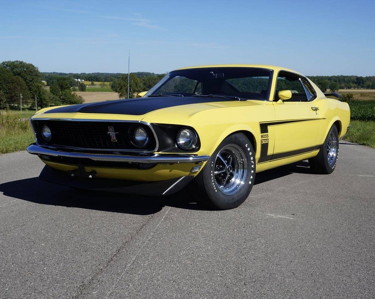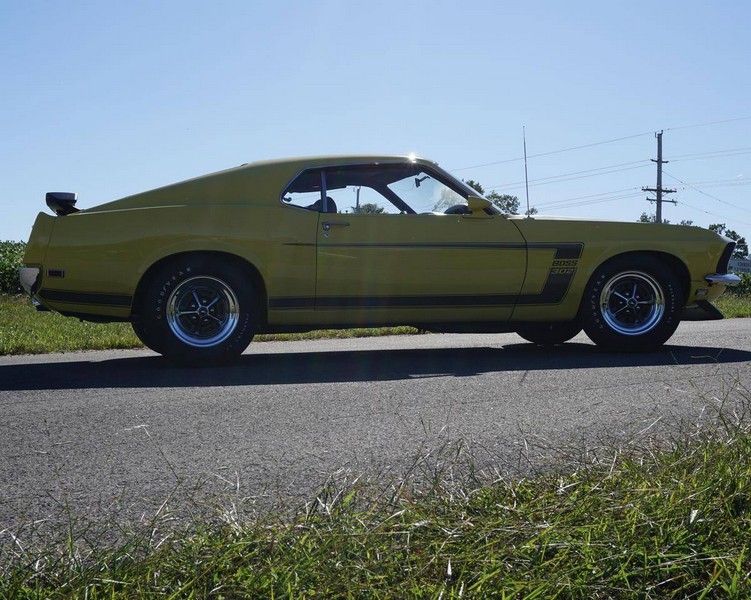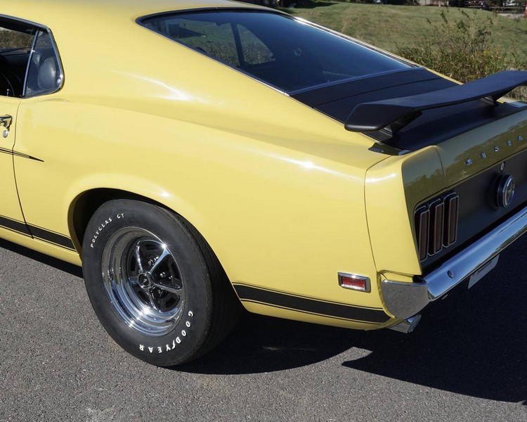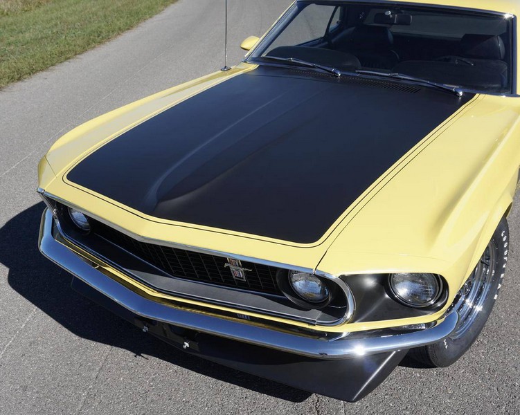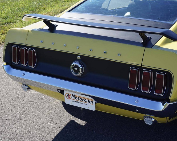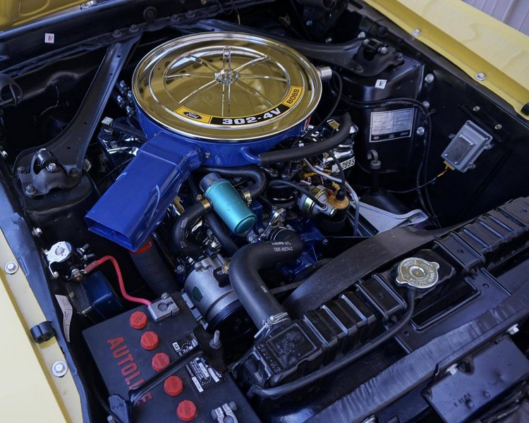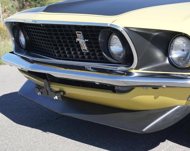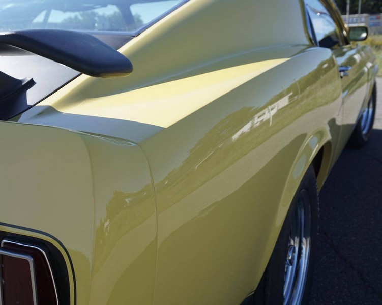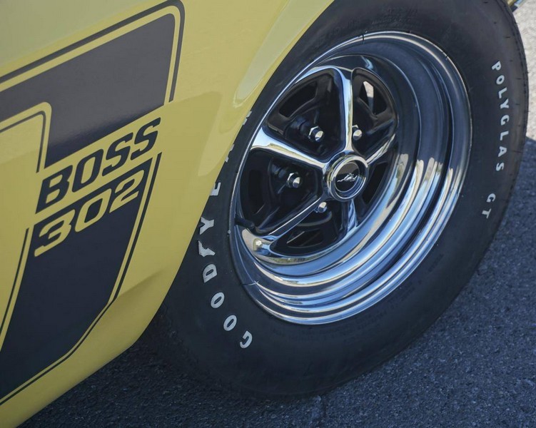 Body – The car received a show-quality repaint in its original Bright Yellow with Matte Black Boss 302 accents. The undercarriage is restored to factory-original specs with Red Oxide Primer, body-color overspray and correct seam sealant and sound deadener application. The car retains its original 1969 rear deck spoiler (a very rare piece as it was only available on 1969 Boss 302 from the factory). Any and all rust issues were addressed during the restoration, the paint quality, fit and finish would be graded at 9/10.