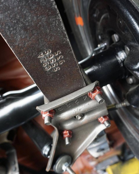 Much of the original heavy-duty suspension including the tie rods, HD sway bar and rear leaf springs are original and still show their original factory paint daubs. The rear “Staggered Shock” setup unique to high performance models including Boss 302, Boss 429 and 4-Speed 428 Cobra Jet cars is still intact.