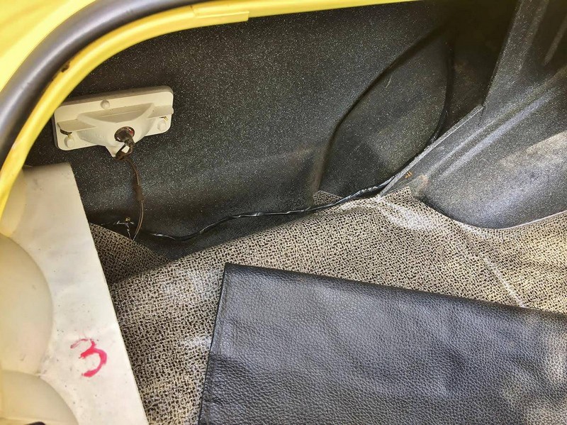 Open the trunk and you will find the correct splatter paint, a new trunk mat, the correct scissors jack, lug wrench, spare tire, and mounting hardware. This car even has a new top boot with its’ original born with top boot bag!