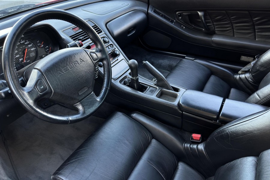 THIS… is a 1996 Acura NSX-T, finished in Formula Red with a black interior. This NSX-T features the desirable 5-speed manual transmission.