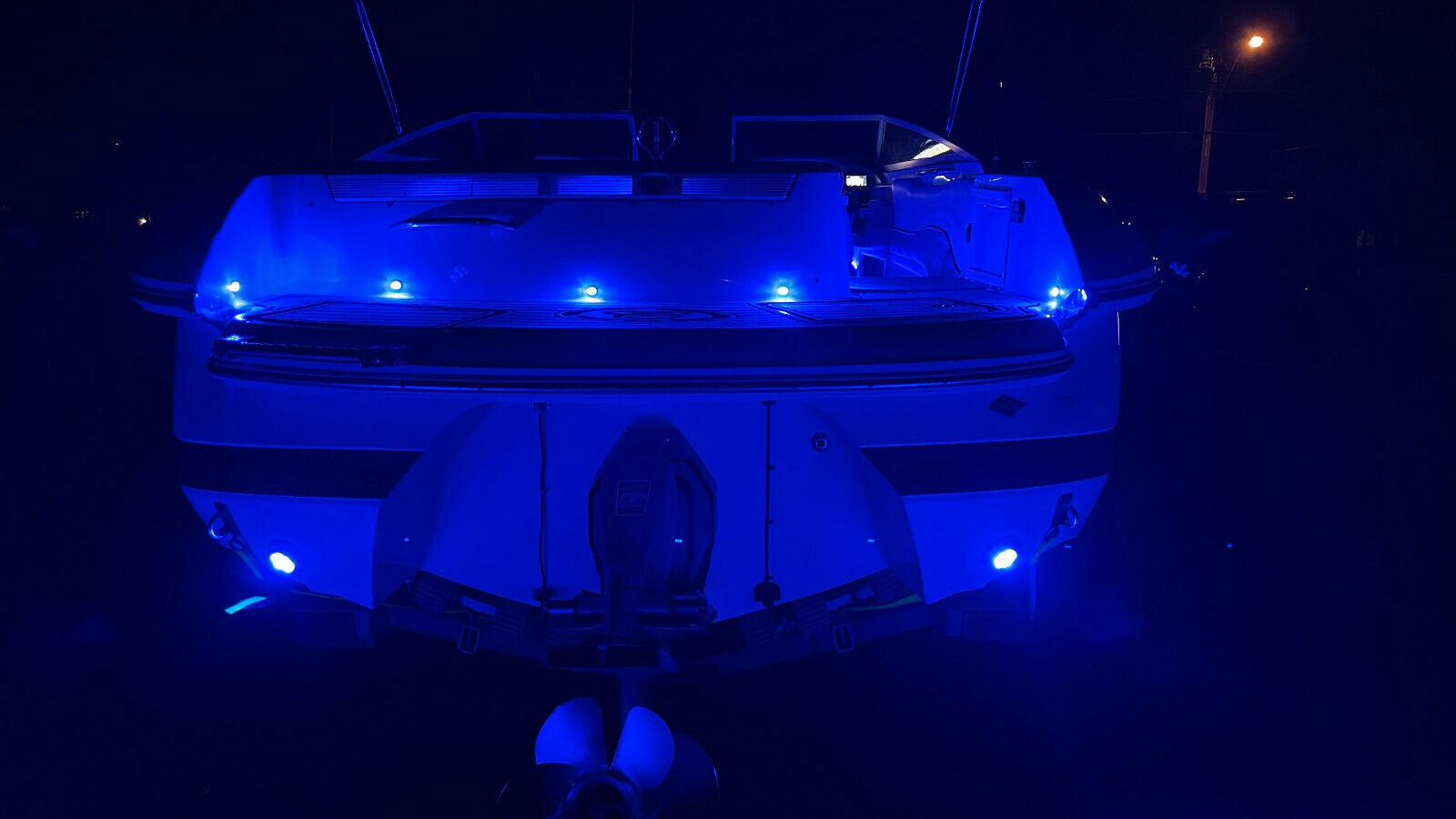 The entire boat was upgraded to led lighting. Stainless steel led cup-holders, led trim rings and led interior lighting. The swim platform and walk-thru was also upgraded to all led lighting. This all makes for a fun and awesome day