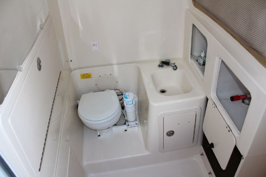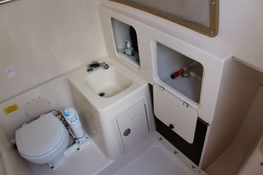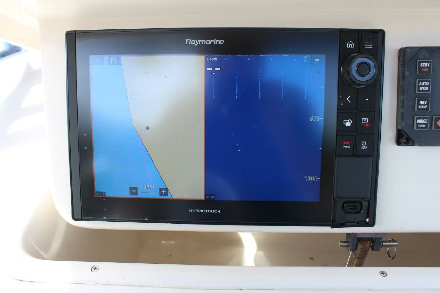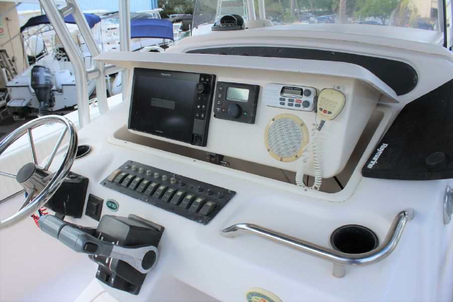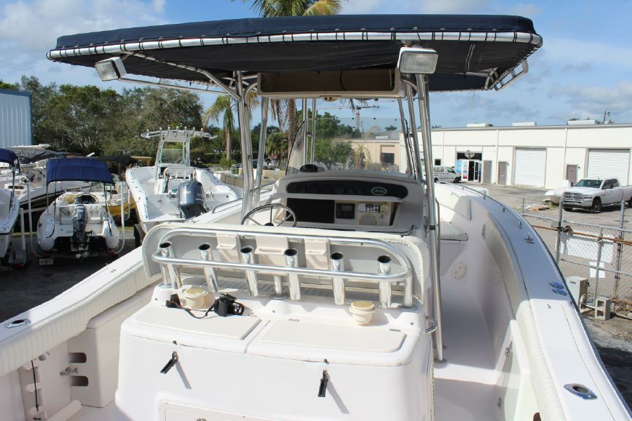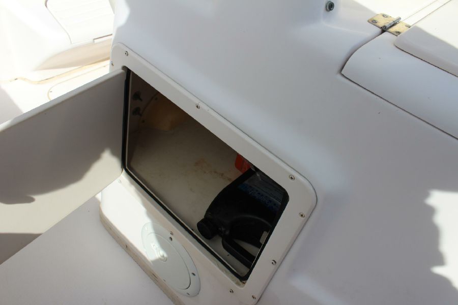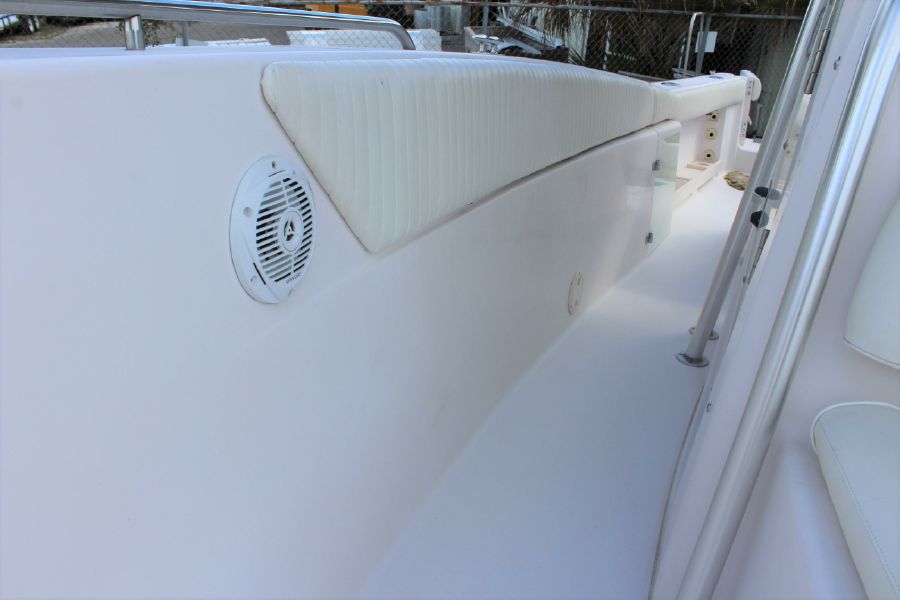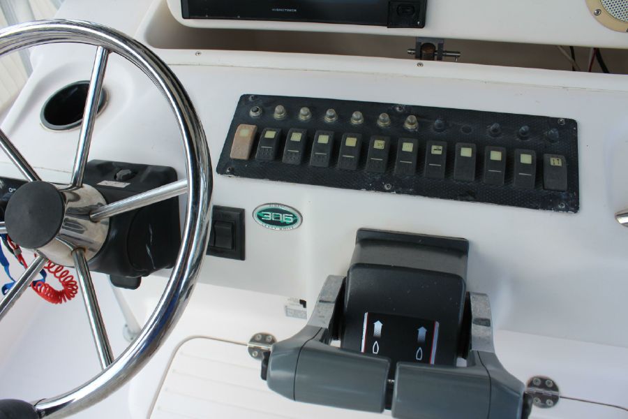 The Grady-White Bimini 306 features an electro-mechanical electronics enclosure that adjusts both to varying viewing conditions and to the helmsman’s height at the push of a button. and includes a 12inch Raymarine Hybrid Touch GPS / Sounder. Also include trim tabs, VHF Radio, Fusion Stereo. Large bow area has a full set of cushions. The enclosed head is very roomy and has a flushing toilet, sink, and storage. Lots of cockpit space for rods and gear. There is a transom livewell and a tuna door. Factory T-top. All Upholstery in nice shape. This rugged offshore fisherman is in excellent shape and runs great. Does not have a trailer.