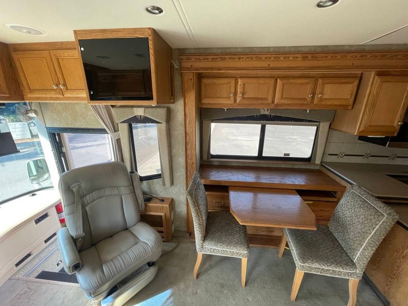 Did not make many 34 footers.Custom built Dynomax chassis.Independent front suspension gives the ability to maneuver tight spots. four slide rooms give lots of interior room to stretch out.