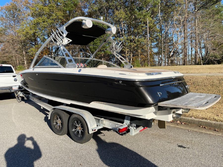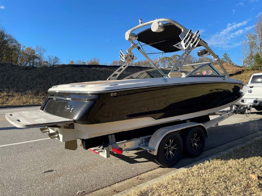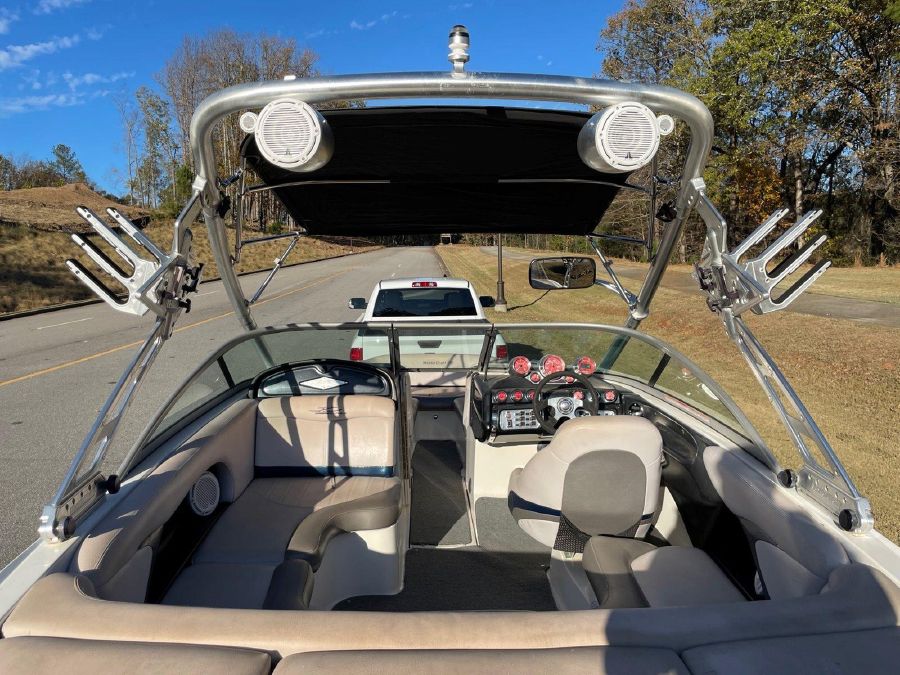Wakeboarding enthusiasts will have a difficult time finding a more accommodating boat than the X-Star. The boat’s unique hull deserves much of the credit for both the exhilarating wake and the comfortable ride of the boat. The AP-1 (Anything’s Possible) hull’s four terraced chines have been designed to manipulate and enhance wake shape. Located at the helm console, the X-Pod is a bullet-shaped configuration of billet aluminum gauges that suspend the speedometer, tachometer and Perfect Pass cruise control in full view of the driver. At the center of the boat, you’ll find wrap-around seating covered in dense 34 ounce vinyl. All of the seats have storage space underneath, and the observer’s seat (opposite the driver) flips up for storage, forming a dual access compartment that is accessible from the bow or amidships. The X-Star has been the best-selling boat in MasterCraft’s 35 year history, so everyone at the company was understandably nervous about taking part in such a radical redesign, but they are confident that they have given their customers and prospective buyers exactly what they want: a no-nonsense wakeboarding boat that looks and rides like a dream.