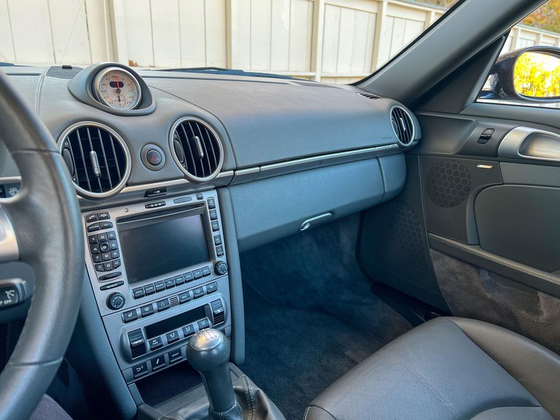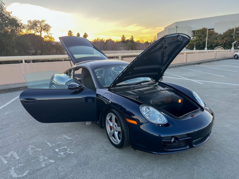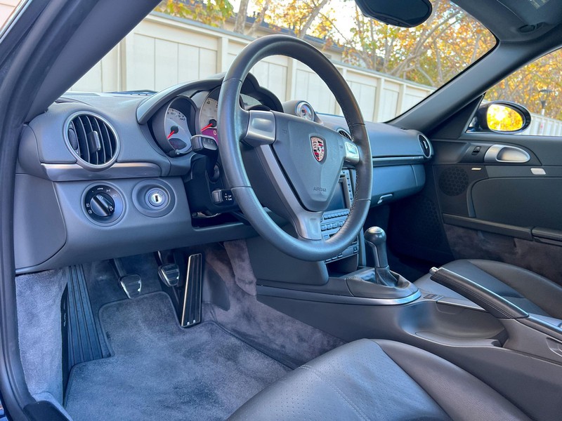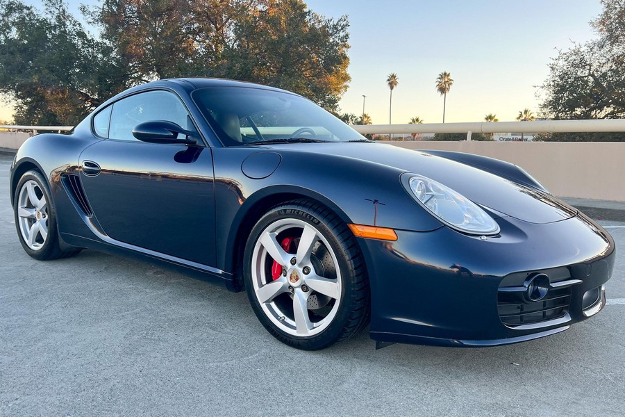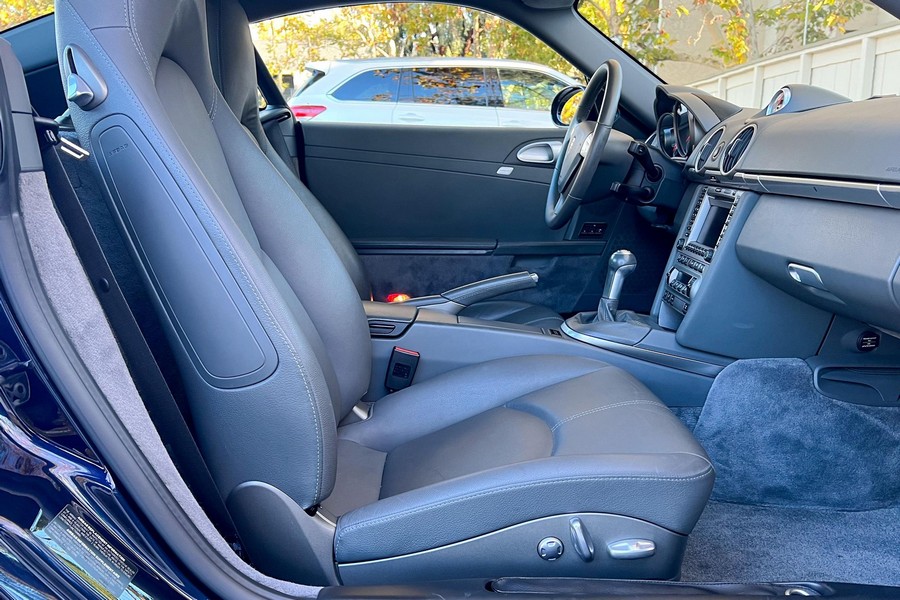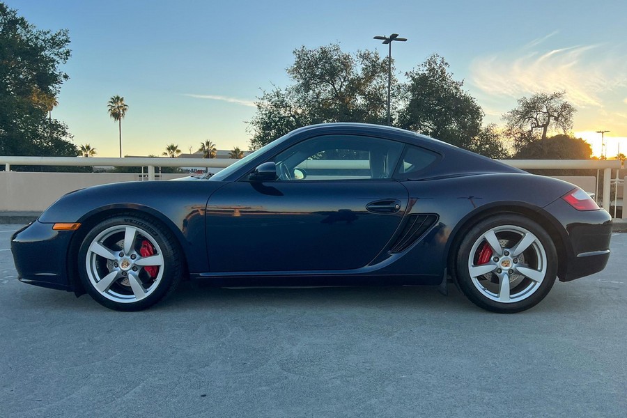 THIS… is a 2007 Porsche Cayman S, finished in Midnight Blue Metallic with a Stone Gray interior. This Cayman is equipped with the desirable 6-speed manual transmission. The attached Carfax history report shows no accidents or mileage discrepancies in this Cayman’s past. It also confirms that it’s been registered in California since new. According to the window sticker provided in the gallery, factory equipment includes the Preferred Package Plus, the Sport Chrono Package Plus, PASM suspension, 18-inch Cayman S wheels, bi-xenon headlights, leather upholstery, power-adjustable heated front seats, a PCM infotainment system, a Bose High End sound system, and more as detailed below. Modifications reported by the seller are limited to a Dream 1 exhaust and a Dension interface for the sound system. Power comes from a 3.4-liter flat-6 engine, rated at 295 horsepower and 251 lb-ft of torque. Output is sent to the rear wheels via a 6-speed manual transmission.
