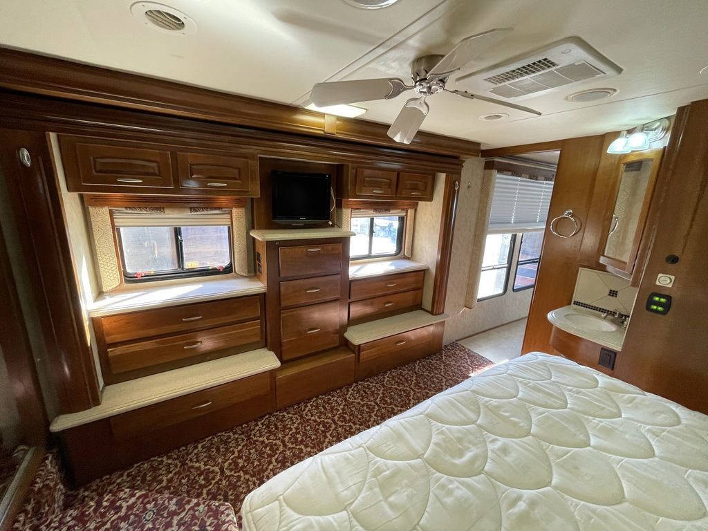 2008 Monaco Camelot 42KFQ, , Basic Information – Year: 2008, Basic Information – Make: Monaco , Basic Information – Model: Camelot, Basic Information – Trim: 42KFQ, Basic Information – Stock Number: 047595,Engine – Fuel Type: Diesel, Basic Information – Type: Motorized Class A, Basic Information – Sleeping Capacity: 6, Basic Information – Length (Feet): 42.83, Basic Information – Chassis Model: Raised Rail Chassis, Basic Information – Chassis Brand: Roadmaster, Basic Information – Construction Body Material: Aluminum, Basic Information – Sidewall Construction: Fiberglass, Bedroom / Bath – Bathroom, Bedroom / Bath – Bathroom Flooring Type: Tile, Bedroom / Bath – Bathroom Location: Center, Bedroom / Bath – Bathroom Medicine Cabinet, Bedroom / Bath – Bathroom Mirror, Bedroom / Bath – Bathroom Vent / Fan System, Bedroom / Bath – Full Size Master Bedroom Closet, Bedroom / Bath – Master Bedroom, Bedroom / Bath – Master Bedroom Door Style: Full Sliding Door, Bedroom / Bath – Master Bedroom Flooring Type: Carpet, Bedroom / Bath – Master Bedroom Location: Rear, Bedroom / Bath – Master Bedroom Mirror Doors, Bedroom / Bath – Number Of Bathrooms: 1, Bedroom / Bath – Number Of King Size Beds: 1, Bedroom / Bath – Shower, Bedroom / Bath – Shower Door Type: Plastic / Glass, Bedroom / Bath – Toilet, Bedroom / Bath – Toilet Type: Porcelain, Cargo / Storage – Pass-Thru Storage, Cockpit Features – Power Adjustable Seat, Cockpit Features – Seat Armrests, Cockpit Features – Cruise Control, Cockpit Features – Power Windows, Comfort – Heater, Comfort – Sofa, Comfort – Reclining Seats, Comfort – Swivel Seats, Comfort – Number Of Sofas: 2, Comfort – Number Of Seats: 2, Comfort – Number Of Convertible / Sofa Beds: 2, Comfort – Seat Type: Bucket, Comfort – Air Conditioning Type: Automatic, Comfort – Seat Material: Leather, Comfort – Sofa Material: Cloth, Comfort – Air Conditioning, Comfort – Heater (BTUs): 51000, Comfort – Heater Type: Automatic, Convenience – Power Retractable Entry Steps, Convenience – Sky Light, Convenience – Roof Vents, Convenience – Leveling Jack Type: Front Power / Rear Power, Drivetrain – Transmission, Drivetrain – Transmission Type: Automatic, Drivetrain – Transmission Speed: 6, Drivetrain – Overdrive, Drivetrain – Transmission Brand: Allison, Drivetrain – Driveline, Drivetrain – Driveline Type: 4X2, Drivetrain – Number Of Axles: 2, Electrical / Generator – Exterior Plugs, Electrical / Generator – Ground Fault Plugs, Electrical / Generator – Battery, Electrical / Generator – Voltage Meter, Electrical / Generator – Water Pump Power Display, Electrical / Generator – Air Conditioning Prewiring, Electrical / Generator – Heat Prewiring, Electrical / Generator – Battery Power Converter, Engine – Horsepower (kW): 298.5, Engine – Horsepower (bhp): 400, Engine – Torque RPM: 1300, Engine – Torque (Nm): 1623, Engine – Torque (Ft Lbs): 1200, Engine – Displacement (l): 8