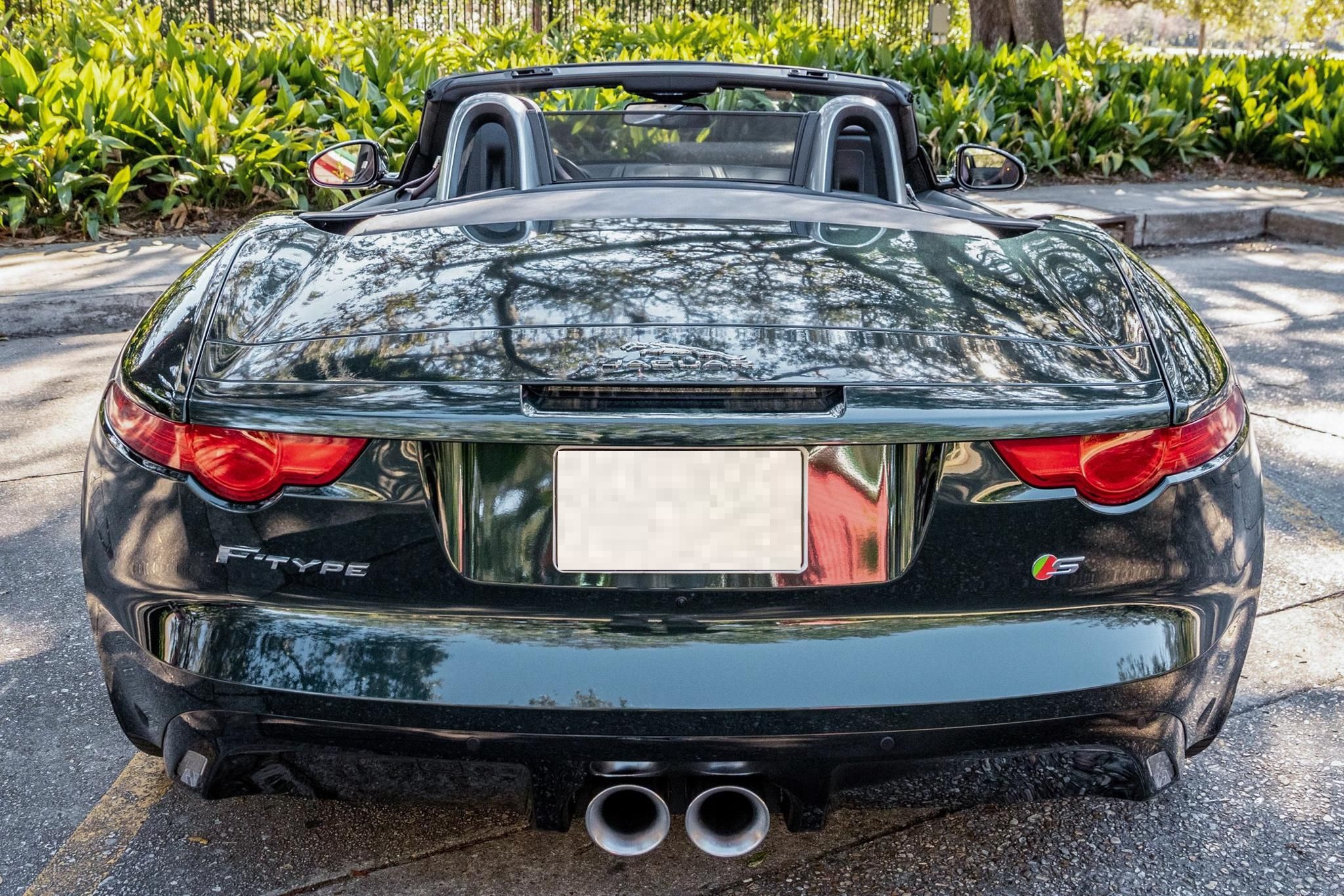 THIS… is a 2014 Jaguar F-Type S Convertible, finished in British Racing Green with a beige soft top and a Jet/Brogue interior. The odometer currently displays approximately 18,200 miles. The attached Carfax vehicle history report lists no accidents or mileage discrepancies in this F-Type’s past. It also confirms that this is a one-owner car that has been registered in Louisiana since new. Equipment includes Premium Pack S, Performance Pack S, Vision Pack, Climate Pack, Extended Leather Pack, adaptive sport suspension, a limited-slip differential, active exhaust system, power-adjustable seats, a Meridian sound system, and more as detailed below. The seller reports no modifications.