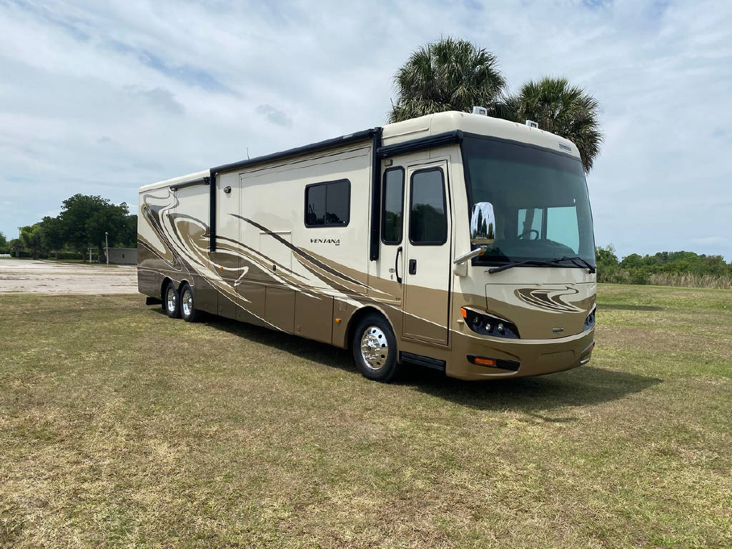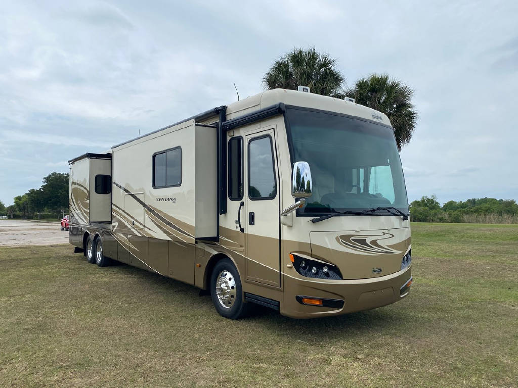 2014 Newmar Ventana 4369 3 slide motorhome with 25502 miles. This coach is on a Freightliner Chassis powered by a 400HP Cummins Diesel with Allison Transmission. This coach includes Residential Fridge, HD TVs, Electric Cooktop, a Stacked Washer/Dryer, Bath 1/2, King Bed & more !!!!
