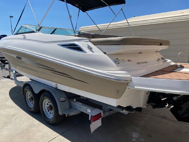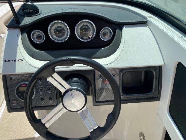 This Is A Used 2014 Sea Ray 240 Sundeck Deck Boat. It Is Powered With A Mercruiser 300hp 350 Mag MPI, Bravo 3 I/O With Only 335 Hours. It Includes Options Like Bimini Top, Stereo, Dual Propellers, Dual Batteries, Docking Lights, Fuel Injection, Swim Step With Ladder, Stainless Steel Propellers, Trim Indicator, Pressure Water System, Drivers Bucket Seat, Tilt Wheel, Compass, L Shaped Seating, Motor Box Sun Pad, Underwater Lights, Enclosed Changing Room, Cockpit Table, Floor Locker, Open Bow Seating, Anchor Locker and More.