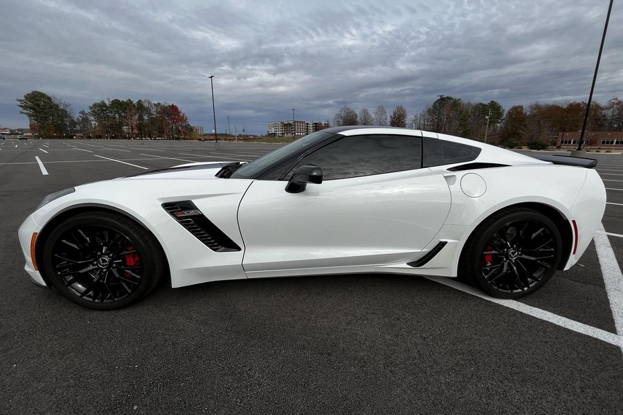 THIS… is a 2015 Chevrolet Corvette Z06 Coupe, finished in Arctic White with a Jet Black interior. This Corvette is equipped with the desirable 7-speed manual transmission. The attached Carfax history report lists no accidents or mileage discrepancies in this Z06’s past,and a partial list of notable equipment includes the 3LZ Premium Equipment Package, Z06 Performance Package, the Carbon Fiber Interior Package, 19-inch front and 20-inch rear Black Aluminum Z06 wheels, Carbon Flash hood stripe, outside mirrors, and spoiler, and a removable carbon fiber roof panel.
