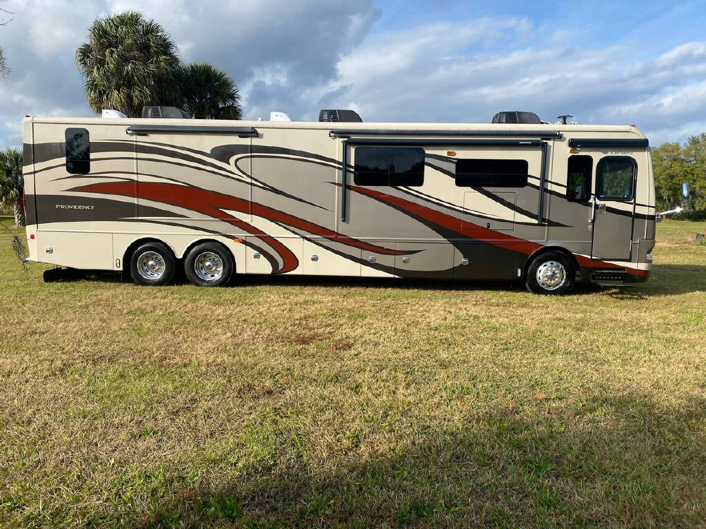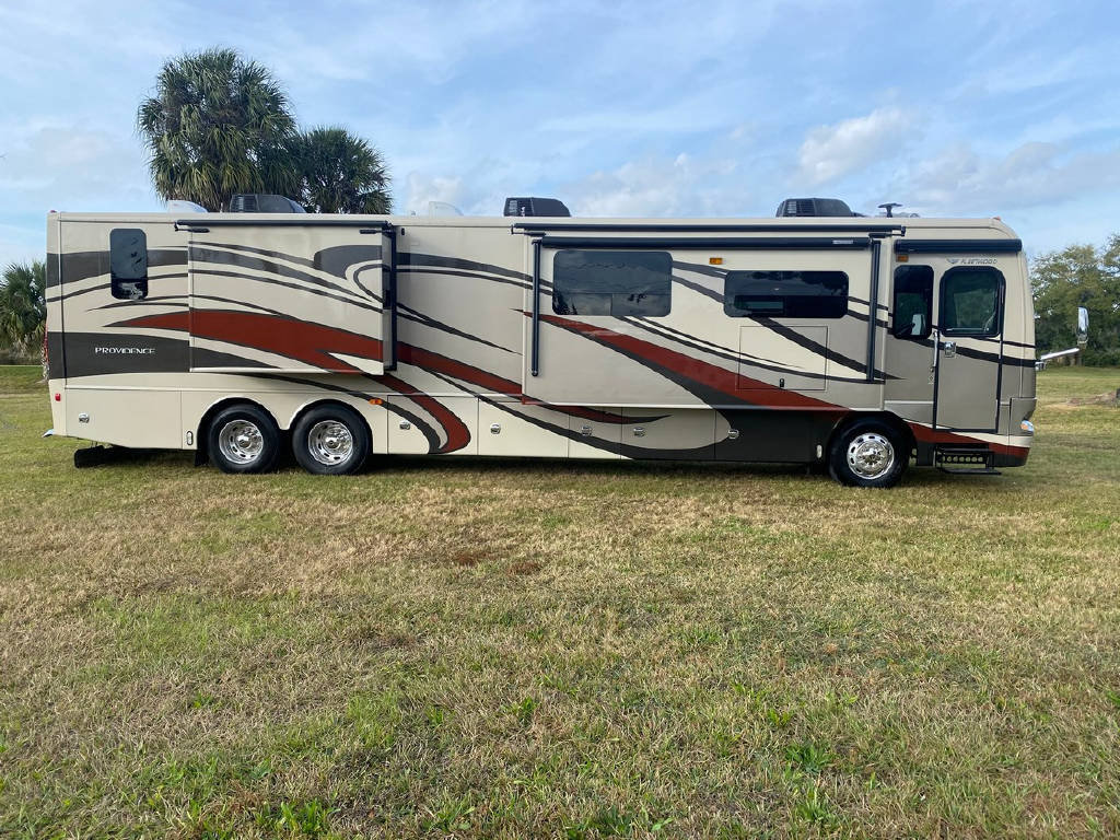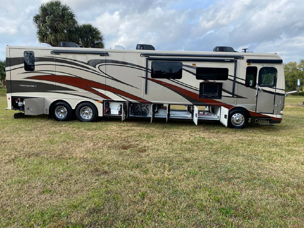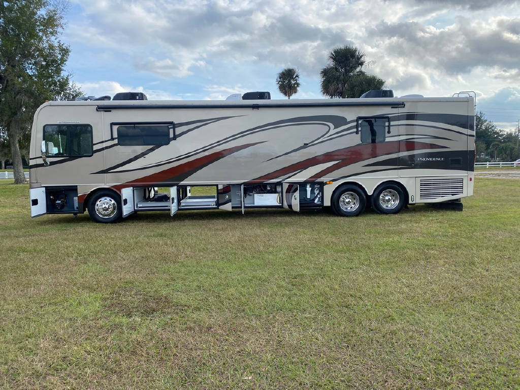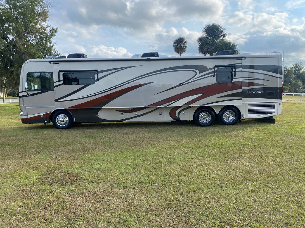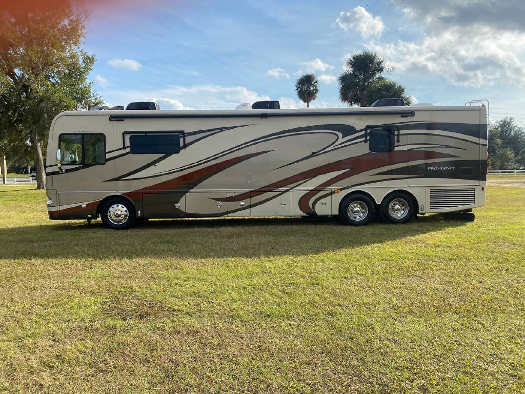 2015 Fleetwood Providence 42M 3 slide motorhome with 38,166 miles. This coach is on a Freightliner Chassis powered by a 450HP Cummins Diesel with Allison Transmission. This coach has everything including dual sofa recliner, sofa w/ air mattress, HD TVs, stackable washer dryer, Aquahot, Bath 1/2, King bed & more !!!!