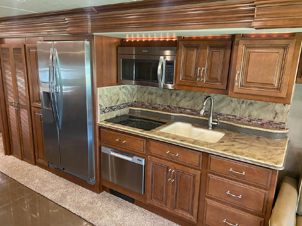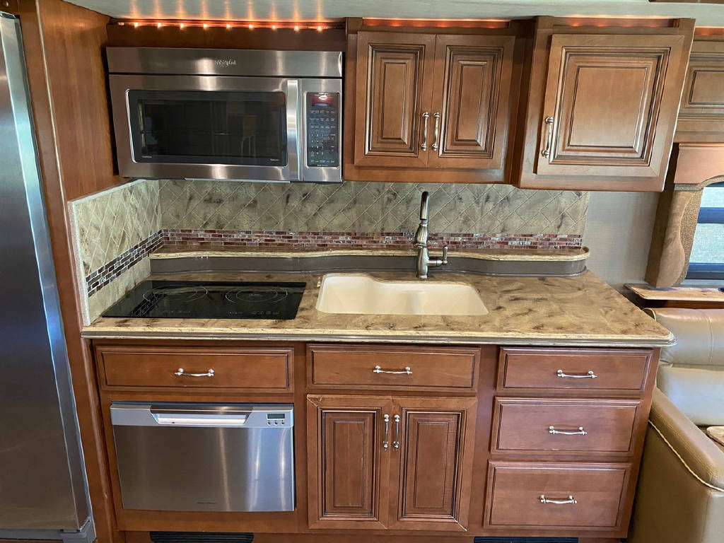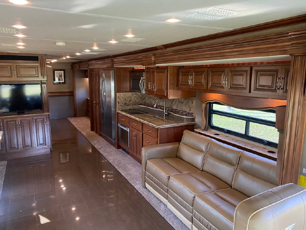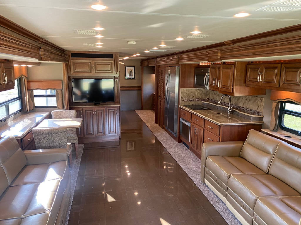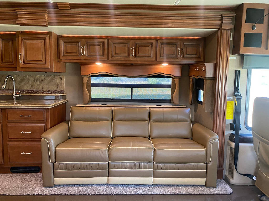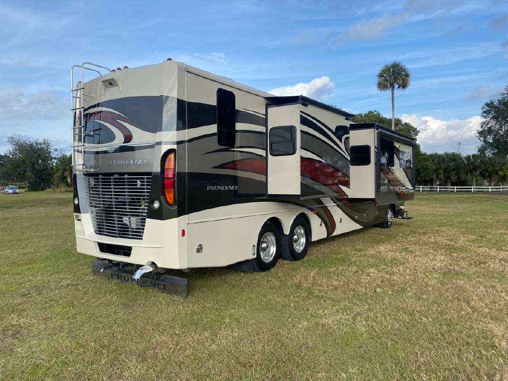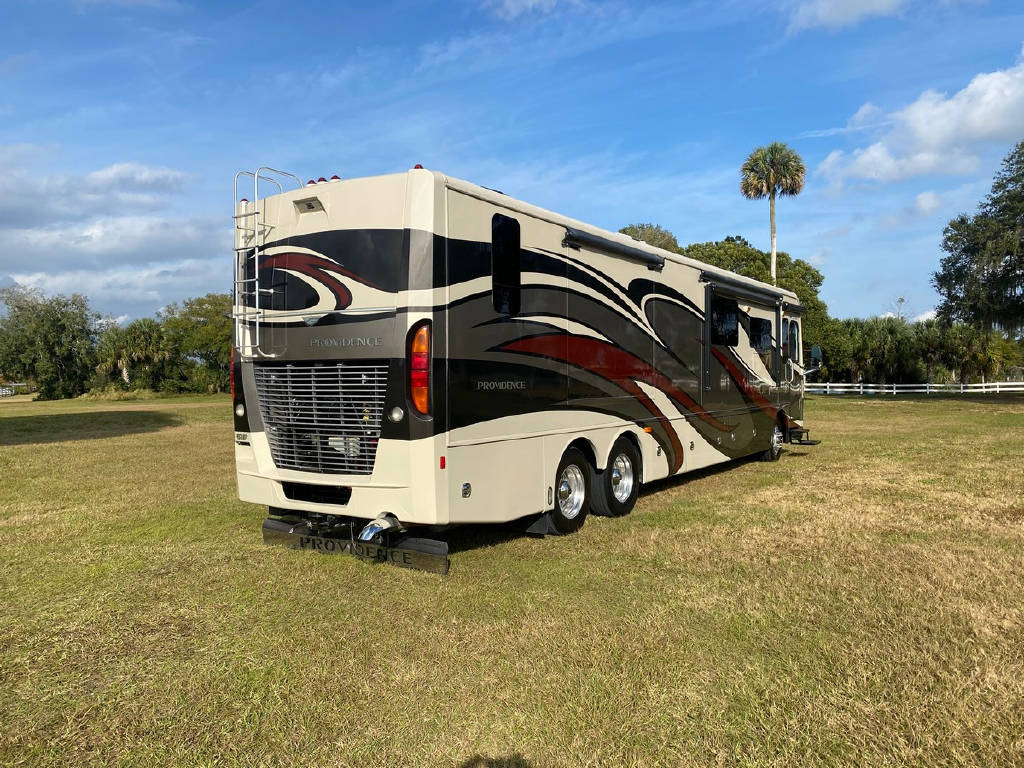 2015 Fleetwood Providence 42M 3 slide motorhome with 38,166 miles. This coach is on a Freightliner Chassis powered by a 450HP Cummins Diesel with Allison Transmission. This coach has everything including dual sofa recliner, sofa w/ air mattress, HD TVs, stackable washer dryer, Aquahot, Bath 1/2, King bed & more !!!!