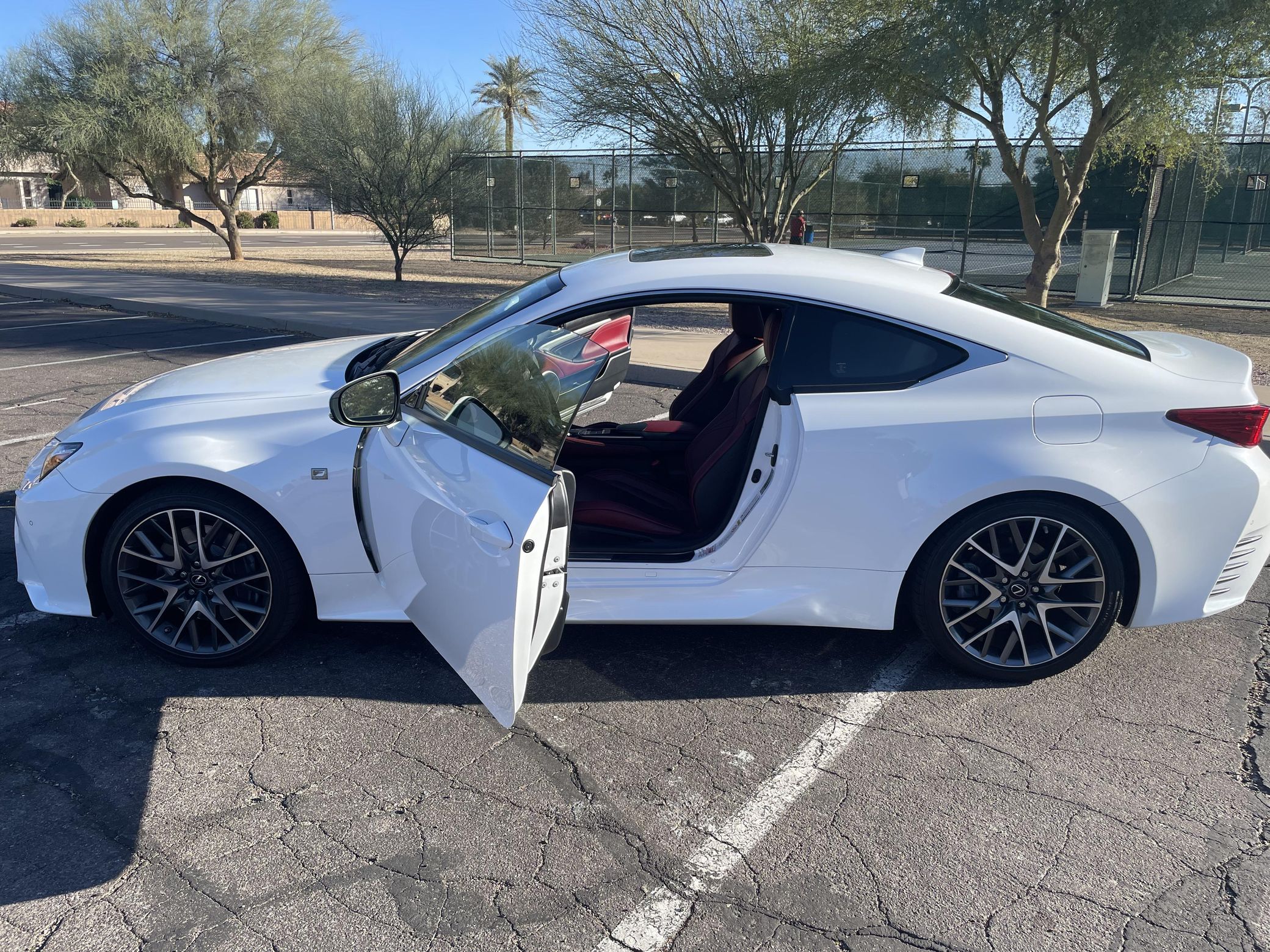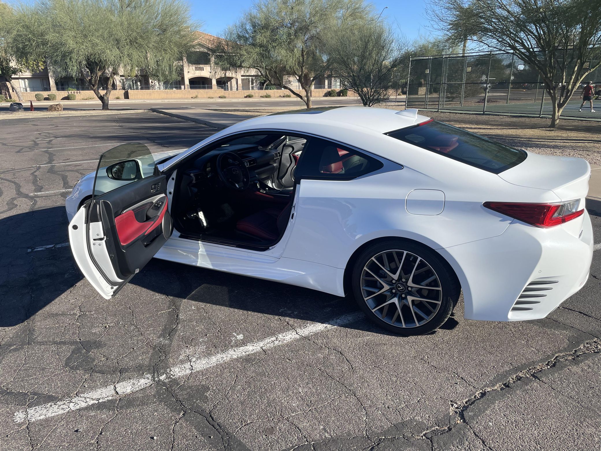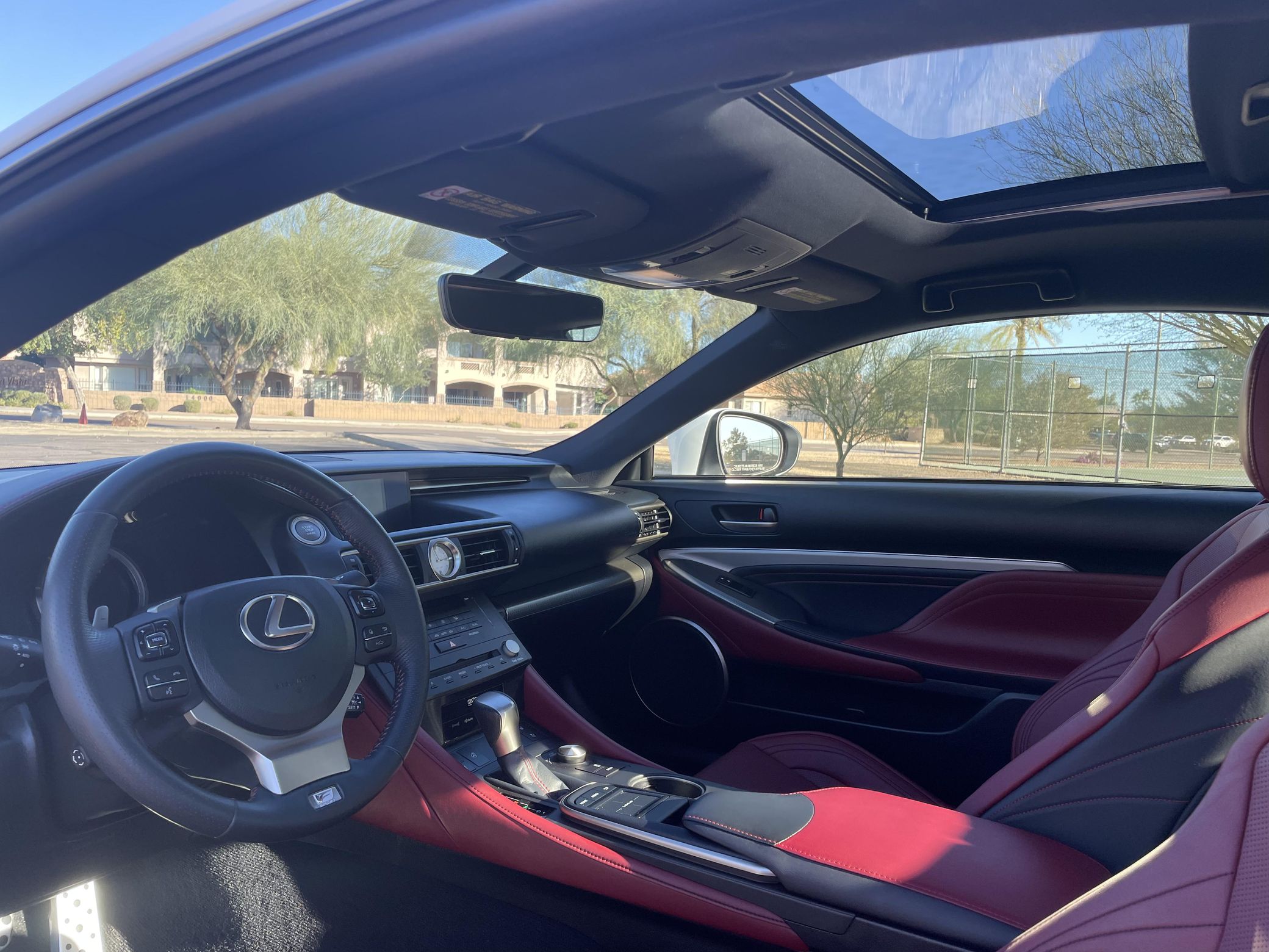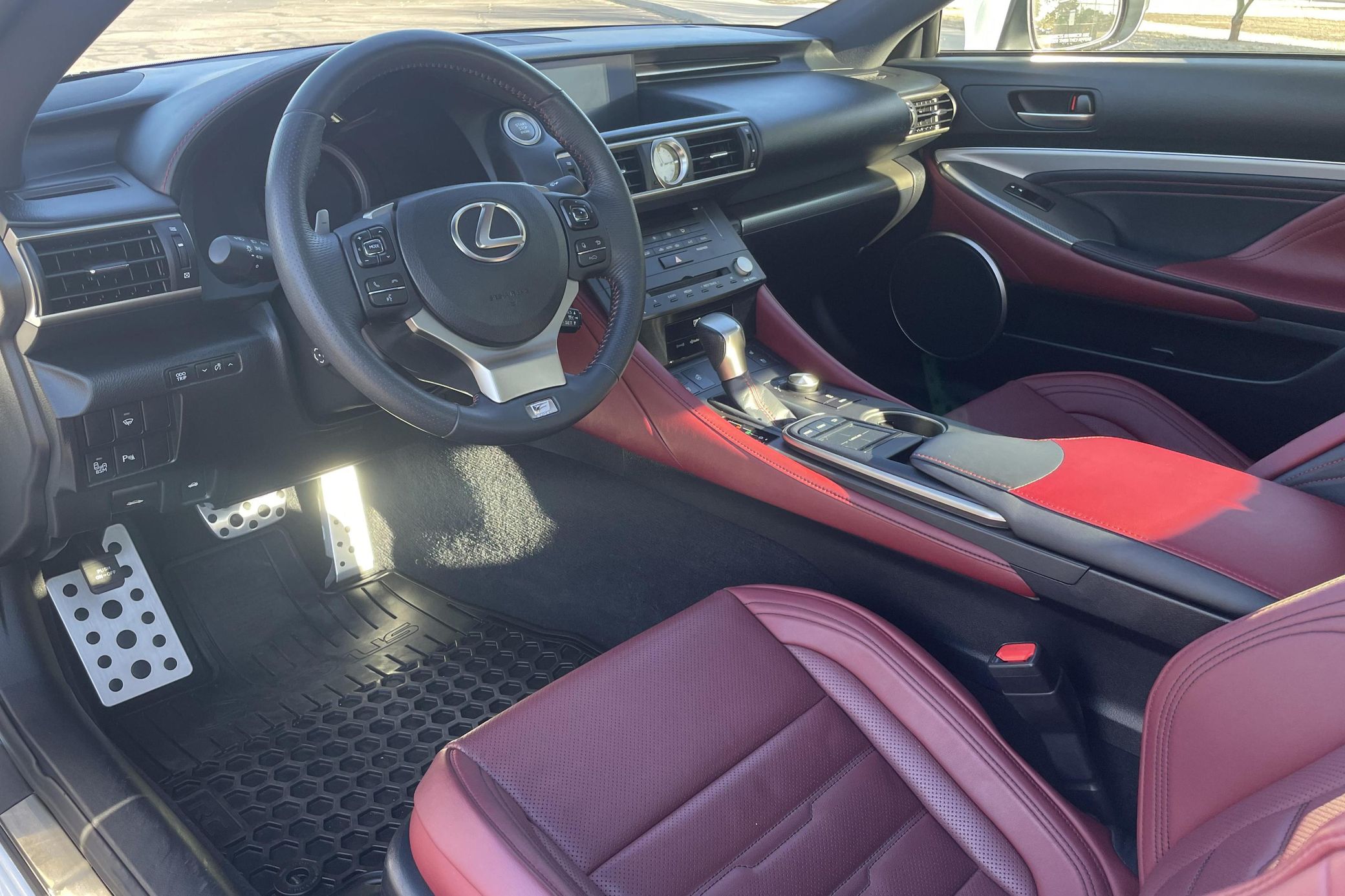THIS… is a 2015 Lexus RC 350, finished in Ultra White with an Rioja Red interior. The attached Carfax history report shows no accidents in this Lexus’ past. Factory equipment on this RC 350 includes the F Sport, Luxury, and Premium Packages, LED headlights, heated and ventilated front seats with driver-side memory, Mark Levinson audio system, blind-spot monitoring technology, intuitive park assist, rain-sensing wipers, and auto-dimming mirrors. The selling dealer reports no modifications. The RC is the two-door version of Lexus’ rear-wheel-drive IS sedan, and it went on sale for the 2015 model year. Meant to compete with the BMW 4 Series, the RC was offered with a 2.0-liter turbocharged inline-4, a 3.5-liter V6, or a 5.0-liter V8 in the range topping RC F. The RC was facelifted midway through 2018, and is still available in 2022.