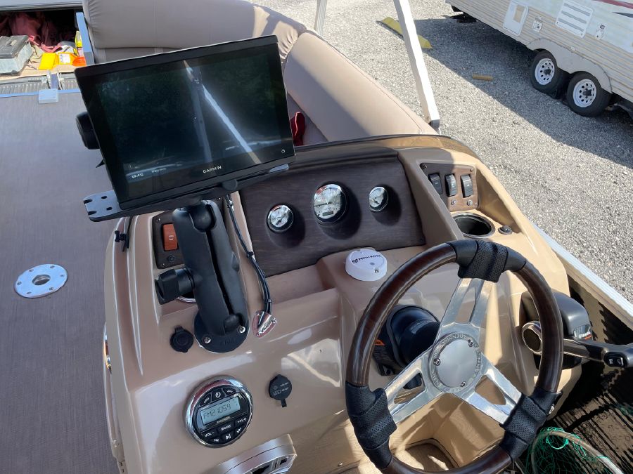 Being a Tritoon (3 hulls) keeps you floating higher in the water, and allows it to handle more horsepower than a typical pontoon, which makes it great for tubing, wake boarding, etc…