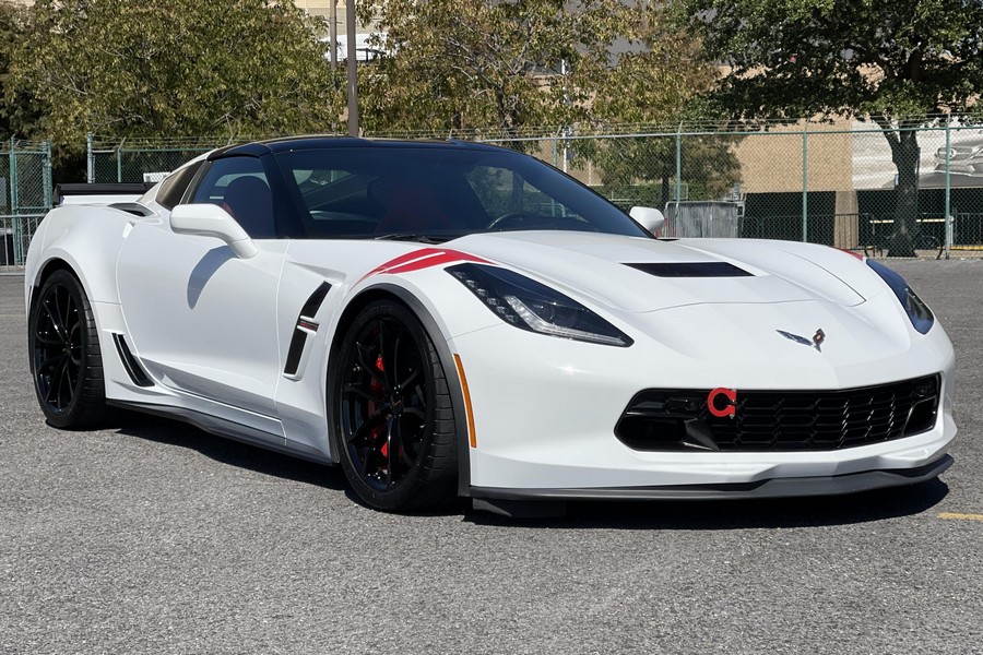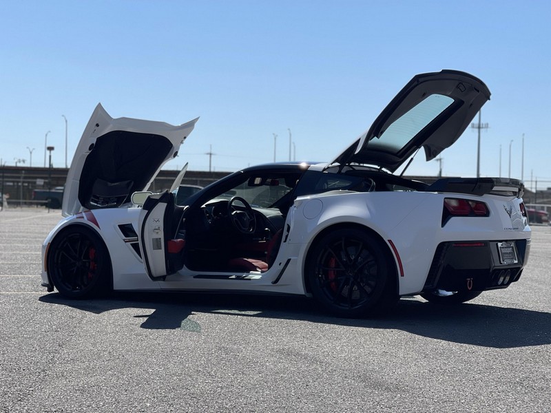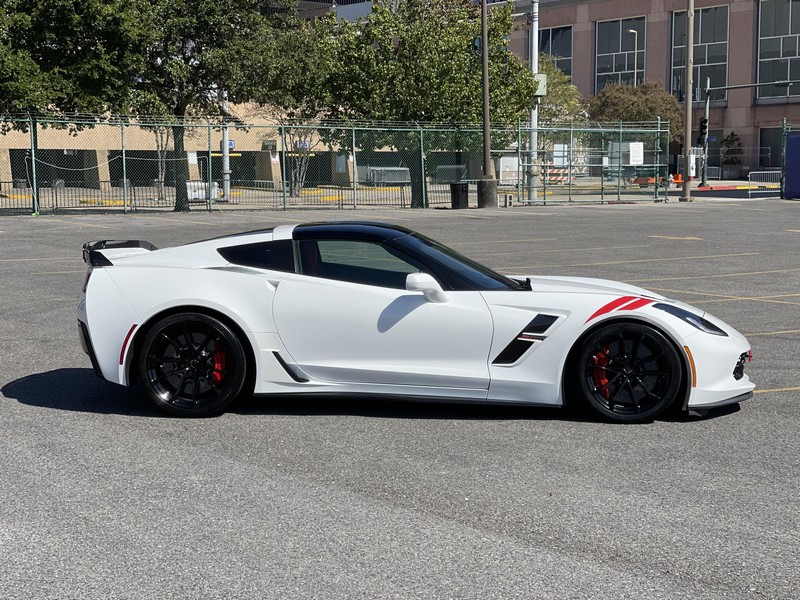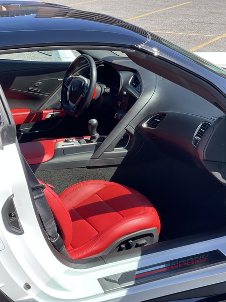 THIS… is a 2017 Chevrolet Corvette Grand Sport Coupe, finished in Arctic White with an Adrenaline Red interior. This Corvette features a desirable 7-speed manual transmission, and the odometer indicates about 10,600 miles. The attached Carfax vehicle history report shows no accidents in this Corvette’s past.