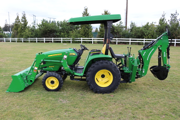 2017 John Deere 3025E, 33 hours, has a D160 loader, Woods BH75-1 backhoe and John Deere canopy attached. Transmission – Hydro, Front Axle – MFWD, Loader.