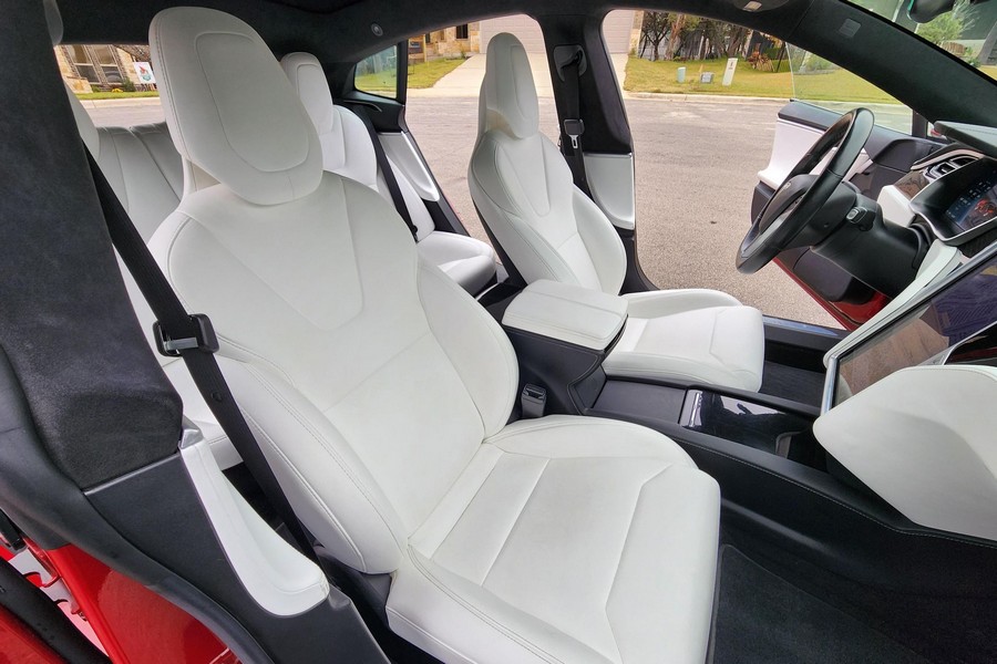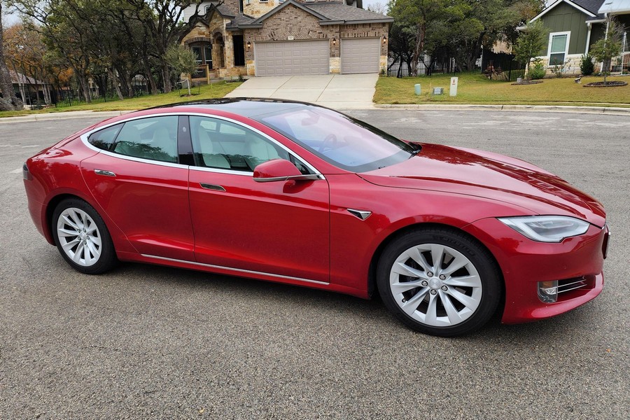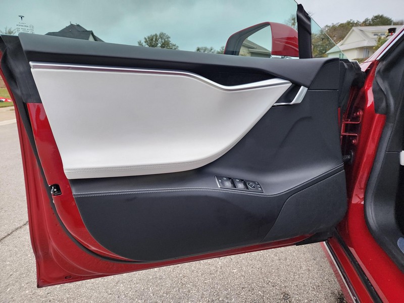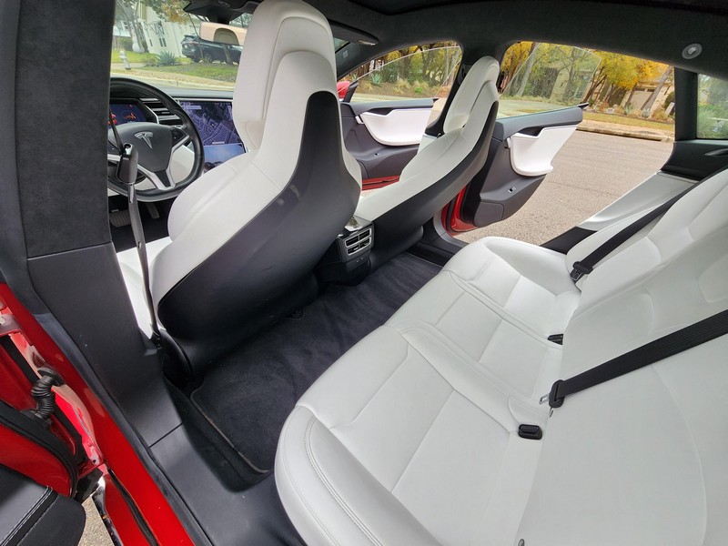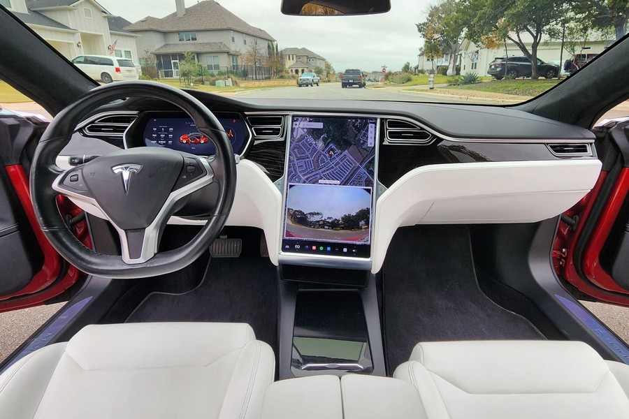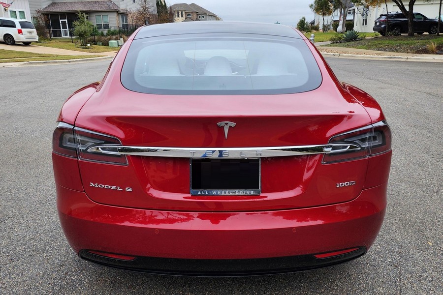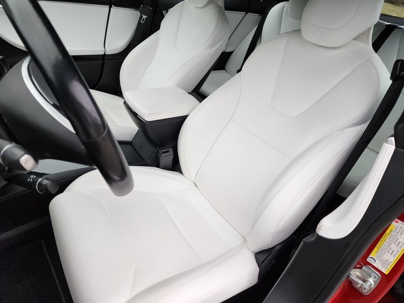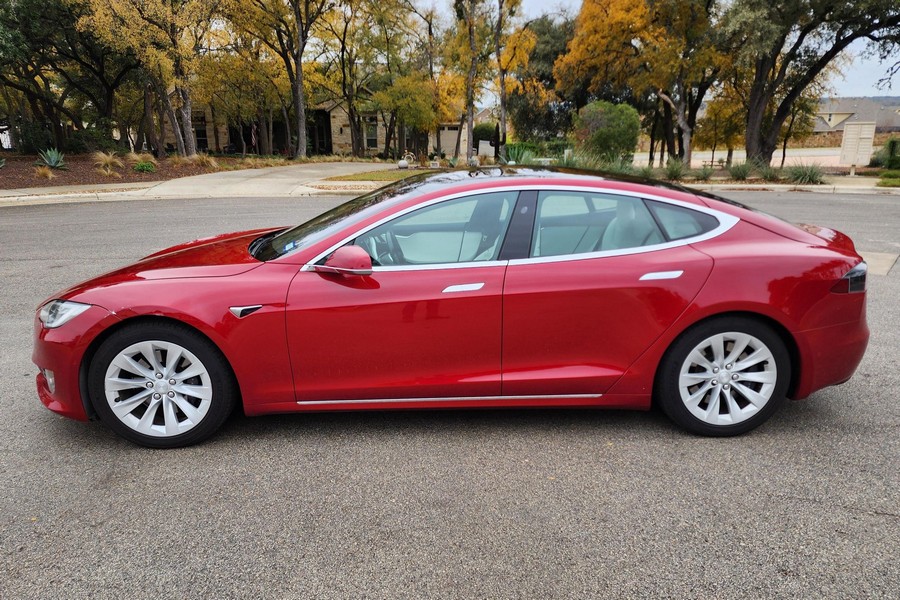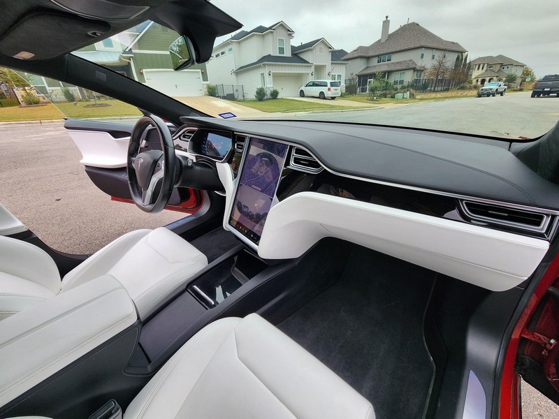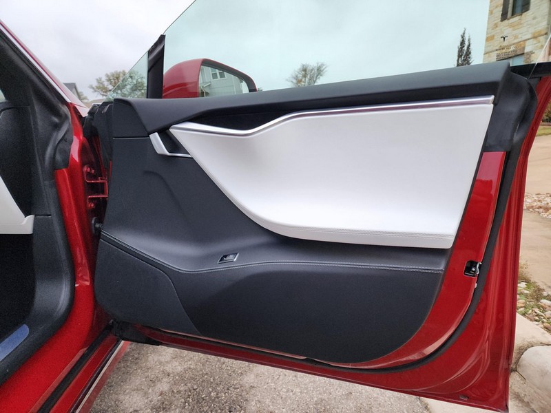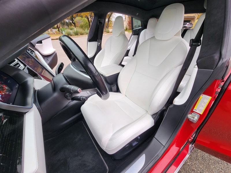 THIS… is a 2017 Tesla Model S 100D, finished in red with an Ultra White interior. It also shows that this Model S is a one-owner car that has been Texas-owned since new. Factory equipment includes the Subzero Weather Package, 19-inch “Slipstream” wheels, an air suspension system, a glass roof, dark ash wood interior trim, heated and power-adjustable front seats, a 17-inch touchscreen for the infotainment system, the Ultra High Fidelity Sound Package, and Enhanced Autopilot technology. The only modification reported by the seller is a 64-gigabyte MMC daughterboard. Power comes from a pair of electric motors, which draw electricity from a 100-kilowatt-hour lithium-ion battery pack to zap the four wheels with 523 horsepower and 487 lb-ft of torque, according to third-party estimates. In 2017, the EPA gave the 100D variant a maximum driving range rating of 335 miles.