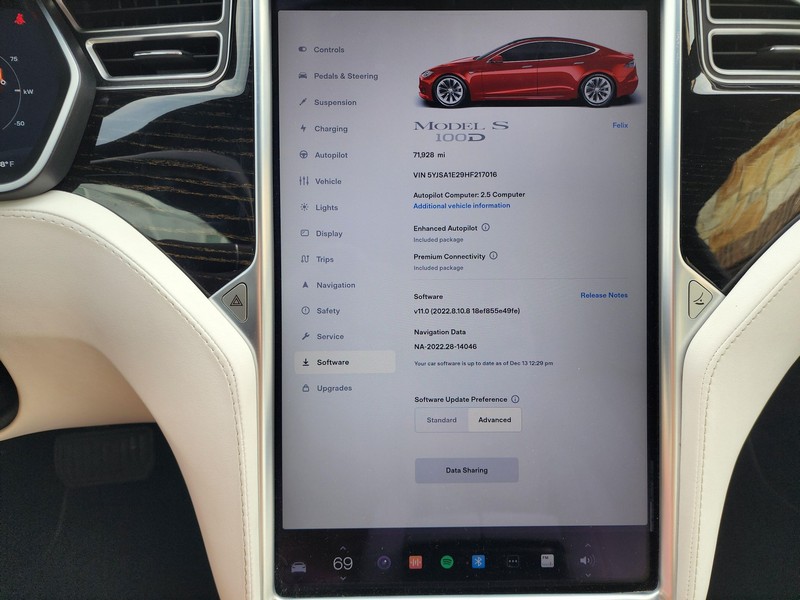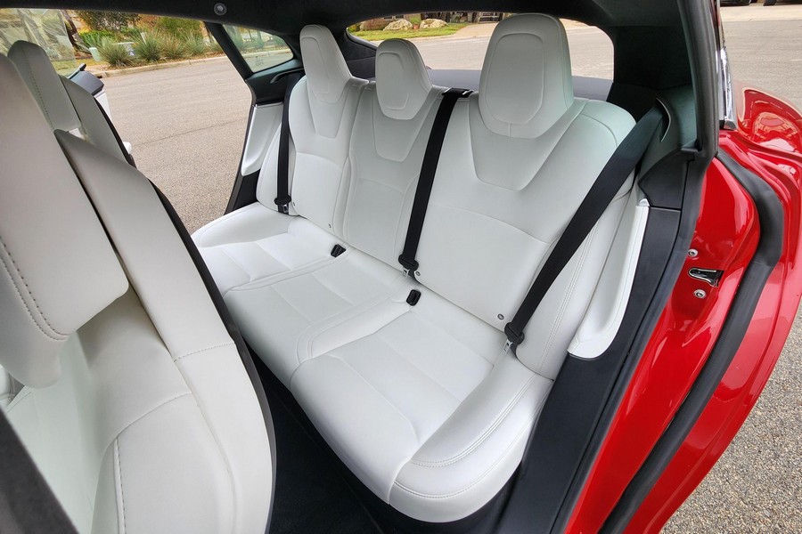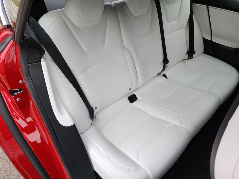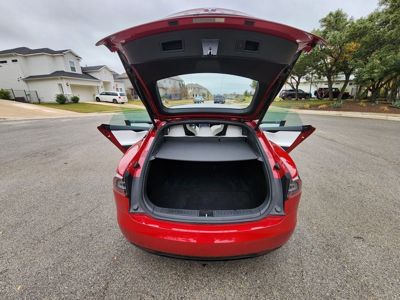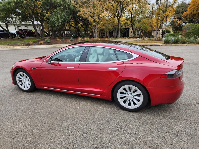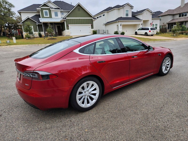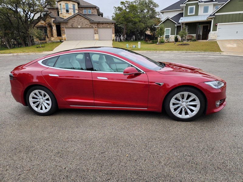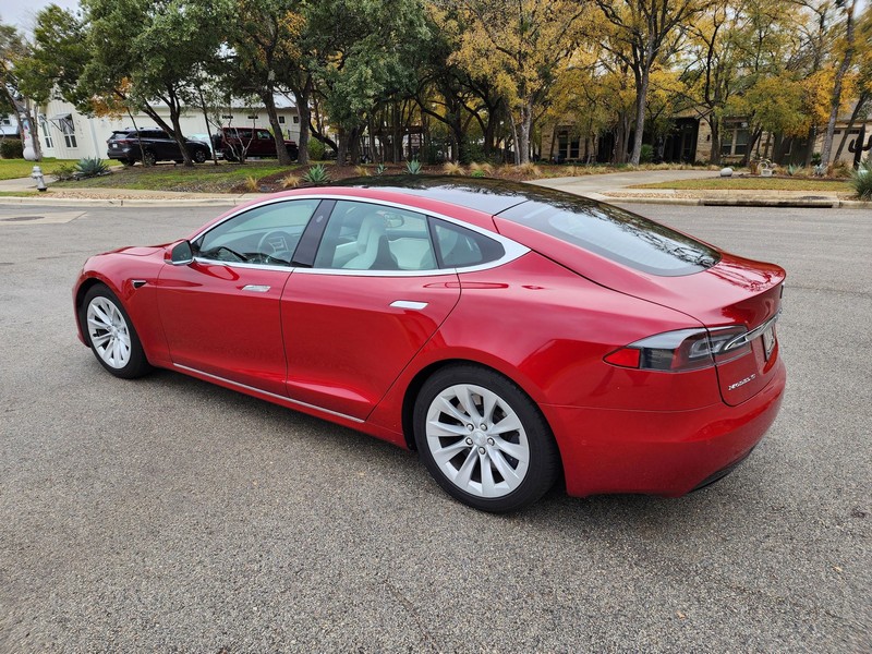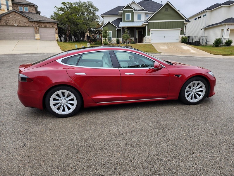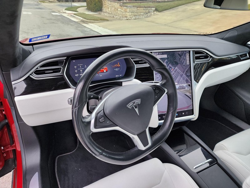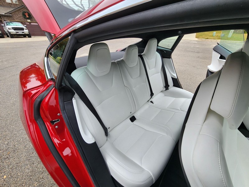 THIS… is a 2017 Tesla Model S 100D, finished in red with an Ultra White interior. It also shows that this Model S is a one-owner car that has been Texas-owned since new. Factory equipment includes the Subzero Weather Package, 19-inch “Slipstream” wheels, an air suspension system, a glass roof, dark ash wood interior trim, heated and power-adjustable front seats, a 17-inch touchscreen for the infotainment system, the Ultra High Fidelity Sound Package, and Enhanced Autopilot technology. The only modification reported by the seller is a 64-gigabyte MMC daughterboard. Power comes from a pair of electric motors, which draw electricity from a 100-kilowatt-hour lithium-ion battery pack to zap the four wheels with 523 horsepower and 487 lb-ft of torque, according to third-party estimates. In 2017, the EPA gave the 100D variant a maximum driving range rating of 335 miles.