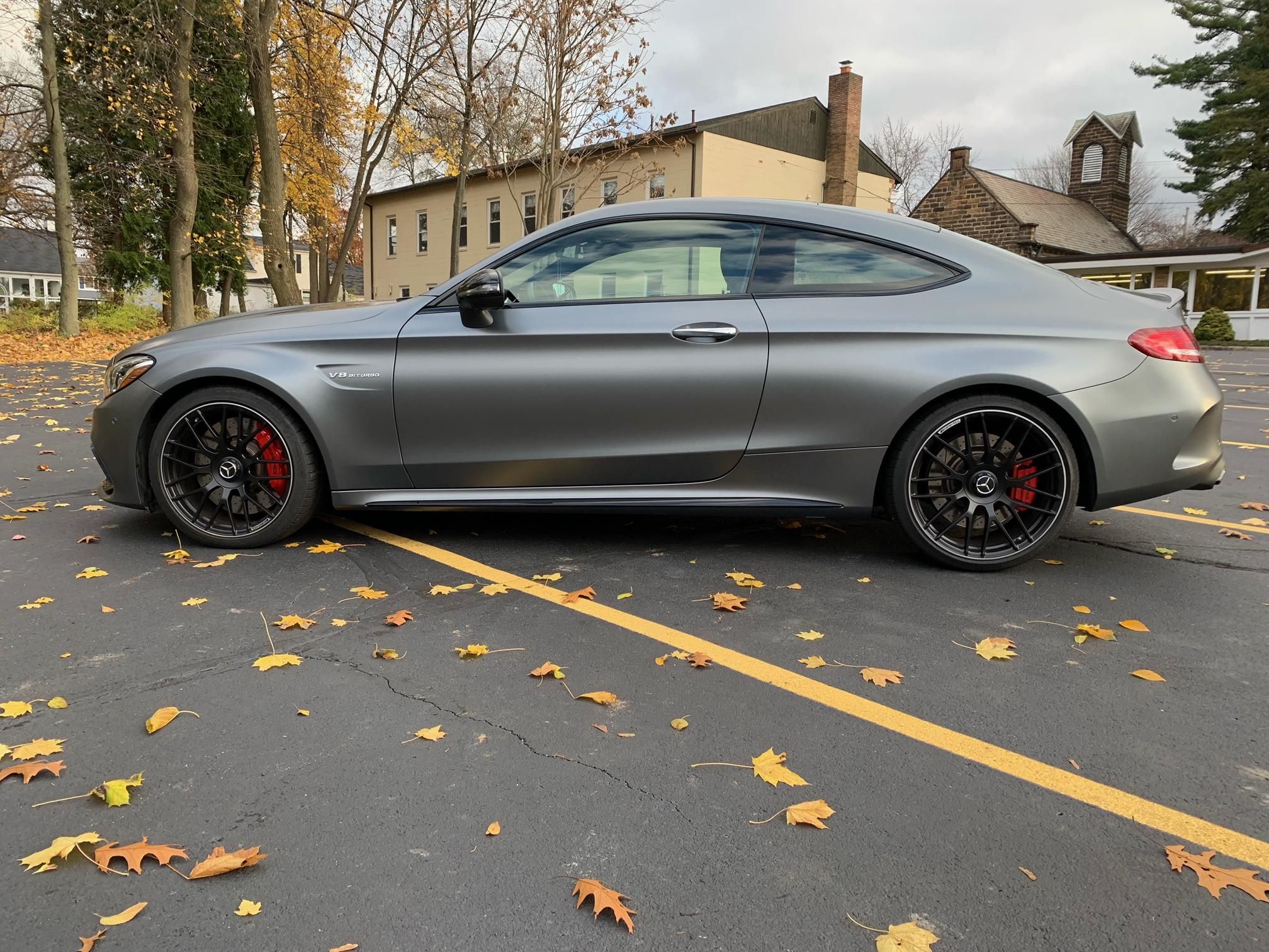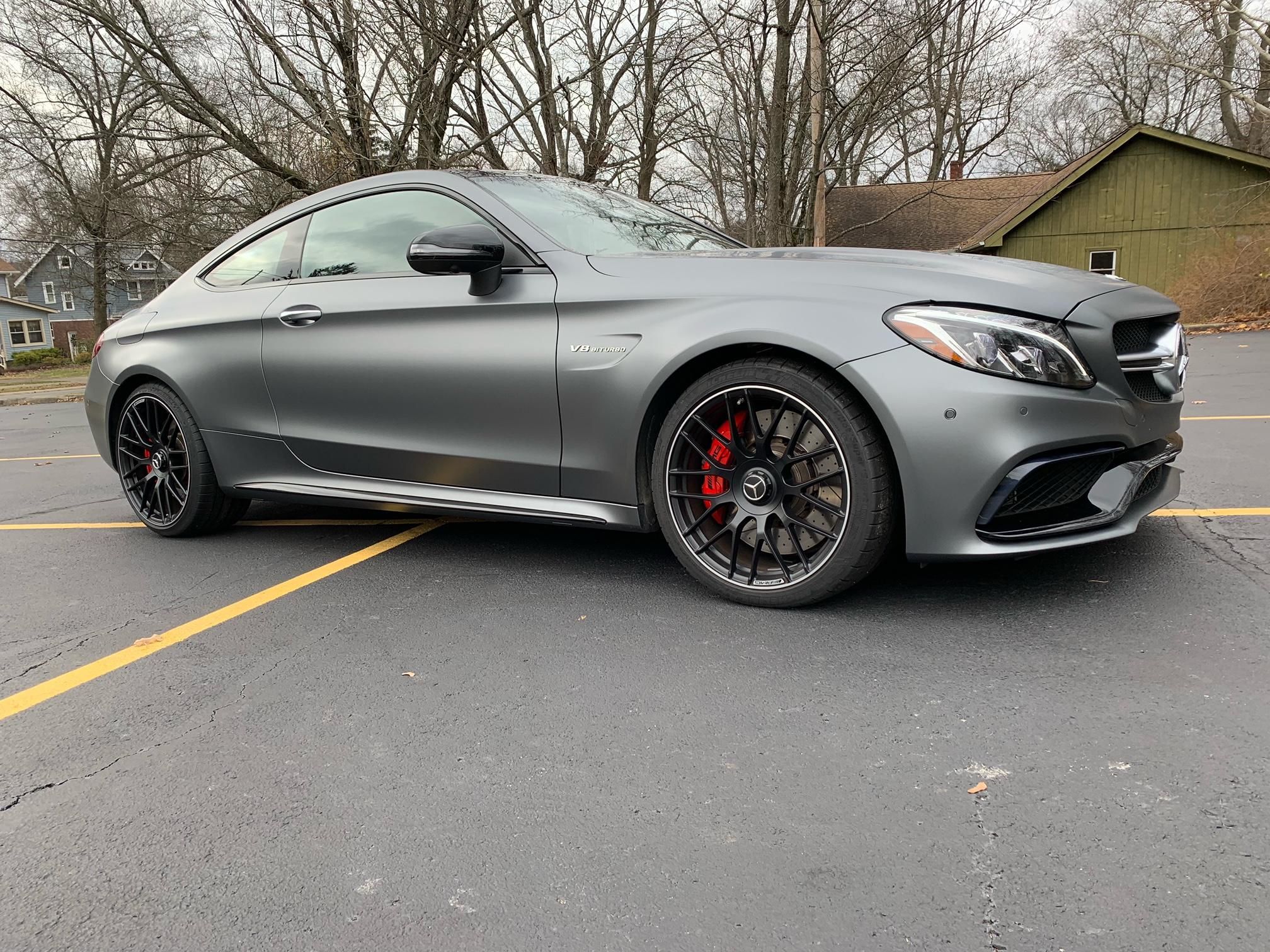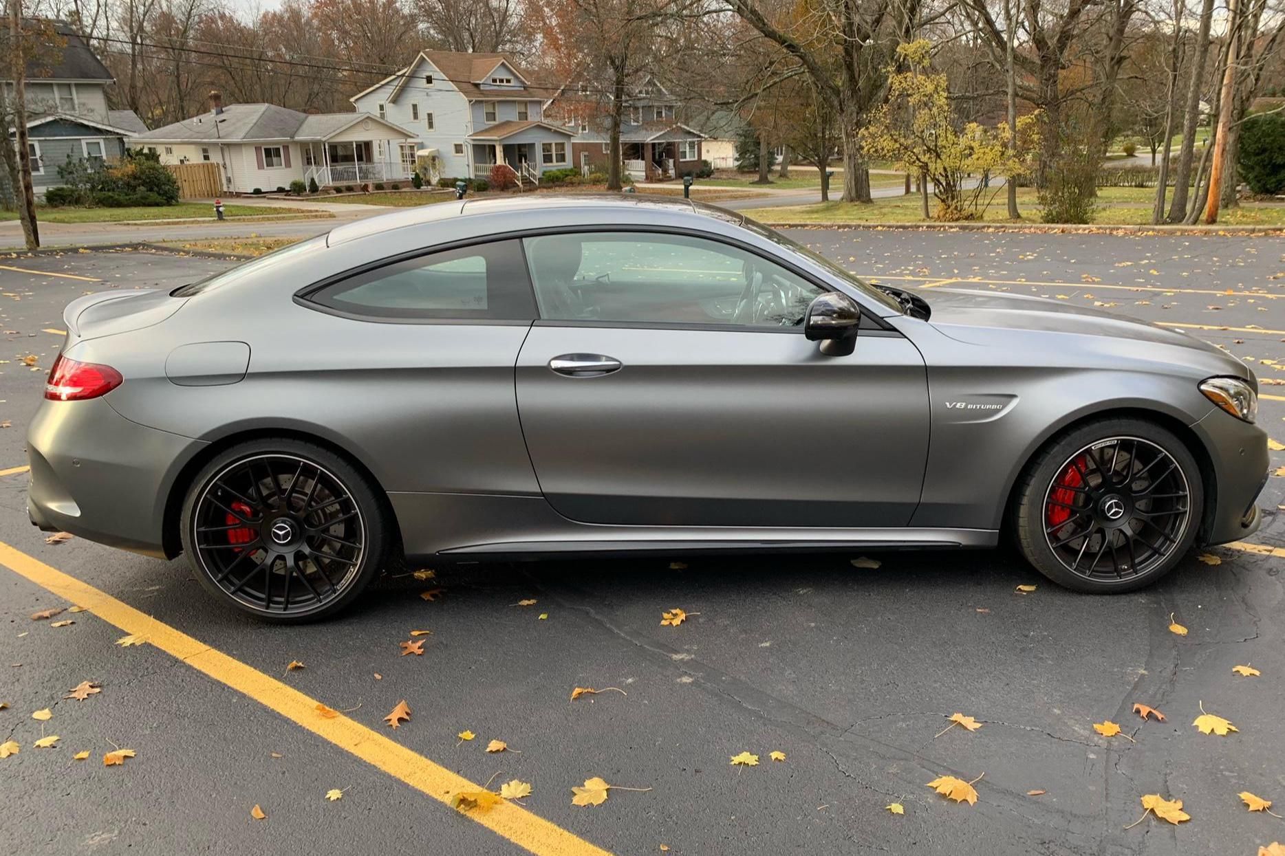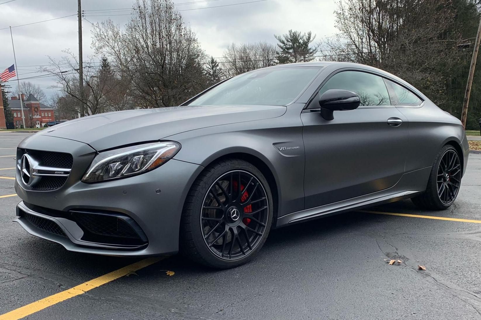 THIS… is a 2018 Mercedes-AMG C63 S Coupe finished in Designo Selenite Grey Magno with a Red Pepper/Black interior. No accidents or mileage discrepancies in this C63’s past. It also confirms that this is a one-owner car. It comes equipped with the Advanced Lighting Package (adaptive LED headlights, ambient lighting, AMG illuminated door sills), the Multimedia Package (COMAND infotainment with 8.4-inch display, touchpad and voice control, navigation system), the AMG Night Package (body and window trim in black, black chrome-plated exhaust tailpipes), the Advanced Parking Assist Package (Parktronic with Active Parking Assist, Surround View system), and more as detailed below. The seller reports no modifications. Mercedes-AMG introduced the “W205”-based C63 for the 2015 model year, shortly after it morphed into a sub-brand within Mercedes-Benz. Offered as a sedan and as a coupe, the C63 surfed the downsizing wave sweeping across the industry by trading displacement for forced induction, yet it was quicker and sharper to drive than its predecessor. Production ended in 2021, and Mercedes-AMG has confirmed that it won’t build another V8-powered C63. Power comes from a 4.0-liter twin-turbocharged V8, rated at 503 horsepower and 516 lb-ft of torque. Output is sent to the rear wheels via a 7-speed automatic transmission.