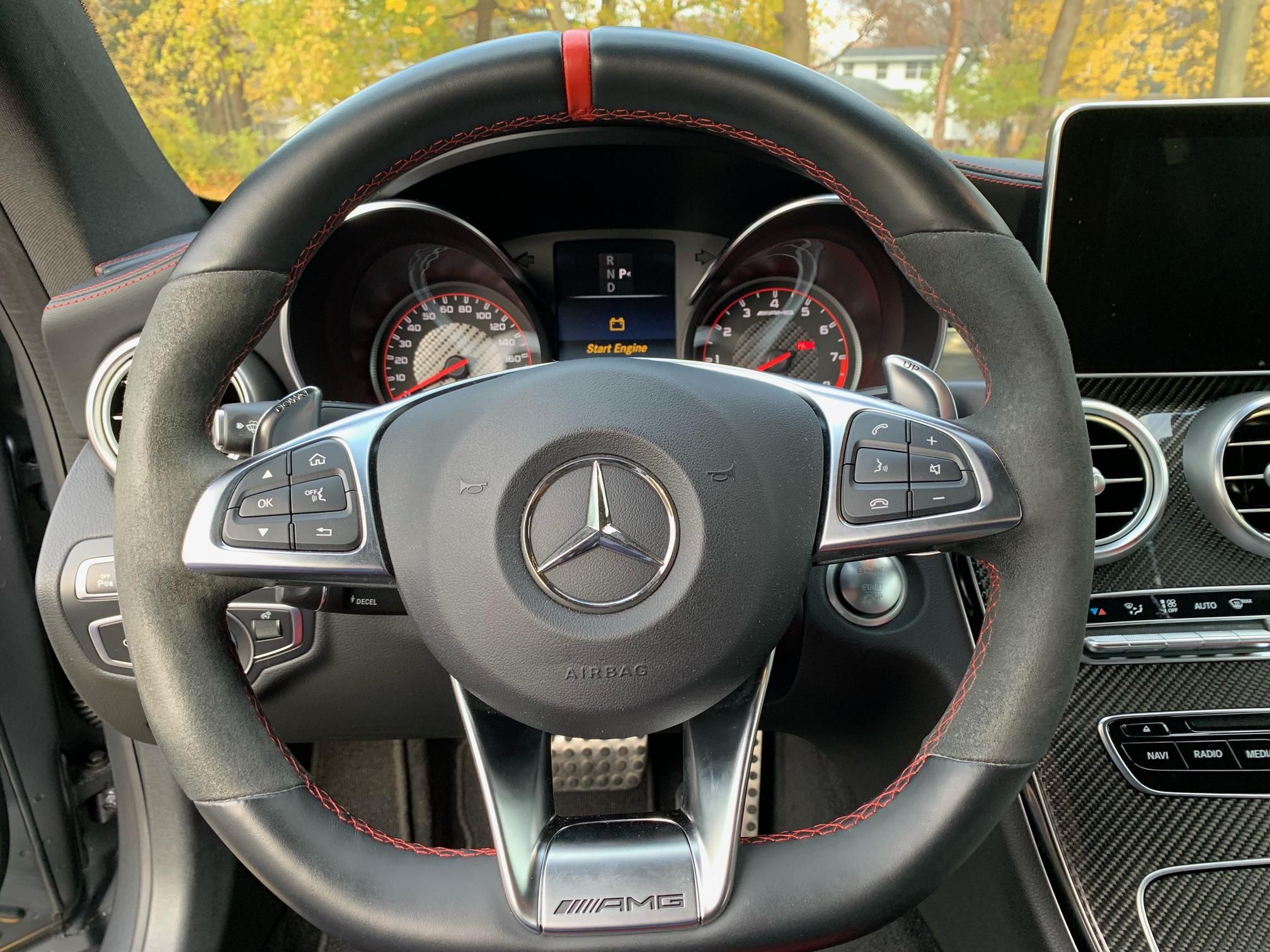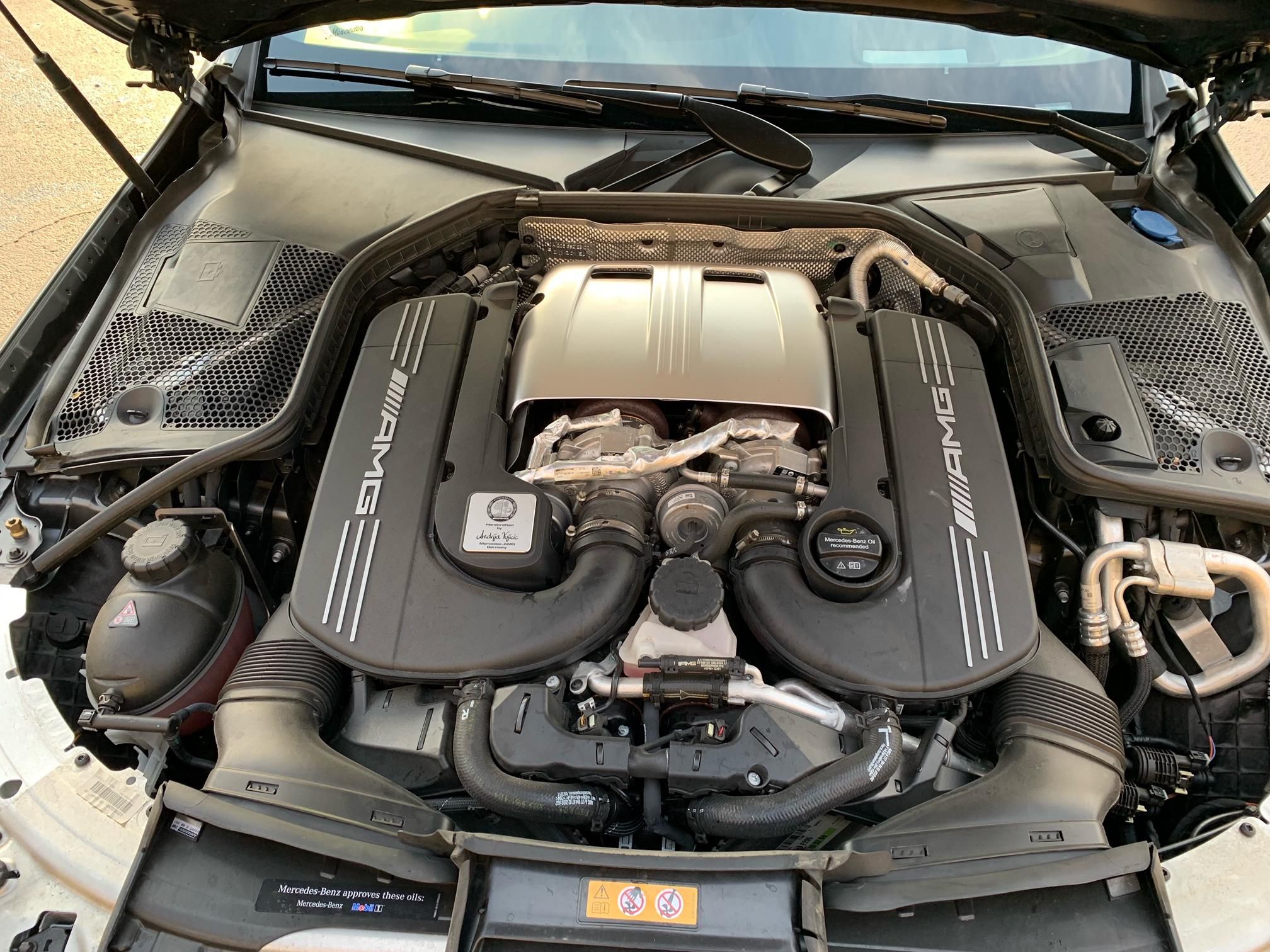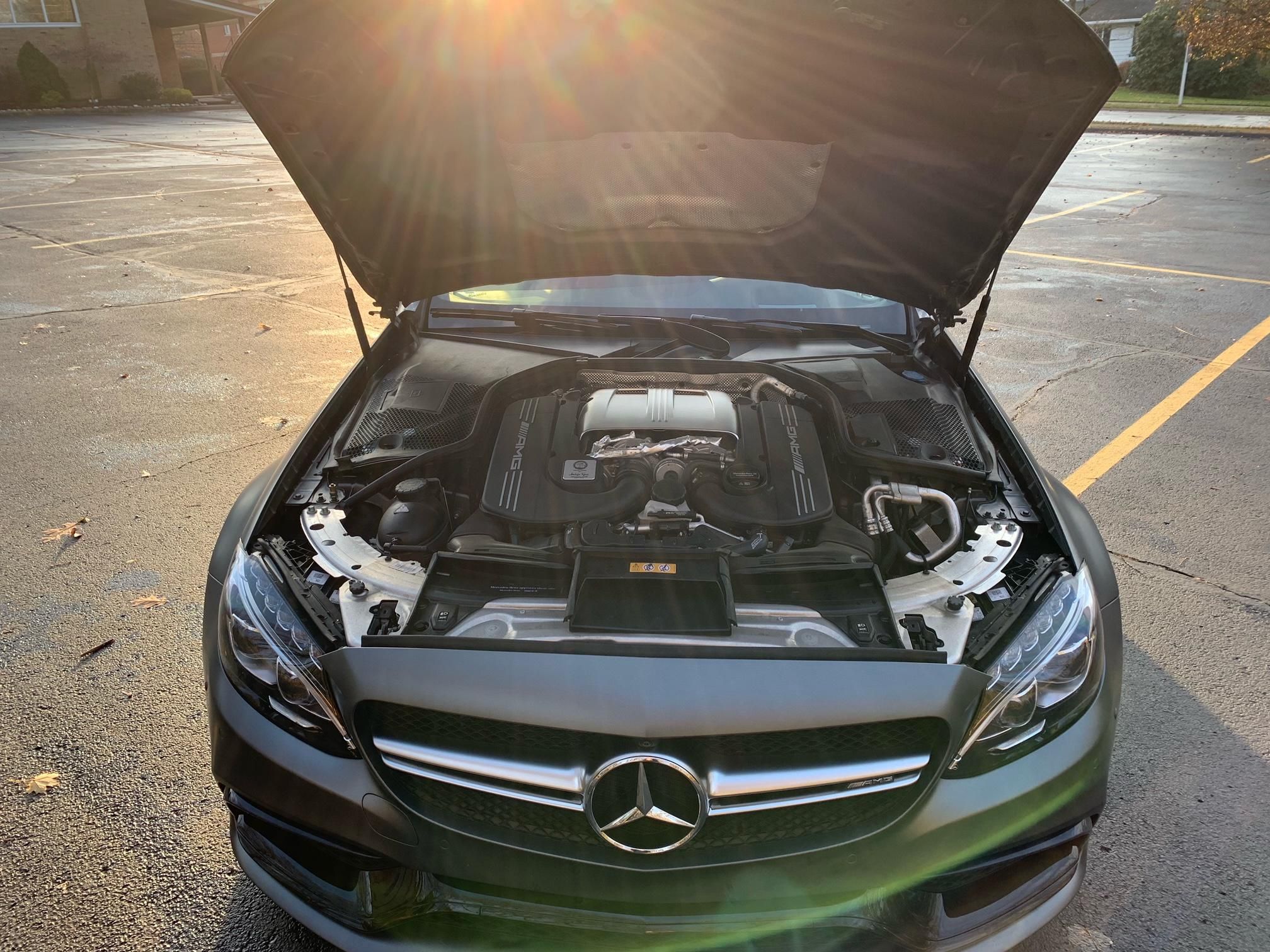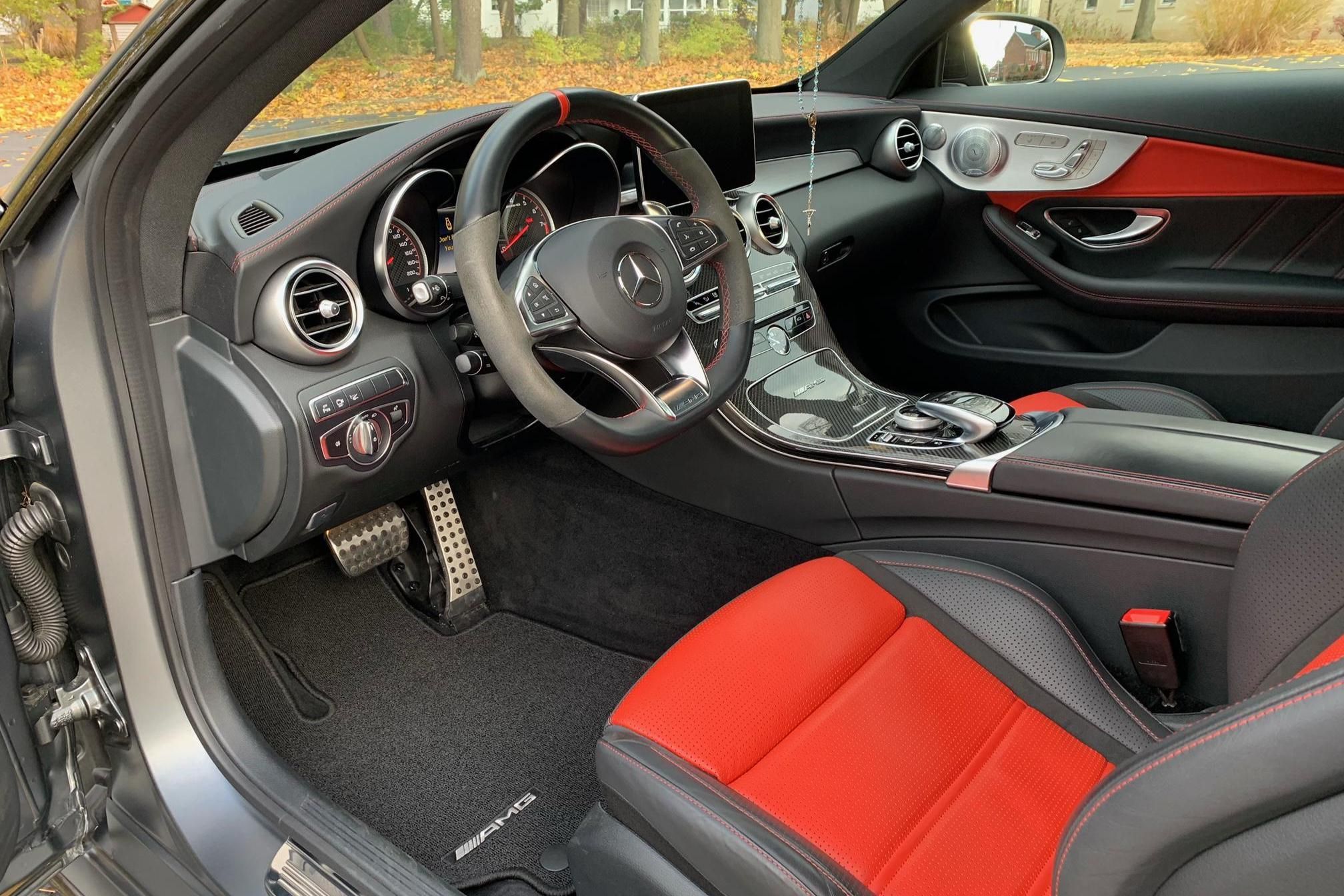 THIS… is a 2018 Mercedes-AMG C63 S Coupe finished in Designo Selenite Grey Magno with a Red Pepper/Black interior. No accidents or mileage discrepancies in this C63’s past. It also confirms that this is a one-owner car. It comes equipped with the Advanced Lighting Package (adaptive LED headlights, ambient lighting, AMG illuminated door sills), the Multimedia Package (COMAND infotainment with 8.4-inch display, touchpad and voice control, navigation system), the AMG Night Package (body and window trim in black, black chrome-plated exhaust tailpipes), the Advanced Parking Assist Package (Parktronic with Active Parking Assist, Surround View system), and more as detailed below. The seller reports no modifications. Mercedes-AMG introduced the “W205”-based C63 for the 2015 model year, shortly after it morphed into a sub-brand within Mercedes-Benz. Offered as a sedan and as a coupe, the C63 surfed the downsizing wave sweeping across the industry by trading displacement for forced induction, yet it was quicker and sharper to drive than its predecessor. Production ended in 2021, and Mercedes-AMG has confirmed that it won’t build another V8-powered C63. Power comes from a 4.0-liter twin-turbocharged V8, rated at 503 horsepower and 516 lb-ft of torque. Output is sent to the rear wheels via a 7-speed automatic transmission.