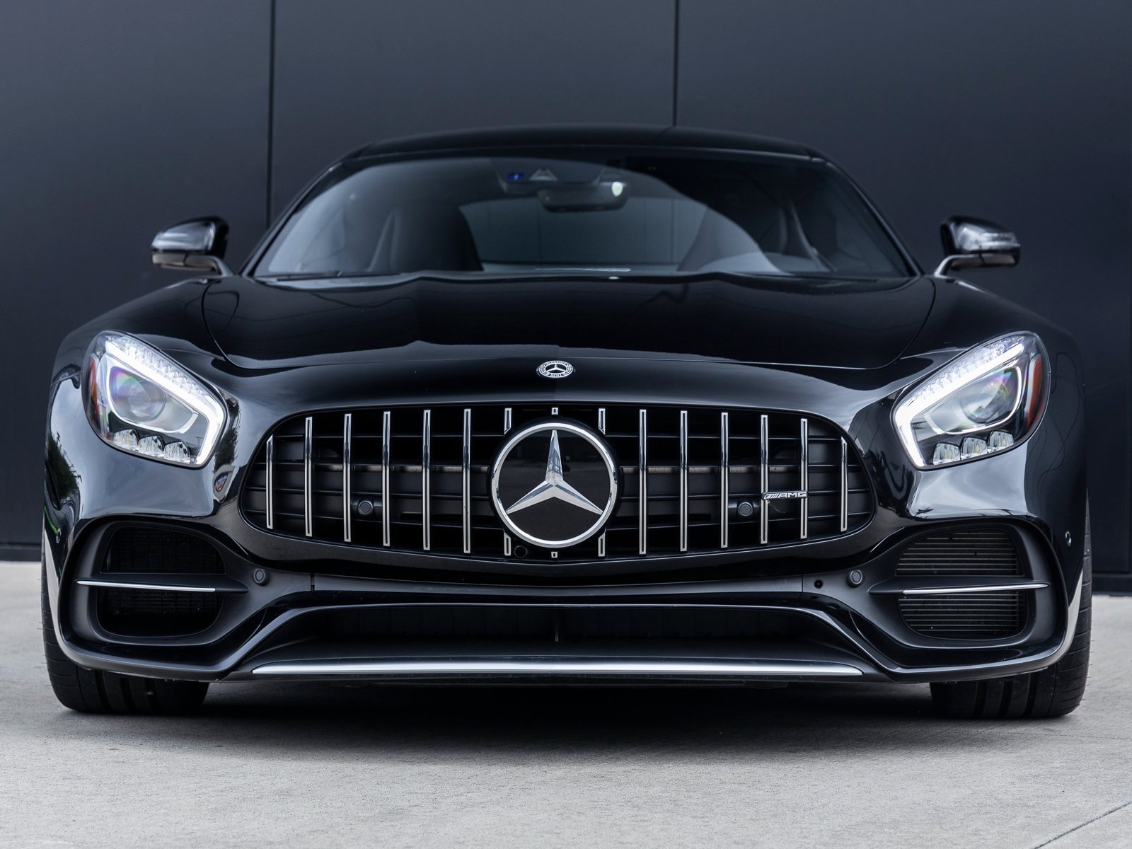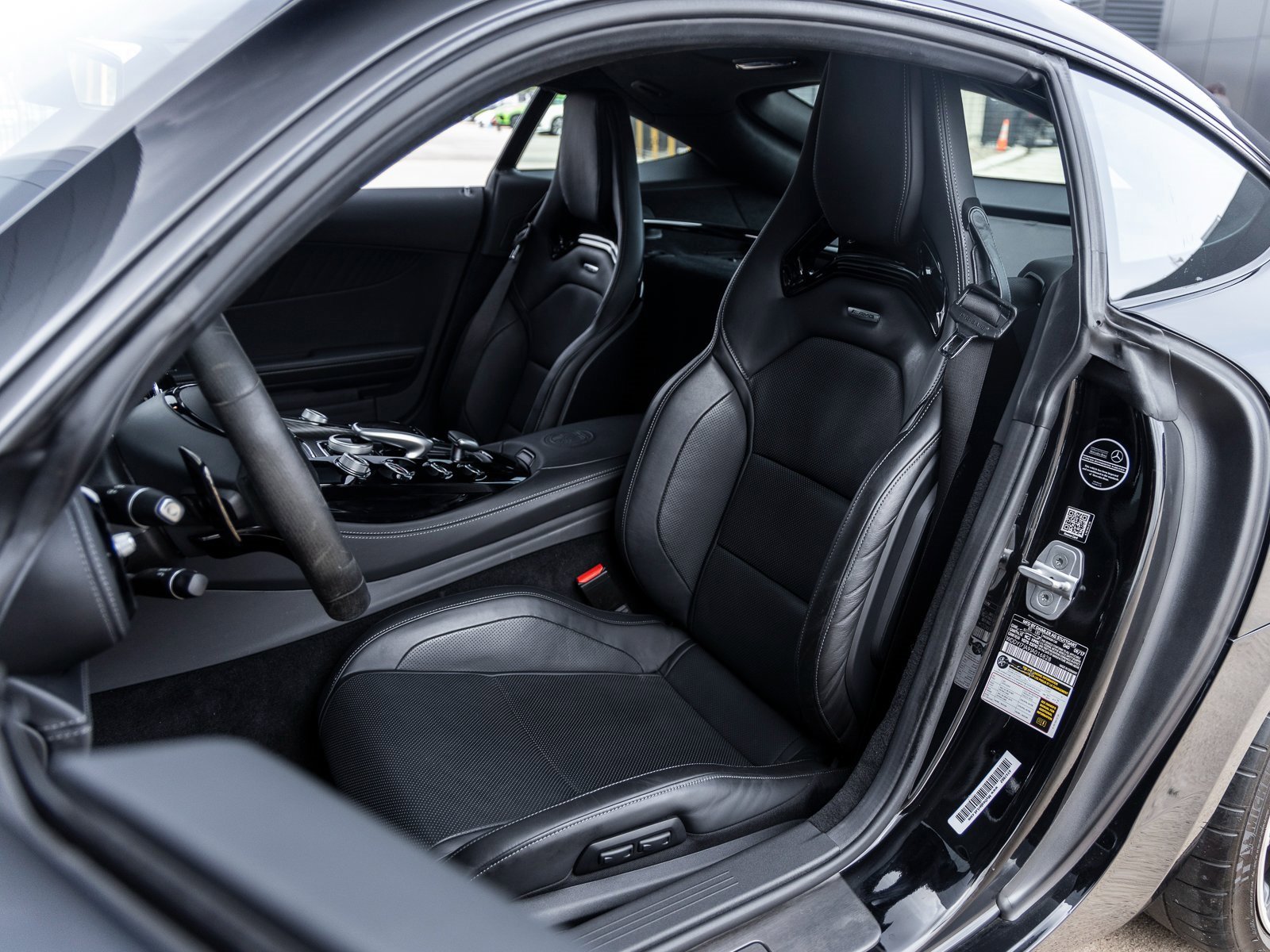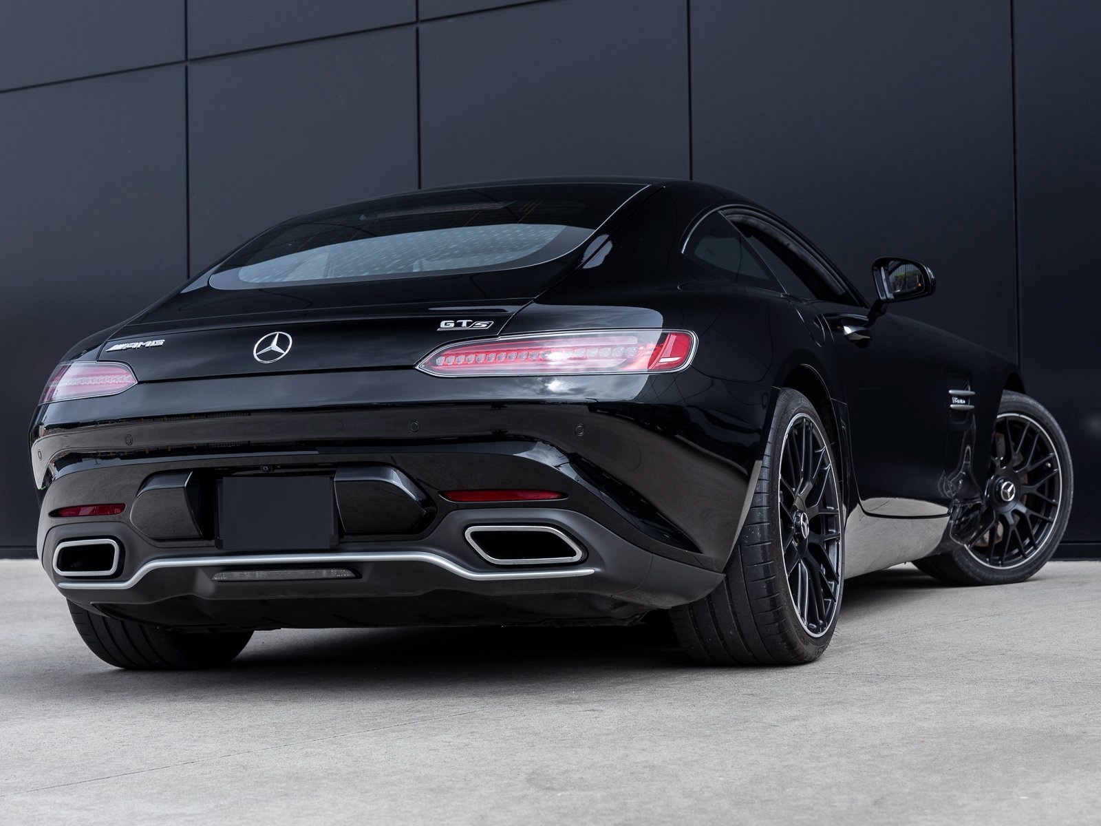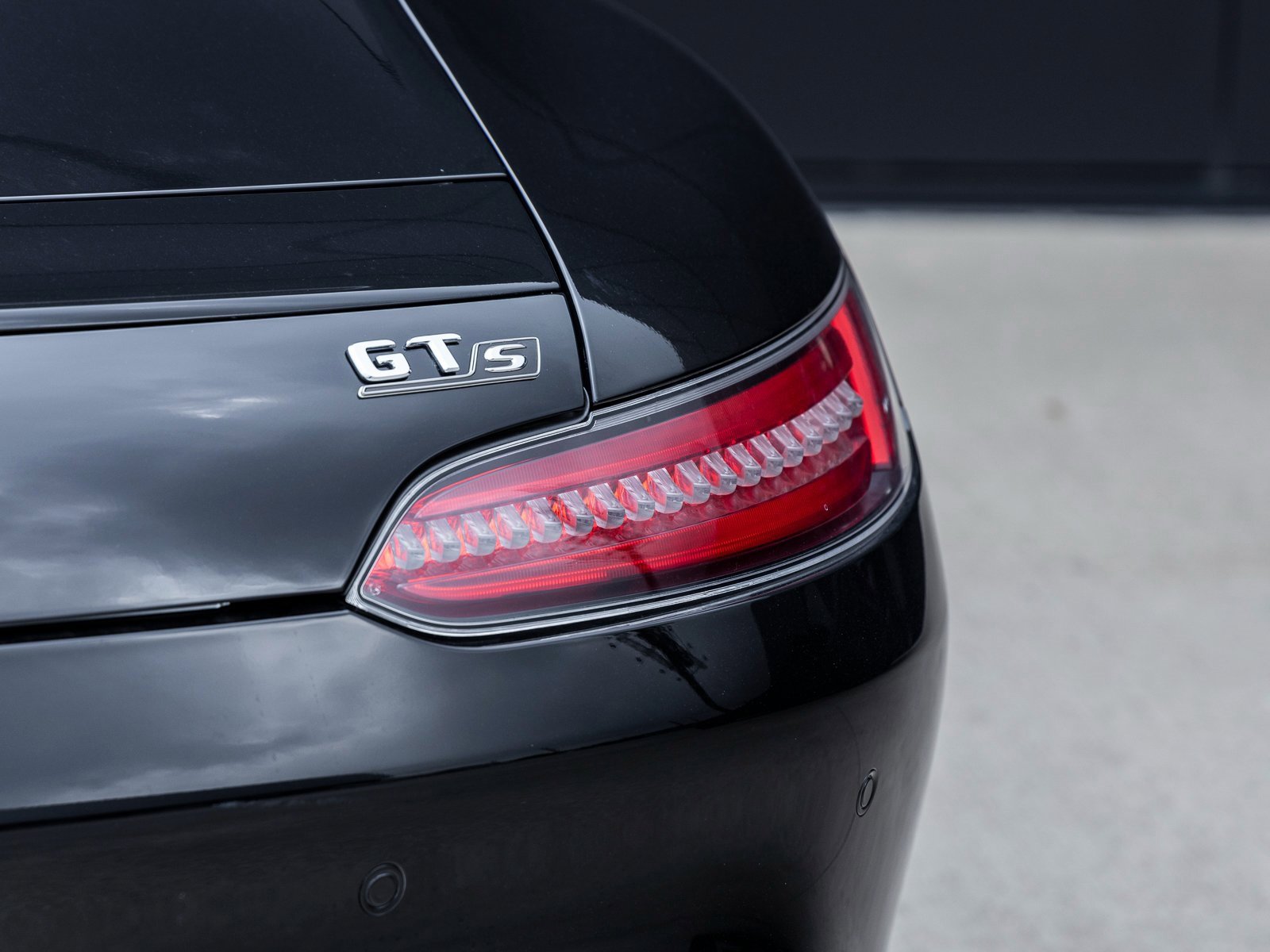 2018 Mercedes-Benz AMG® GT S in Black over a Black interior with 9,731 miles. The AMG® GT S is powered by a 4.0L Twin-Turbocharged V8 engine producing 515 hp and 494 lb-ft of torque through a 7-Speed Automatic Transmission.