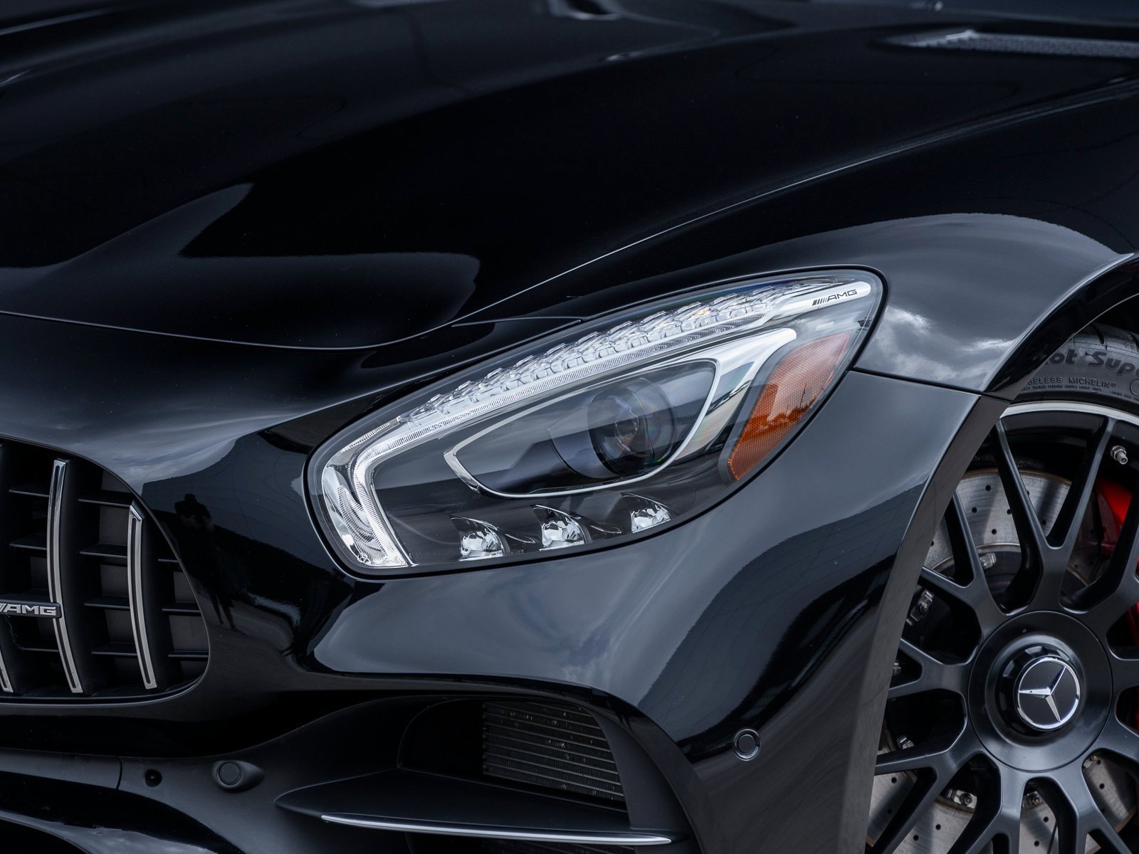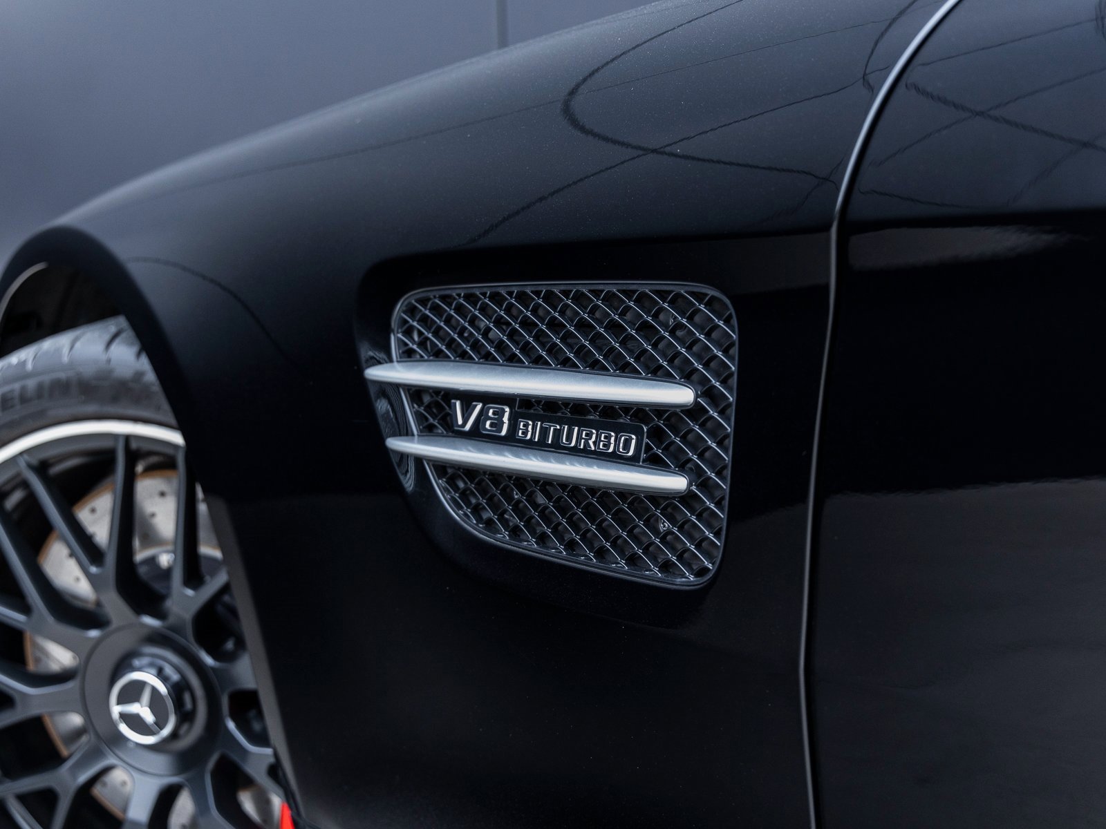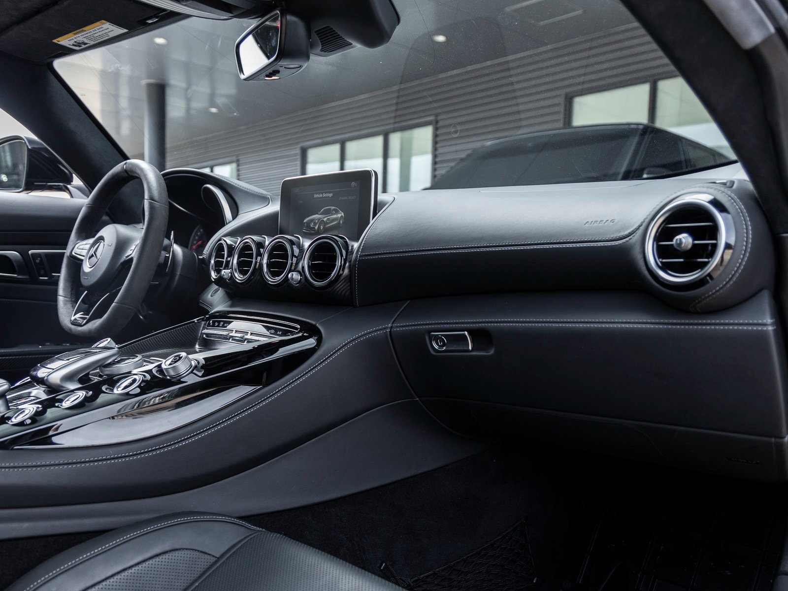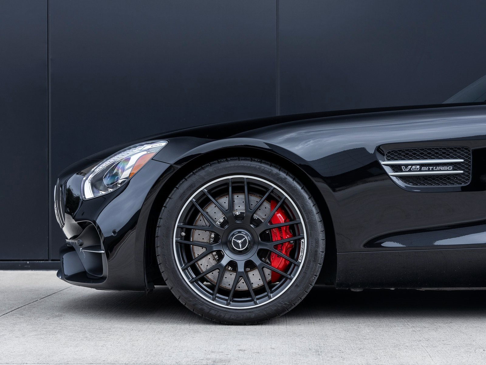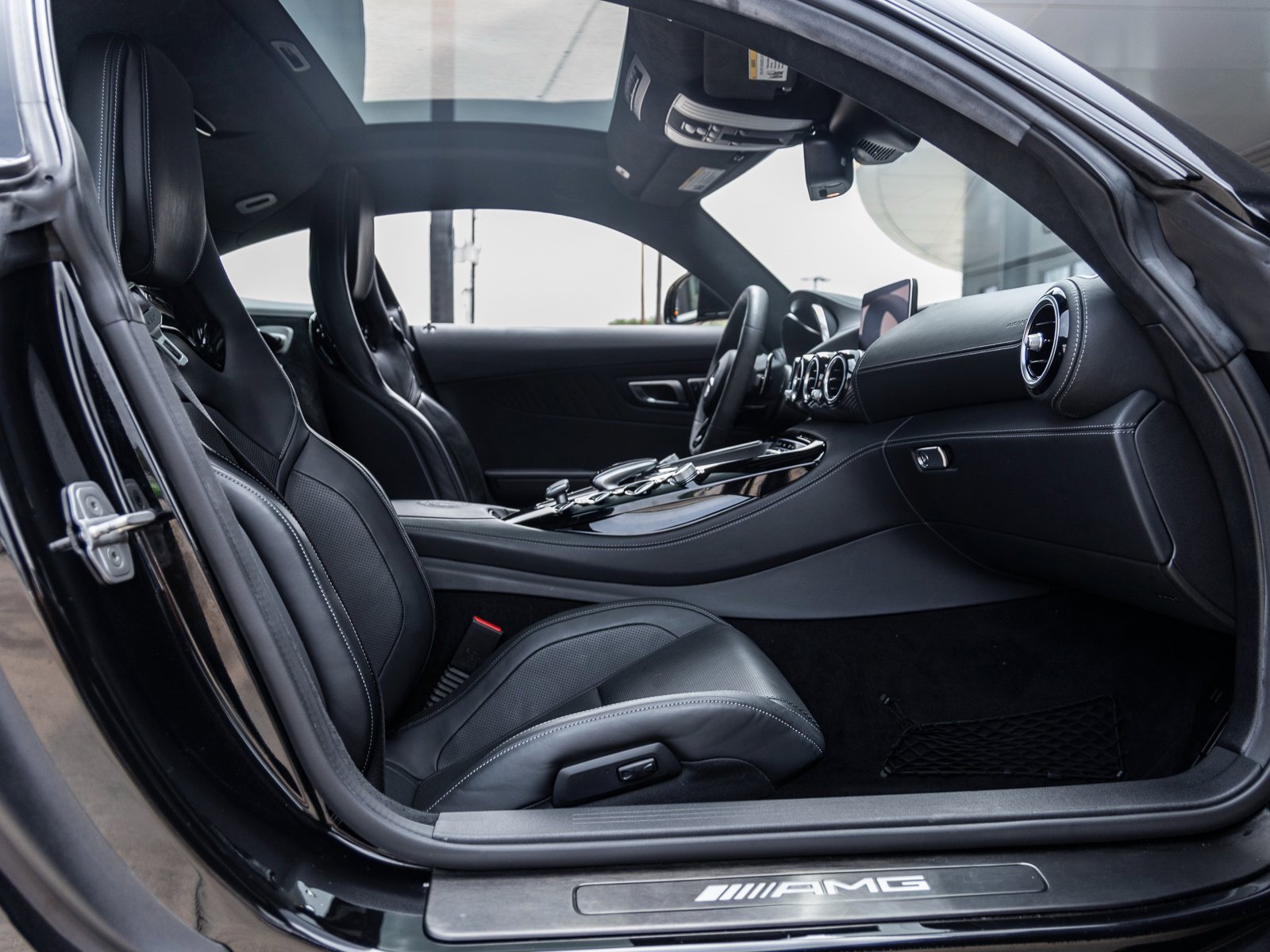 2018 Mercedes-Benz AMG® GT S in Black over a Black interior with 9,731 miles. The AMG® GT S is powered by a 4.0L Twin-Turbocharged V8 engine producing 515 hp and 494 lb-ft of torque through a 7-Speed Automatic Transmission.