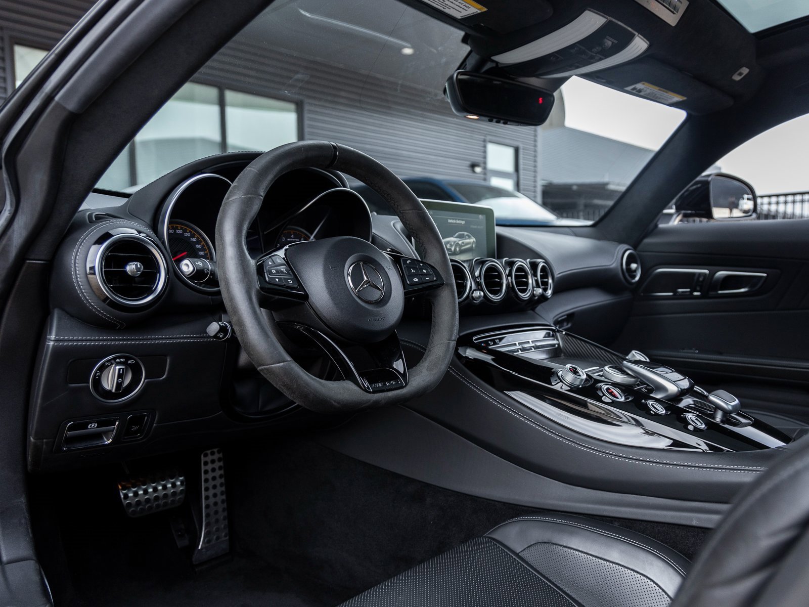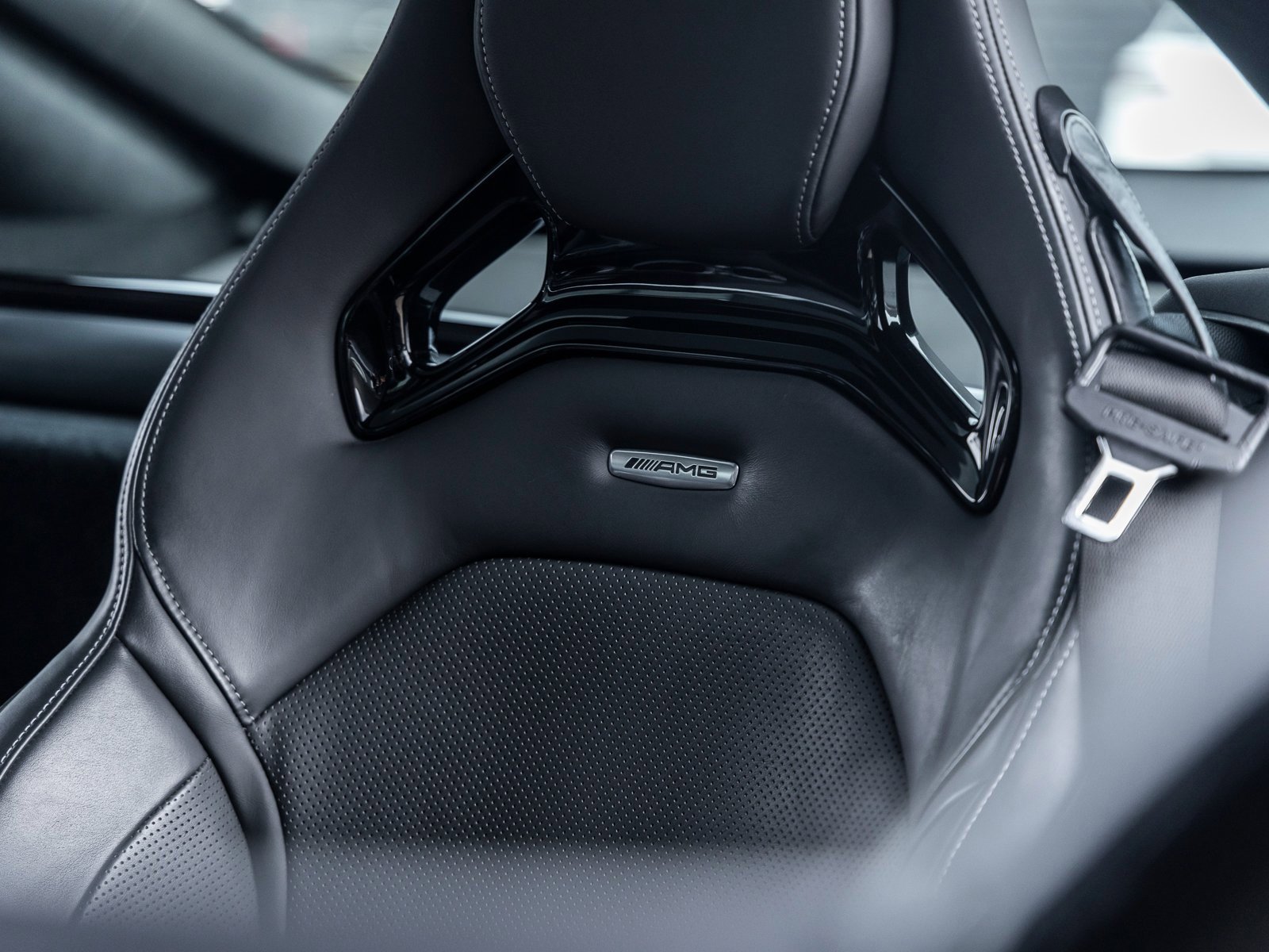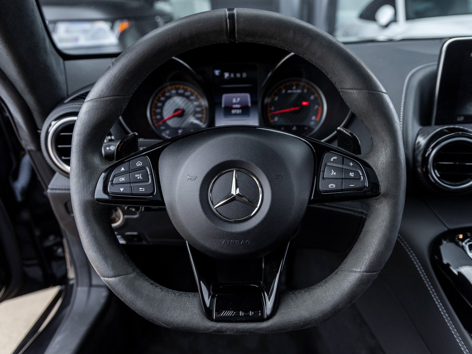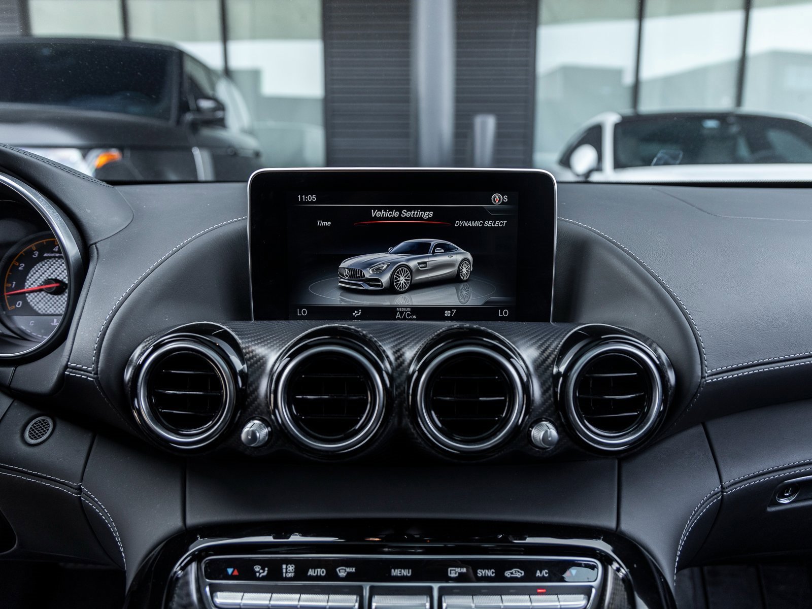 2018 Mercedes-Benz AMG® GT S in Black over a Black interior with 9,731 miles. The AMG® GT S is powered by a 4.0L Twin-Turbocharged V8 engine producing 515 hp and 494 lb-ft of torque through a 7-Speed Automatic Transmission.