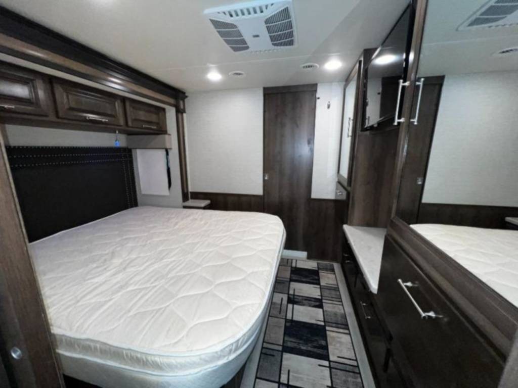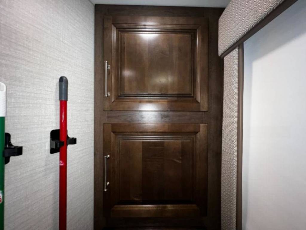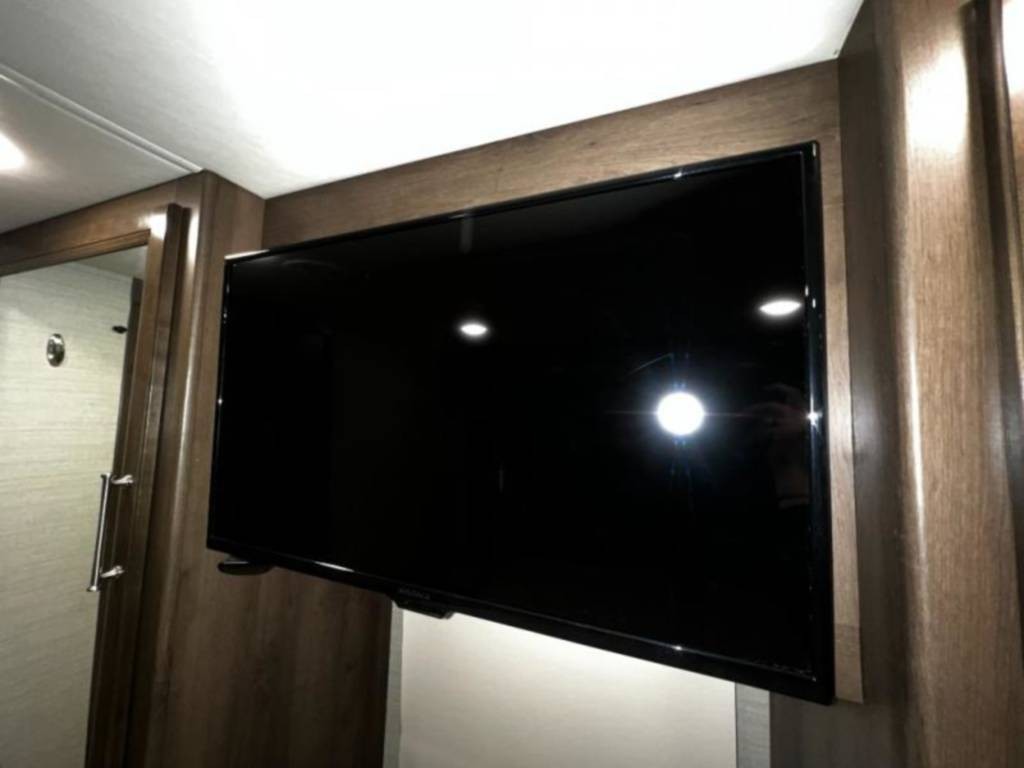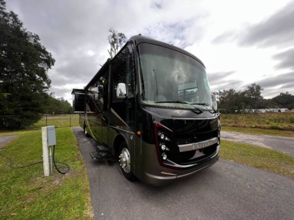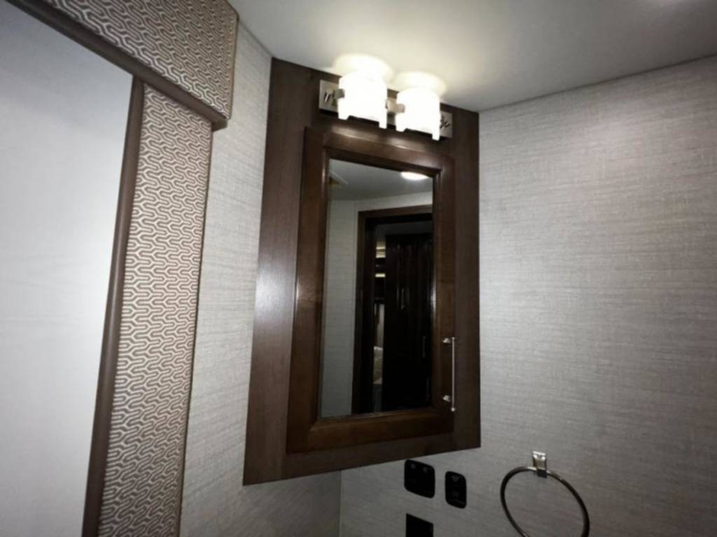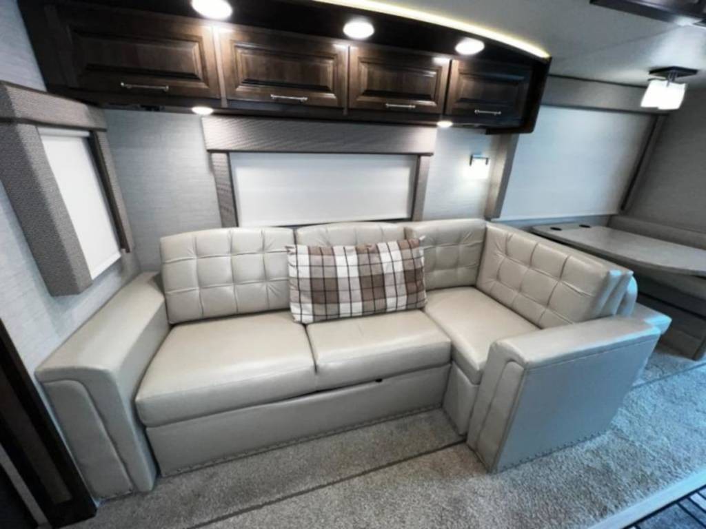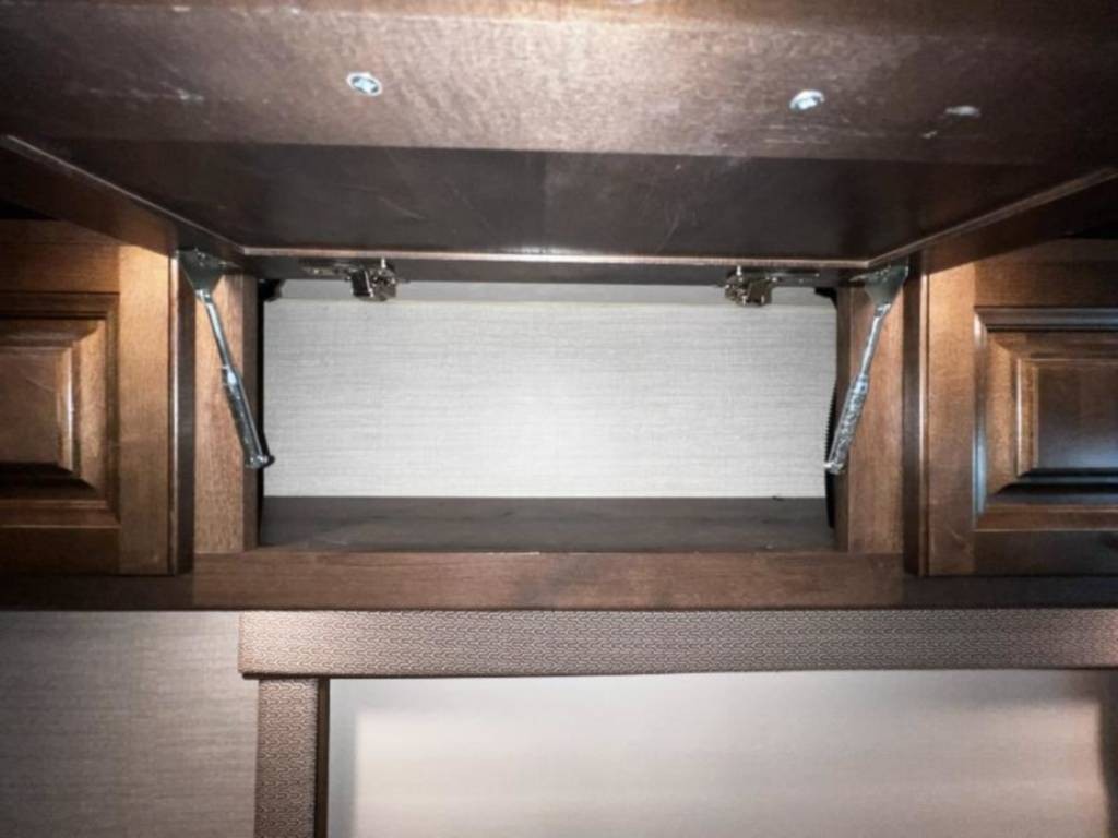 The residential feel of this coach not only promises comforts and conveniences for your entire journey, but the look and feel once you step inside tells you that luxury living is going to be your new way of travel. You are going to enjoy the spacious interior thanks to two nice size slides. Once parked, and the slides are opened up, sink back into the extendable sofa and enjoy a cozy fire in the fireplace as you watch your favorite program on the 39″ LED TV provided. All of the residential appliances will make it easy to cook gourmet meals just like home. And, at bedtime, a king bed is waiting to whisk you off to dreamland! The rear bath offers privacy from the main living area up front, and there is also a half bath easily accessible during the day. Outside, you will find tons of storage space with a lockable pass-through compartment that makes packing and storing your outdoor gear easy, and the 17′ electric awning with outside entertainment center provides a place to hang out both day and night protected from the elements while enjoying a bit of fresh air. You also have the option of adding a drop-down overhead bunk for added guests that wish to spend the night, plus so much more.
