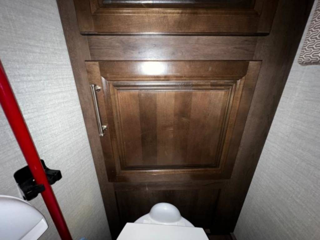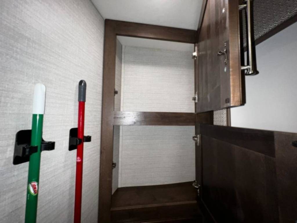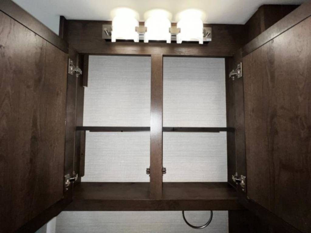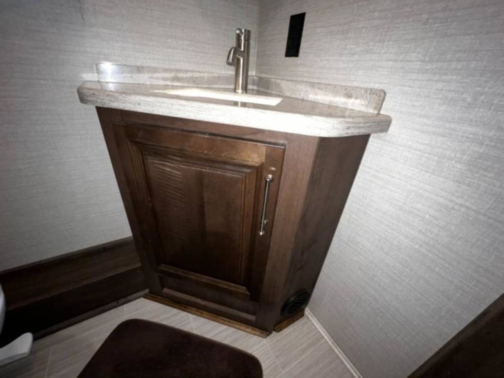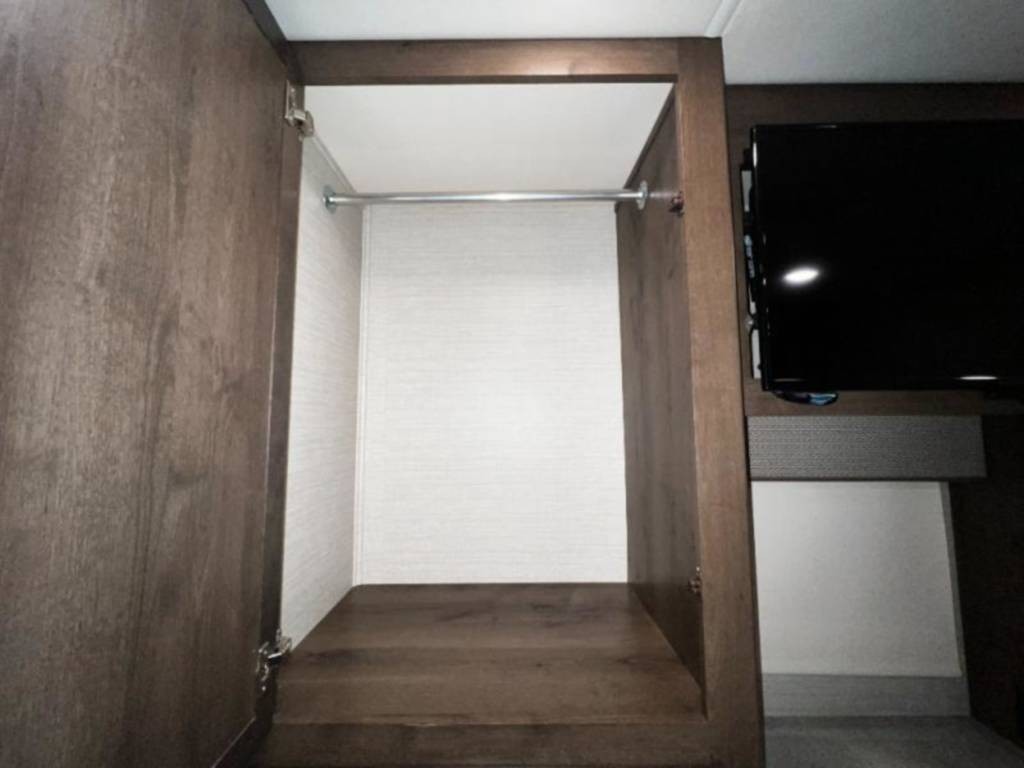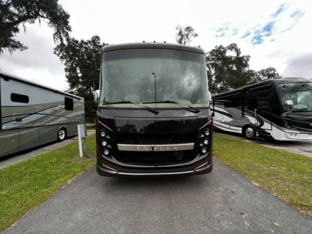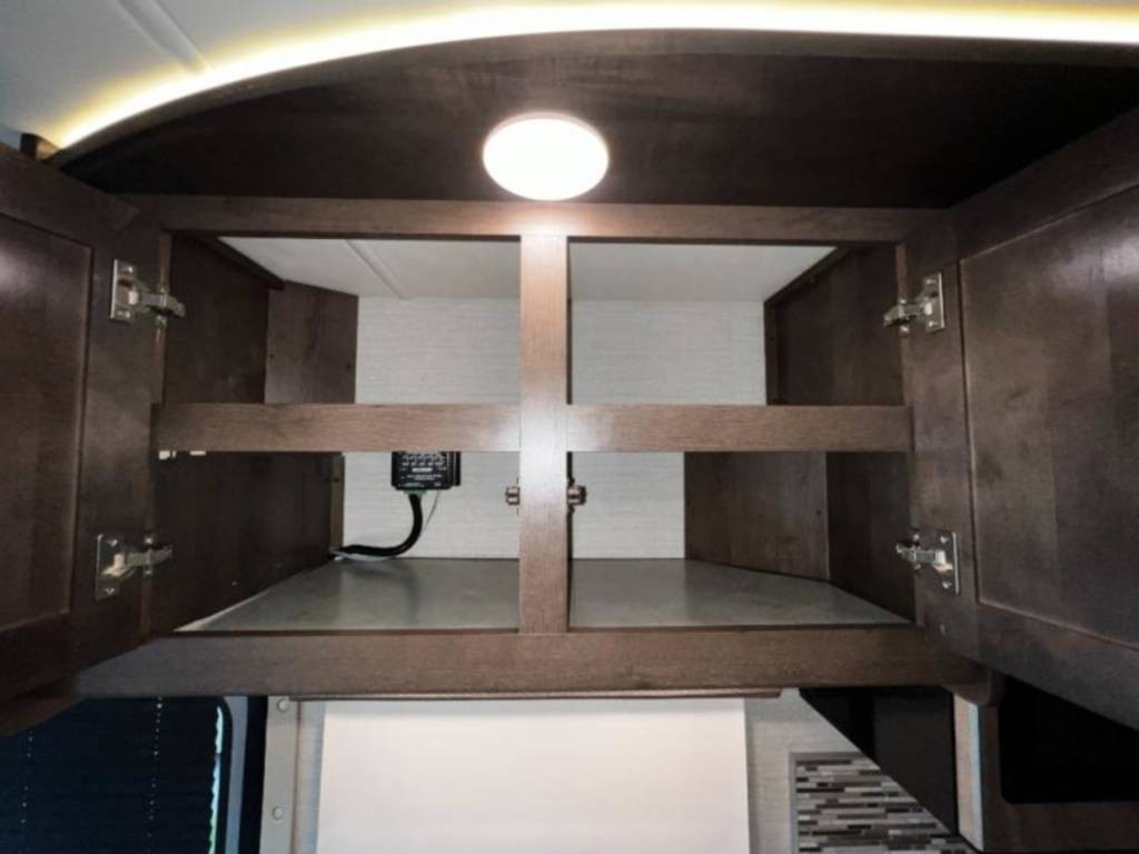 The residential feel of this coach not only promises comforts and conveniences for your entire journey, but the look and feel once you step inside tells you that luxury living is going to be your new way of travel. You are going to enjoy the spacious interior thanks to two nice size slides. Once parked, and the slides are opened up, sink back into the extendable sofa and enjoy a cozy fire in the fireplace as you watch your favorite program on the 39″ LED TV provided. All of the residential appliances will make it easy to cook gourmet meals just like home. And, at bedtime, a king bed is waiting to whisk you off to dreamland! The rear bath offers privacy from the main living area up front, and there is also a half bath easily accessible during the day. Outside, you will find tons of storage space with a lockable pass-through compartment that makes packing and storing your outdoor gear easy, and the 17′ electric awning with outside entertainment center provides a place to hang out both day and night protected from the elements while enjoying a bit of fresh air. You also have the option of adding a drop-down overhead bunk for added guests that wish to spend the night, plus so much more.