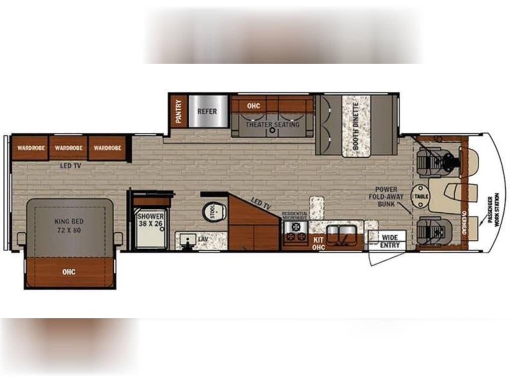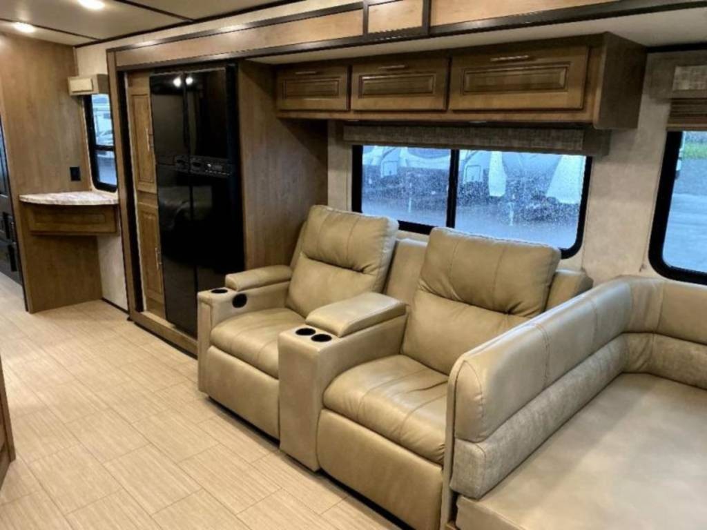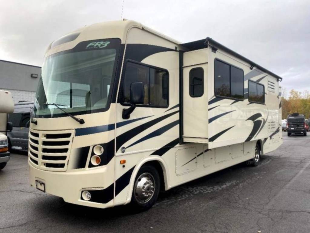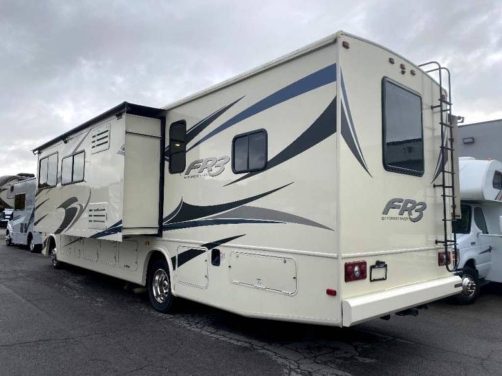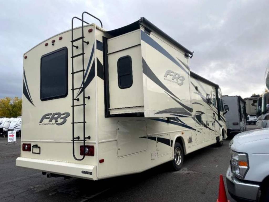 2019 Forest River FR3 33DS, Exterior Aluminum Body Material Fiberglass Sidewall Construction Power Retractable Slideout Expandable Bunk Material Hard Shell Power Retractable Awning Leveling Jack Type Front Power / Rear Power Power Retractable Entry Steps Sky Light Roof Vents Exterior Ladder Exterior Window Shade / Cover Exterior Shower Pass-Thru Storage Slideout Awning Interior Kitchen / Living Area Flooring Type Vinyl Kitchen Table ConfigurationBench Seats Overhead Fan Layout Oven / Stove Microwave Oven Refrigerator Size Full-Size Refrigerator Power Mode Electric / Propane Sink Cover / Cutting Boards Material Leather Master Bedroom Flooring Type Vinyl Master Bedroom Door Style Full Sliding Door Full Size Master Bedroom Closet Master Bedroom Mirror Doors Master Bedroom Shades / Curtains Bed Spreads Bathroom Flooring Type Vinyl Toilet Type Plastic Door Type Plastic / Glass Bathroom Sink Bathroom Medicine Cabinet Bathroom Mirror Bathroom Vent / Fan System Sink / Faucet Power Vent Fan.