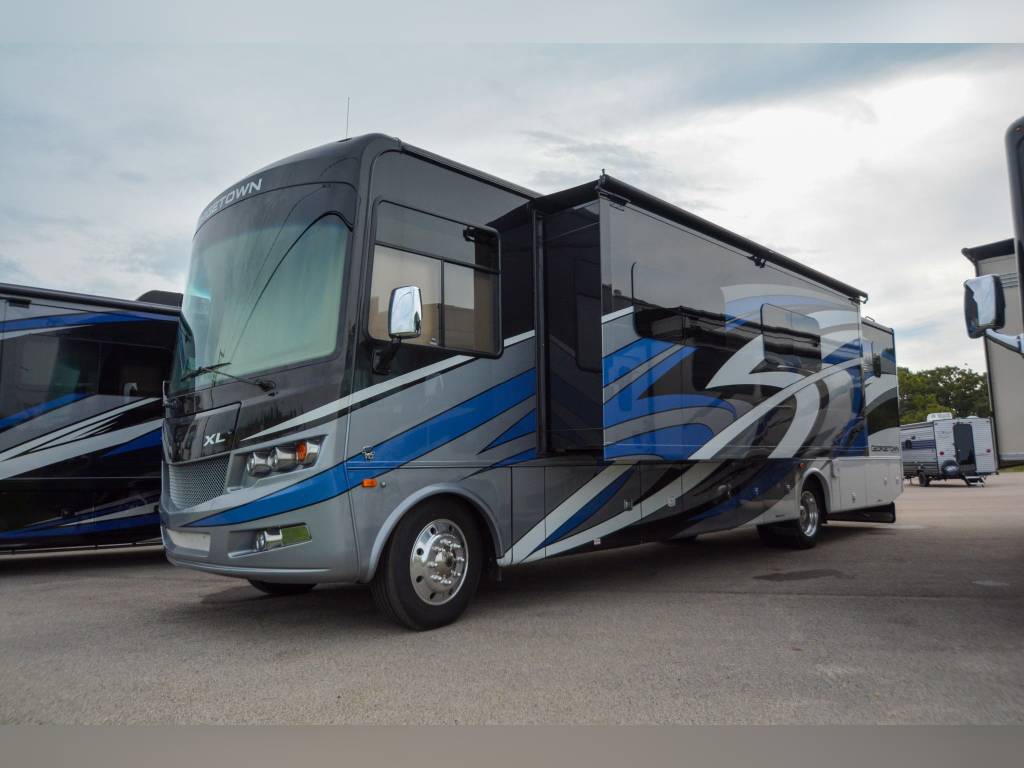 2019 Forest River Georgetown XL, 369DS, If you’re in the market for a Class A, this 2019 Forest River Georgetown XL 369DS could be what you’re looking for. This Georgetown XL Class A comfortably sleeps 5. And a master bedroom conveniently located in the Center. This Georgetown XL Class A has a lot to offer the RV adventurer, like a Front kitchen with Bench Seats, Center living area and Rear / Center bathroom. It doesn’t stop there, this Georgetown XL 369DS Class A intensifies your RV camping experience, and features a stove with 3 oven burners, Full-Size refrigerator, 2 TVs, Standard Fireplace and more. This Georgetown XL 369DS, has a GVWR of 24000 lbs . Other noteworthy capacity features include: 2 Black Water Holding Tank(s), 1 Fresh Water Holding Tank(s), and 2 Gray Water Holding Tanks. This Georgetown XL has 1 door(s), 1 awning(s), 2 slideout(s).