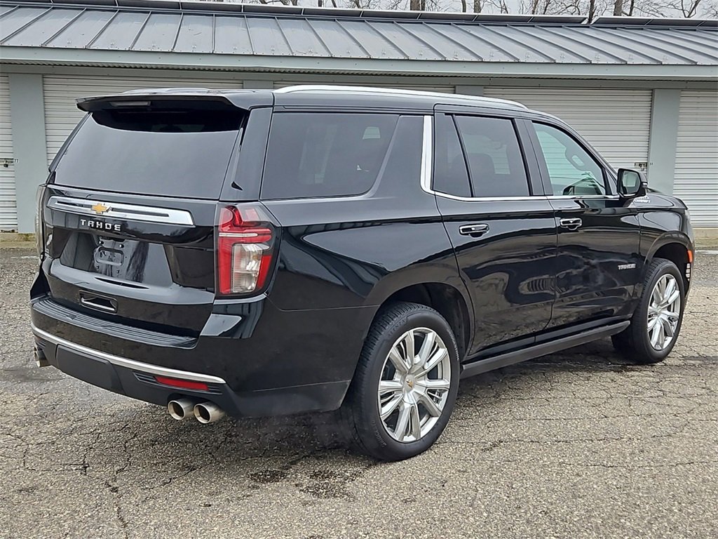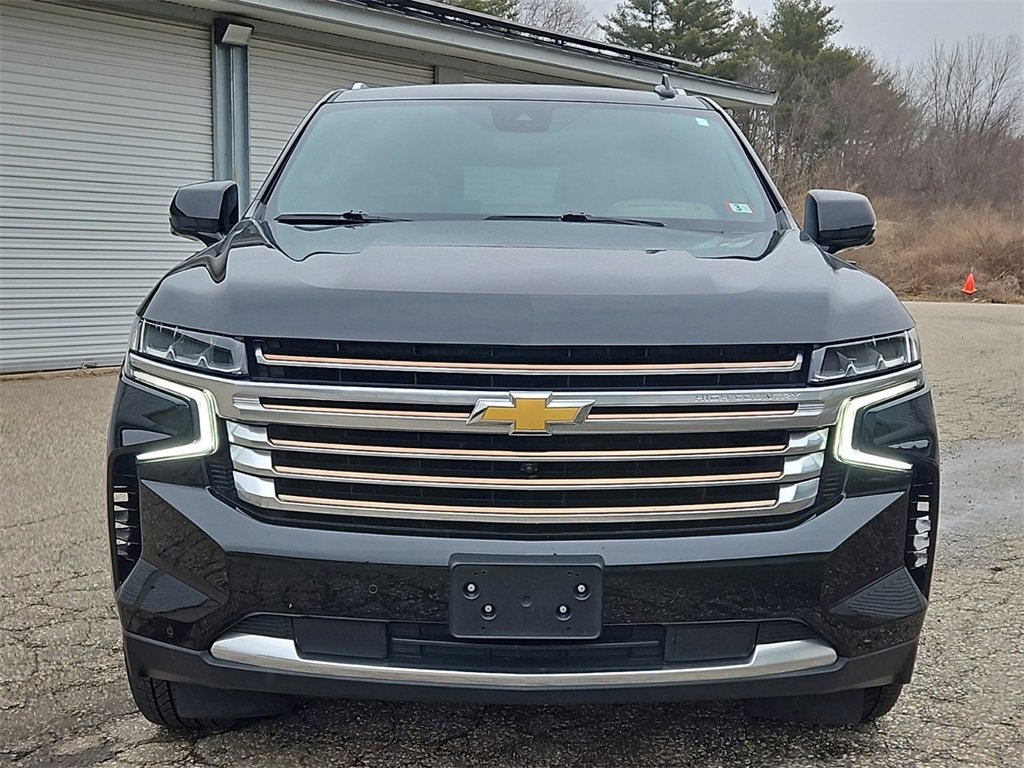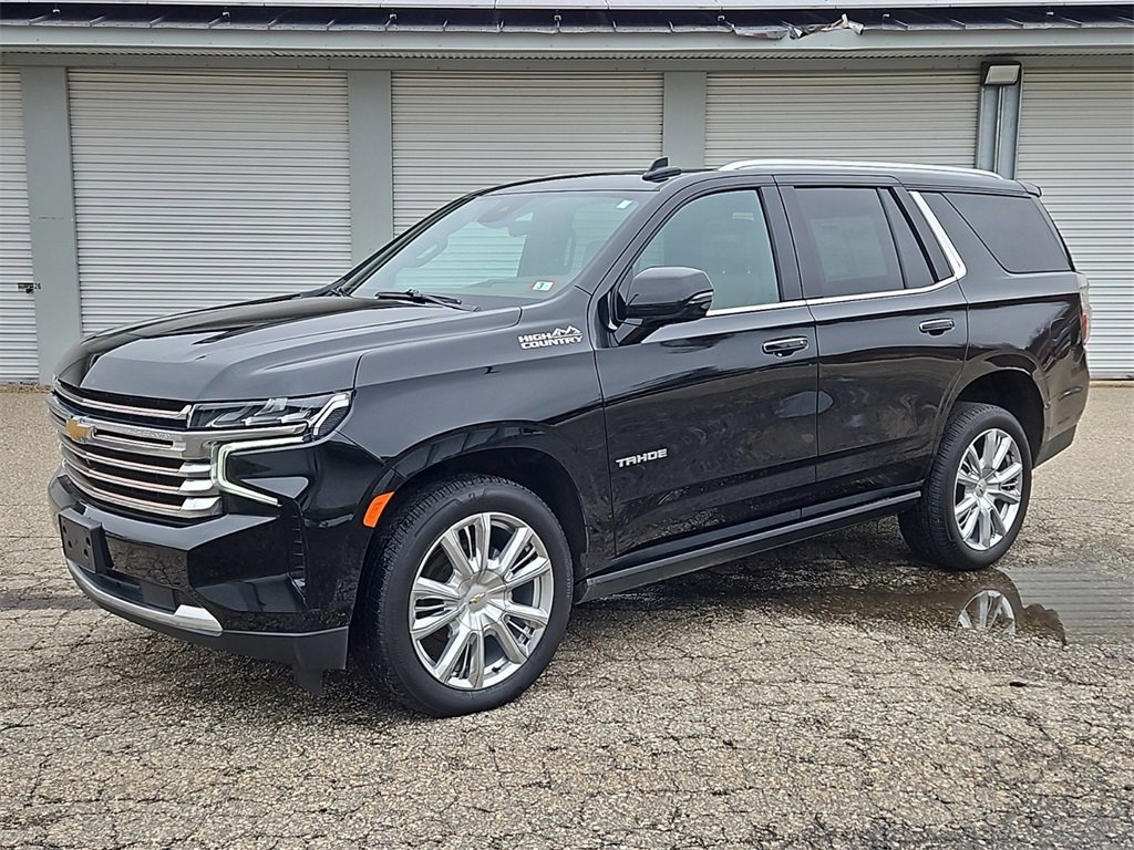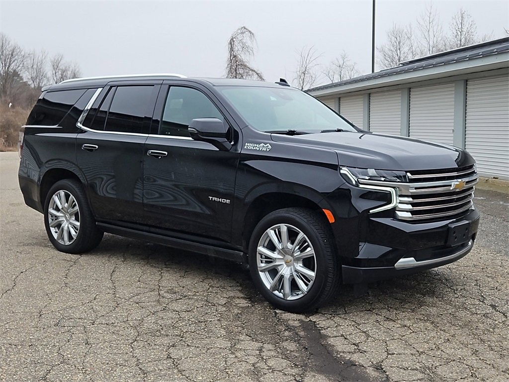 Black 2023 Chevrolet Tahoe High Country 4WD 10-Speed Automatic with Overdrive EcoTec3 6.2L V8 Tahoe High Country, EcoTec3 6.2L V8, 10-Speed Automatic with Overdrive, 4WD, Jet Black/Mocha Leather, 15 Diagonal Multi-Color Head-Up Display, 1st & 2nd Row Color-Keyed Carpeted Floor Mats, 2-Speed Active Electronic AutoTrac Transfer Case, 3rd Row 60/40 Power-Folding Split-Bench Seat, Bose 10-Speaker Centerpoint Surround Audio Sys Ft, Bright Front & Rear Door Sill Plates, Chrome Door Handles w/Body-Color Strip, Color-Keyed Carpeting Floor Covering, Driver & Front Outboard Passenger Airbags, Dual Exhaust System, Enhanced Automatic Emergency Braking, Enhanced Driver Information Center, Floor Console, Hands-Free Rear Power Programmable Liftgate, HD Surround Vision, Heated 2nd Row Outboard Seats, Heated Steering Wheel, Hill Descent Control, Infotainment Display, Inside Rearview Auto-Dimming Rear Camera Mirror, Lane Change Alert w/Side Blind Zone Alert, LED Daytime Running Lamps, License Plate Front Mounting Package, Memory Settings, Outside Heated Power-Adjustable Mirrors, Power Release 2nd Row Bucket Seats, Power Tilt & Telescopic Steering Column, Preferred Equipment Group 3LZ, Rear Camera Mirror Washer, Rear Cross Traffic Alert, Rear Pedestrian Alert, Remote Start, Safety Alert Seat, SiriusXM Radio w/360L, Universal Home Remote, Wireless Charging, Wrapped Steering Wheel.