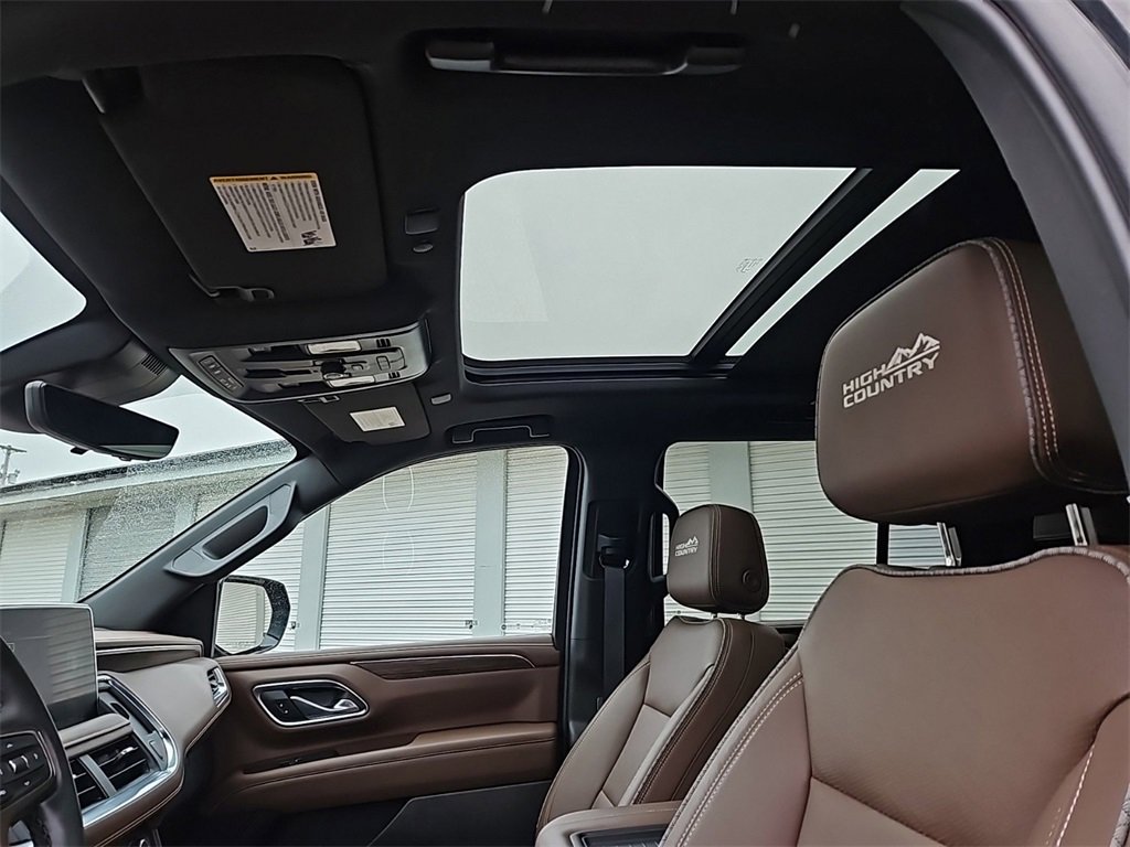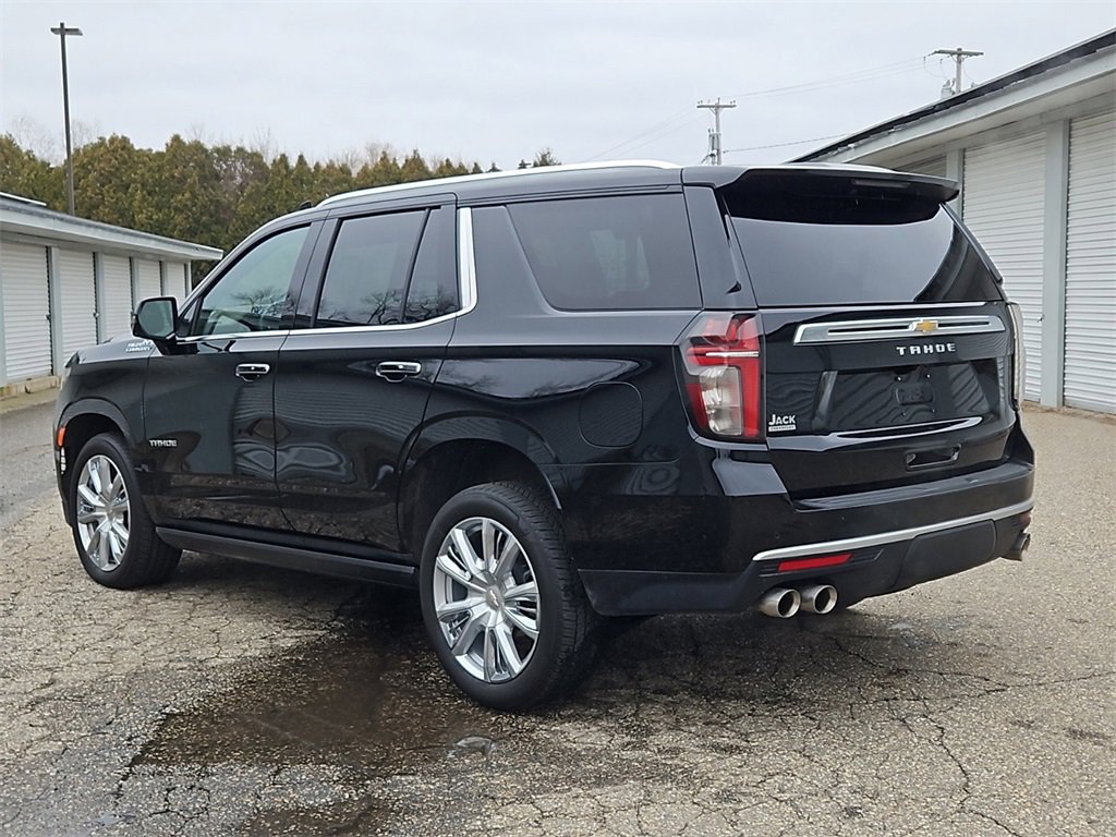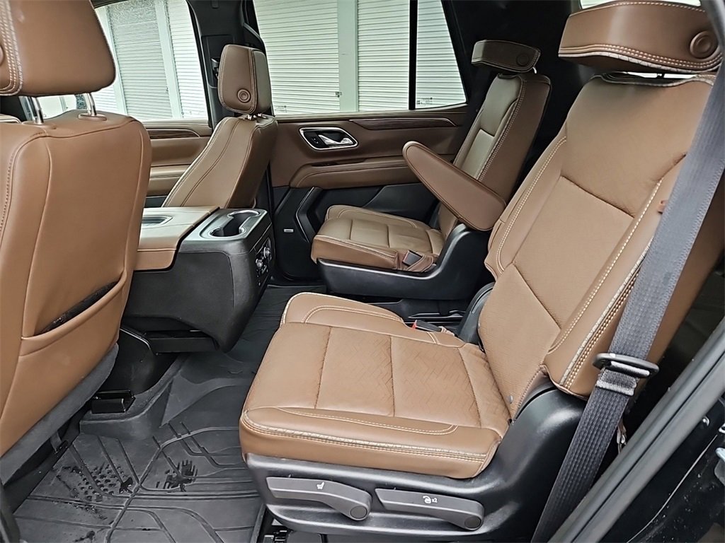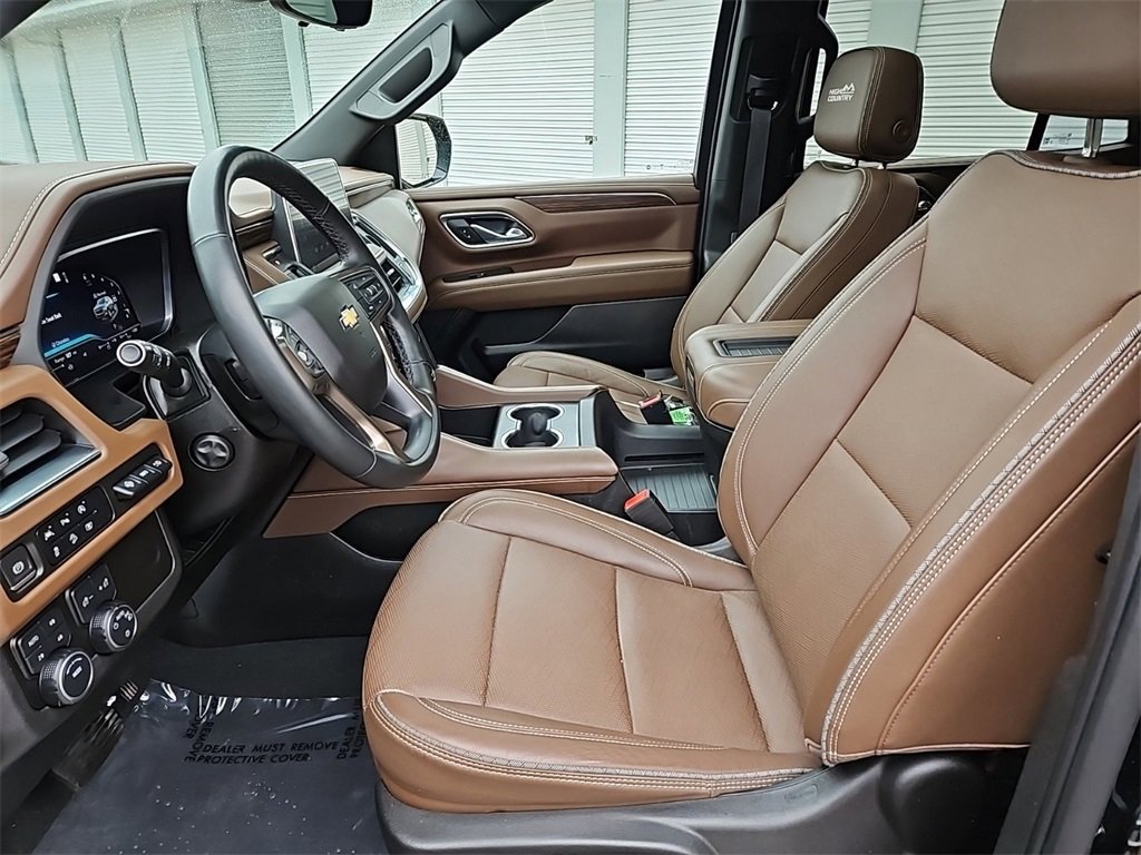 Black 2023 Chevrolet Tahoe High Country 4WD 10-Speed Automatic with Overdrive EcoTec3 6.2L V8 Tahoe High Country, EcoTec3 6.2L V8, 10-Speed Automatic with Overdrive, 4WD, Jet Black/Mocha Leather, 15 Diagonal Multi-Color Head-Up Display, 1st & 2nd Row Color-Keyed Carpeted Floor Mats, 2-Speed Active Electronic AutoTrac Transfer Case, 3rd Row 60/40 Power-Folding Split-Bench Seat, Bose 10-Speaker Centerpoint Surround Audio Sys Ft, Bright Front & Rear Door Sill Plates, Chrome Door Handles w/Body-Color Strip, Color-Keyed Carpeting Floor Covering, Driver & Front Outboard Passenger Airbags, Dual Exhaust System, Enhanced Automatic Emergency Braking, Enhanced Driver Information Center, Floor Console, Hands-Free Rear Power Programmable Liftgate, HD Surround Vision, Heated 2nd Row Outboard Seats, Heated Steering Wheel, Hill Descent Control, Infotainment Display, Inside Rearview Auto-Dimming Rear Camera Mirror, Lane Change Alert w/Side Blind Zone Alert, LED Daytime Running Lamps, License Plate Front Mounting Package, Memory Settings, Outside Heated Power-Adjustable Mirrors, Power Release 2nd Row Bucket Seats, Power Tilt & Telescopic Steering Column, Preferred Equipment Group 3LZ, Rear Camera Mirror Washer, Rear Cross Traffic Alert, Rear Pedestrian Alert, Remote Start, Safety Alert Seat, SiriusXM Radio w/360L, Universal Home Remote, Wireless Charging, Wrapped Steering Wheel.