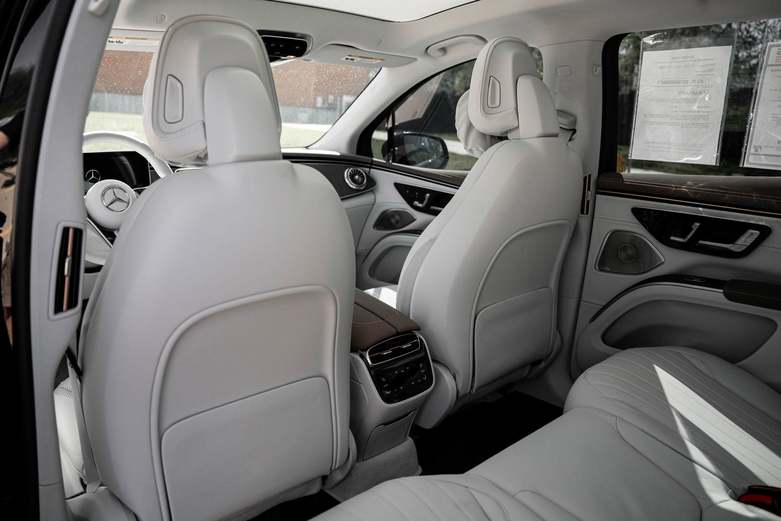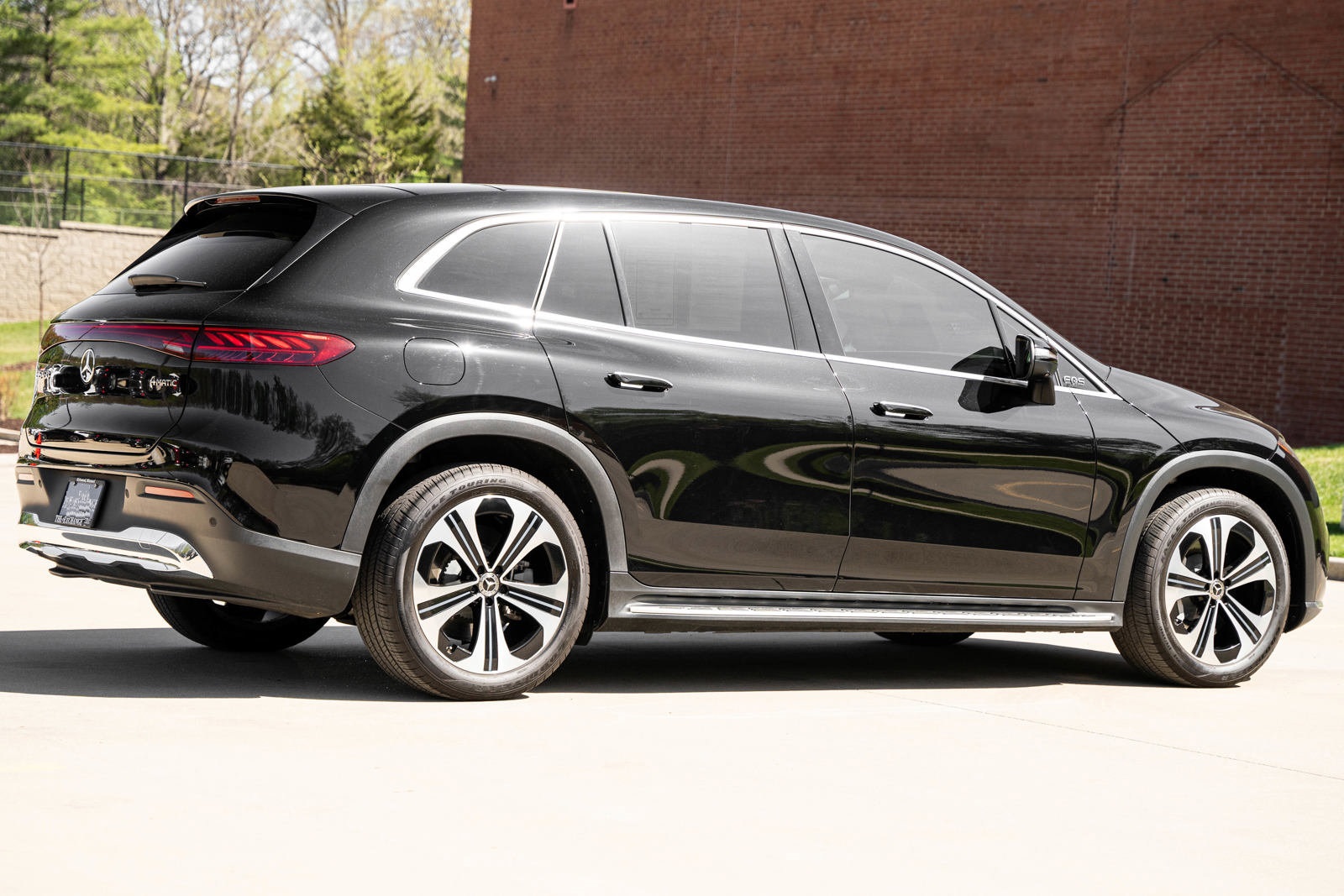 Black 2023 Mercedes-Benz EQS 450 4MATICᆴ 4MATICᆴ 1-Speed Automatic Electric Motor MSRP $115985, Aerodynamic Illuminated Running Boards, Aerodynamic Illuminated Running Boards, 15 Speakers, 4-Wheel Disc Brakes, 4-Zone Climate Control, ABS brakes, Adaptive suspension, Air Conditioning, AIR-BALANCE Package, Alloy wheels, Auto High-beam Headlights, Auto tilt-away steering wheel, Auto-dimming door mirrors, Auto-dimming Rear-View mirror, Auto-leveling suspension, Automatic temperature control, Bumpers: body-color, Delay-off headlights, Driver vanity mirror, Electronic Stability Control, Emergency communication system: eCall Emergency System, Exclusive Trim Package, Exterior Parking Camera Rear, Front Bucket Seats, Front Center Armrest, Front Door Mercedes Star-Pattern Logo Projectors, Front dual zone A/C, Garage door transmitter: HomeLink, Genuine wood door panel insert, Head restraints memory, Heated & Ventilated Power Front Seats, Heated door mirrors, Heated front seats, HVAC memory, Illuminated entry, Leather steering wheel, Leather Upholstery, Low tire pressure warning, MB Apps/Apple CarPlay/Android Auto, MBUX Front Interior Assist, Memory seat, Multicontour Front Seats w/Massage Feature, Navigation system: MBUX Augmented Reality for Navigation, Panic alarm, Power adjustable front head restraints, Power door mirrors, Power driver seat, Power Liftgate, Power moonroof: Panorama, Power passenger seat, Power windows, Premium audio system: MBUX, Premium Trim Package, Radio data system, Radio: Burmesterᆴ 3D Surround Sound System, Rain sensing wipers, Rapid Heating Front Seats, Rear window defroster, Rear window wiper, Remote keyless entry, Security system, Speed control, Speed-Sensitive Wipers, Split folding rear seat, Spoiler, Steering wheel memory, Steering wheel mounted audio controls, Tilt steering wheel, Traction control, Turn signal indicator mirrors, Variably intermittent wipers, Ventilated front seats, Wheels: 20″ x 8.5J 5-Spoke Aero w/Black Acc.